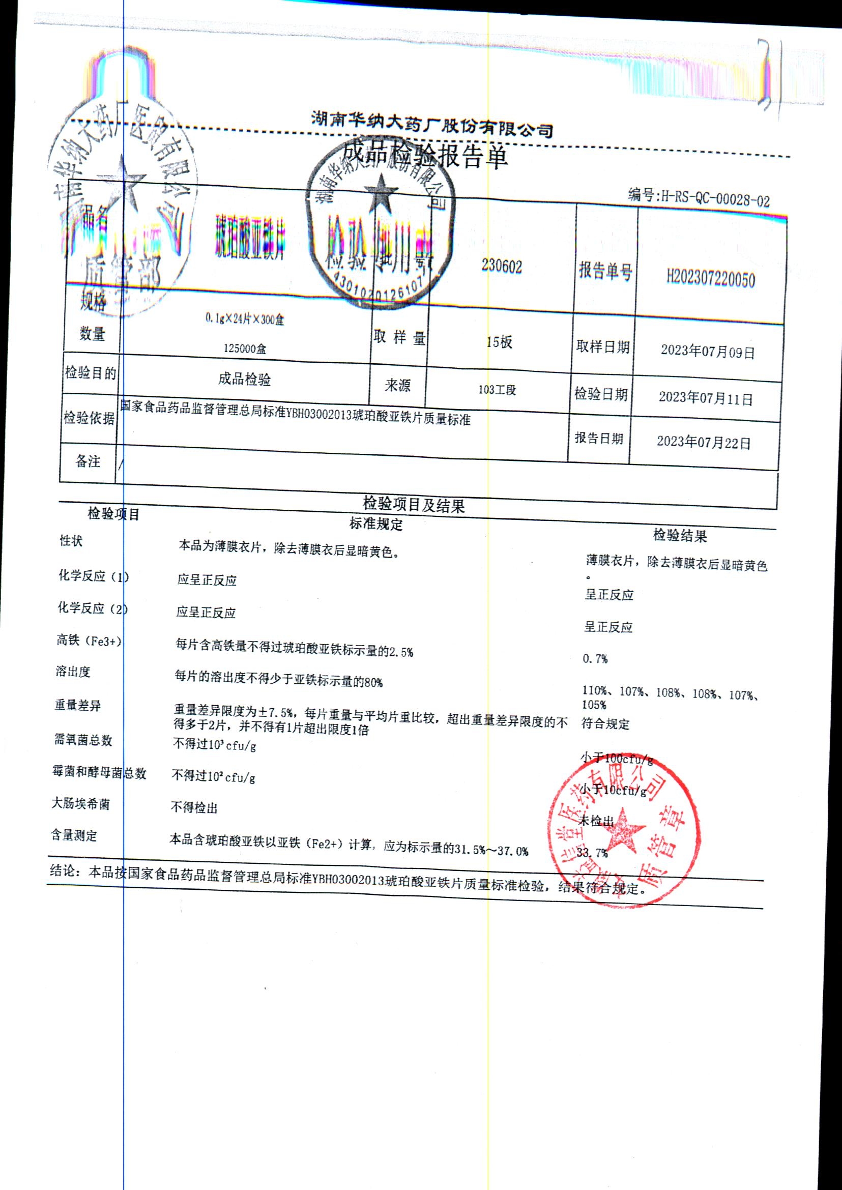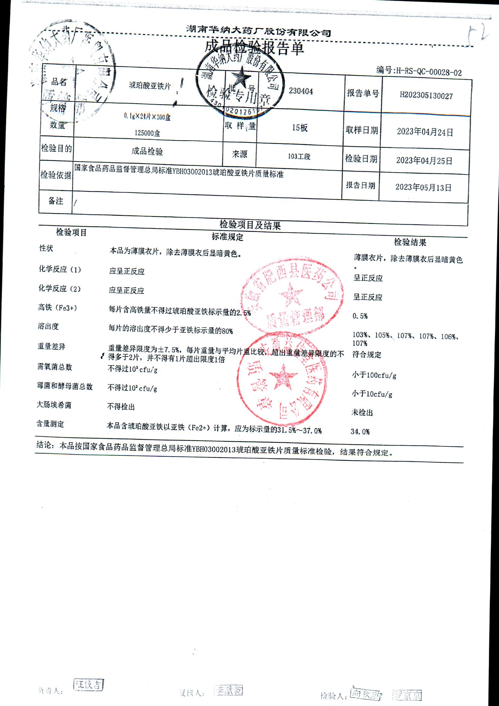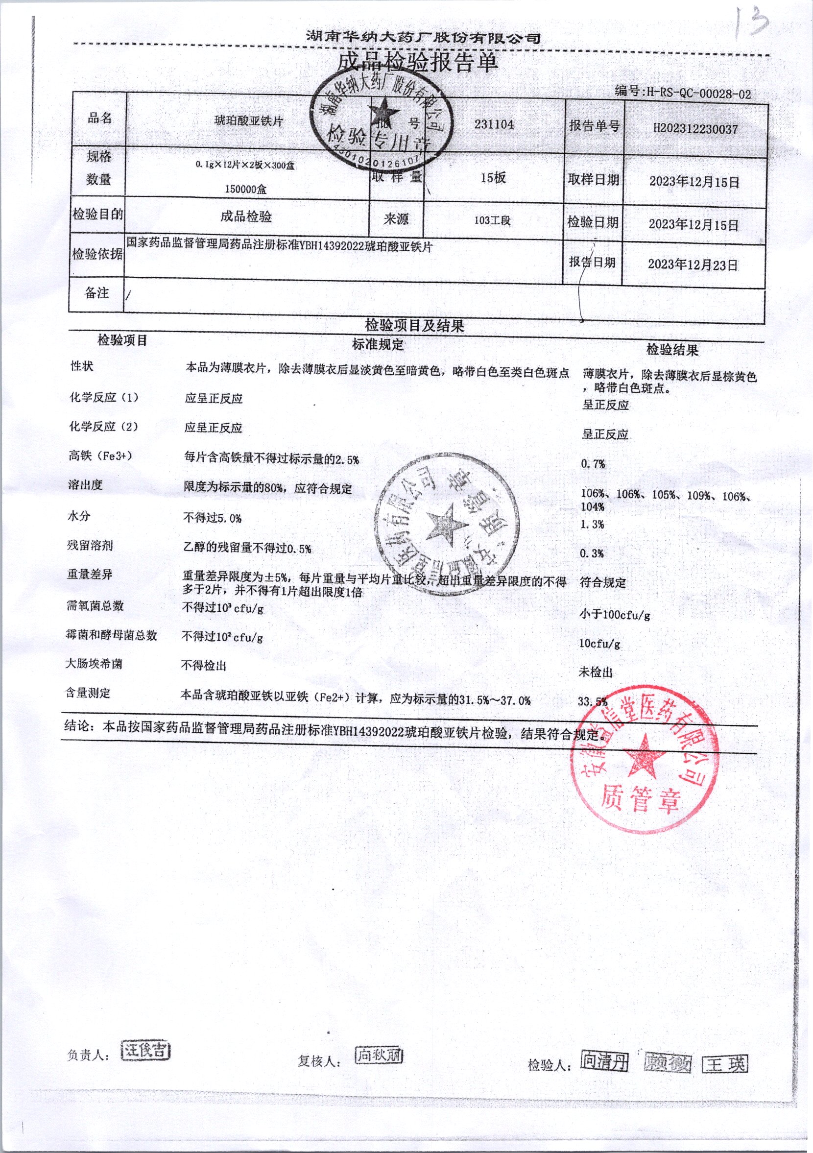 琥珀酸亚铁片 | 0.1g*24片 | 230404 | 查看详情 |
