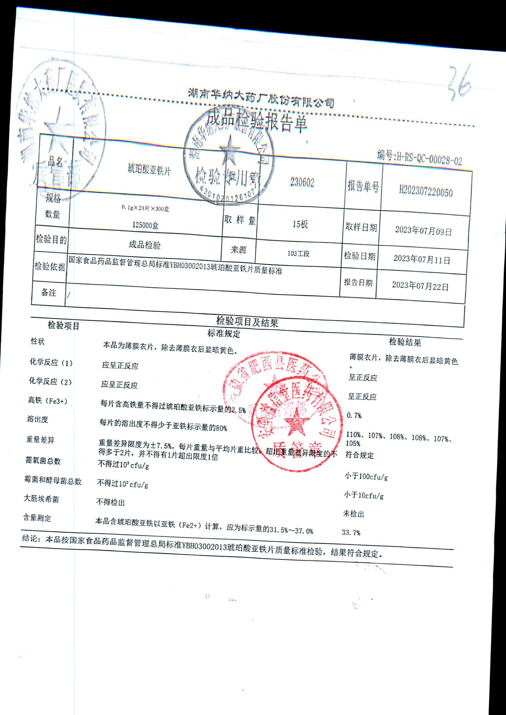 琥珀酸亚铁片 | 0.1g*24片 | 230602 | 查看详情 |