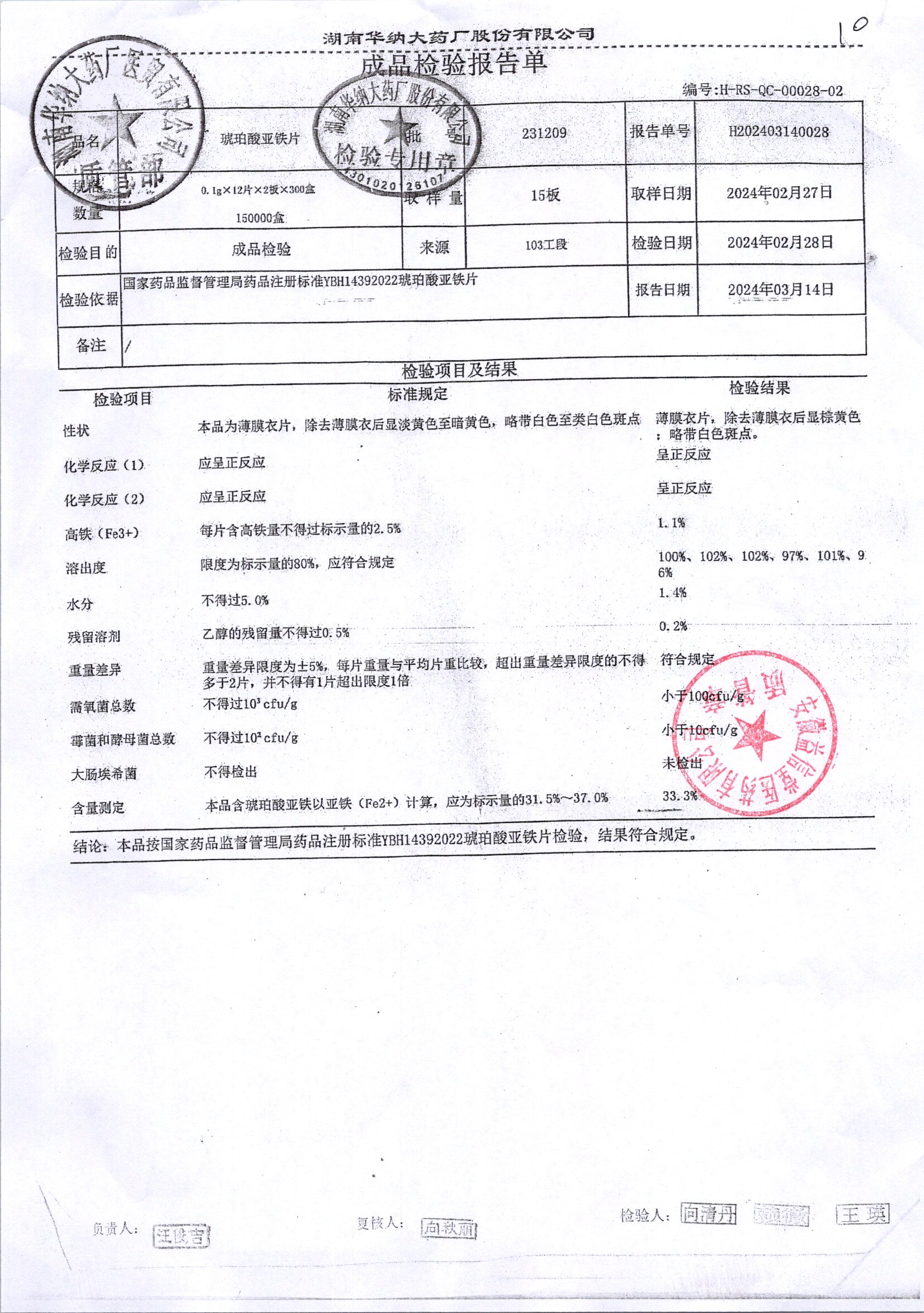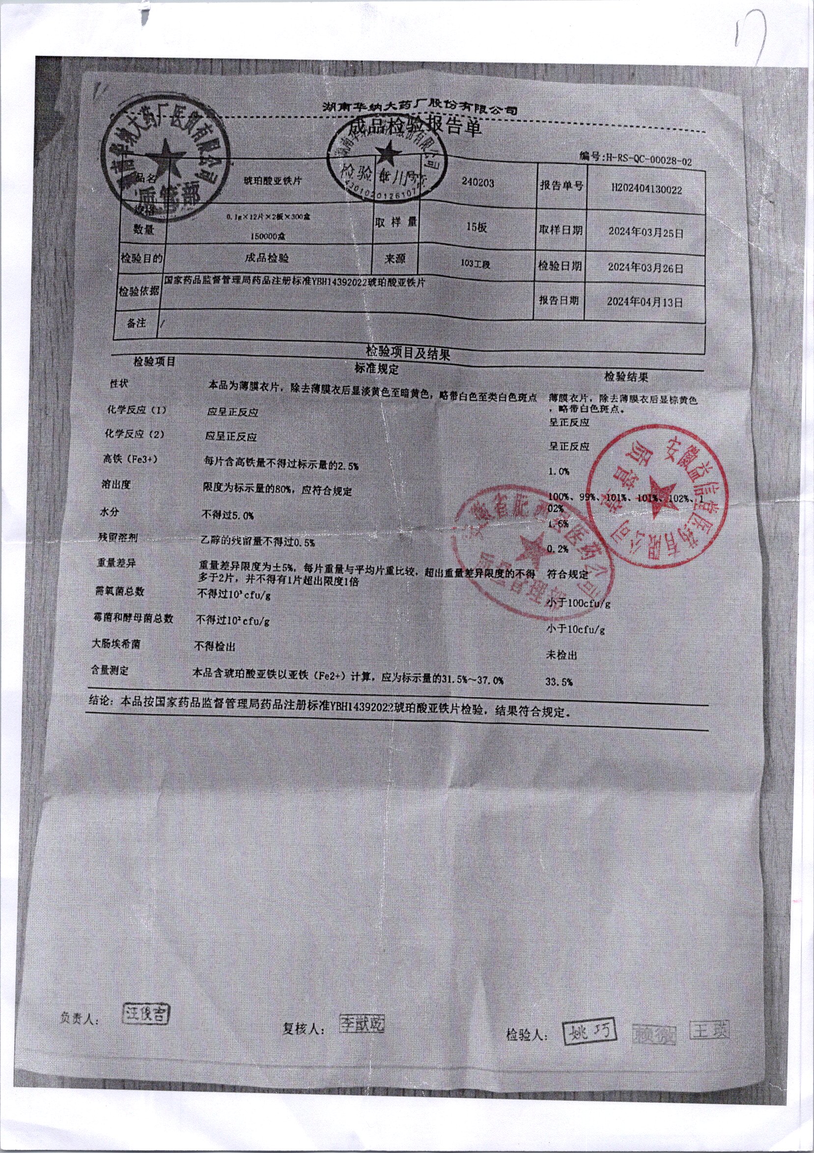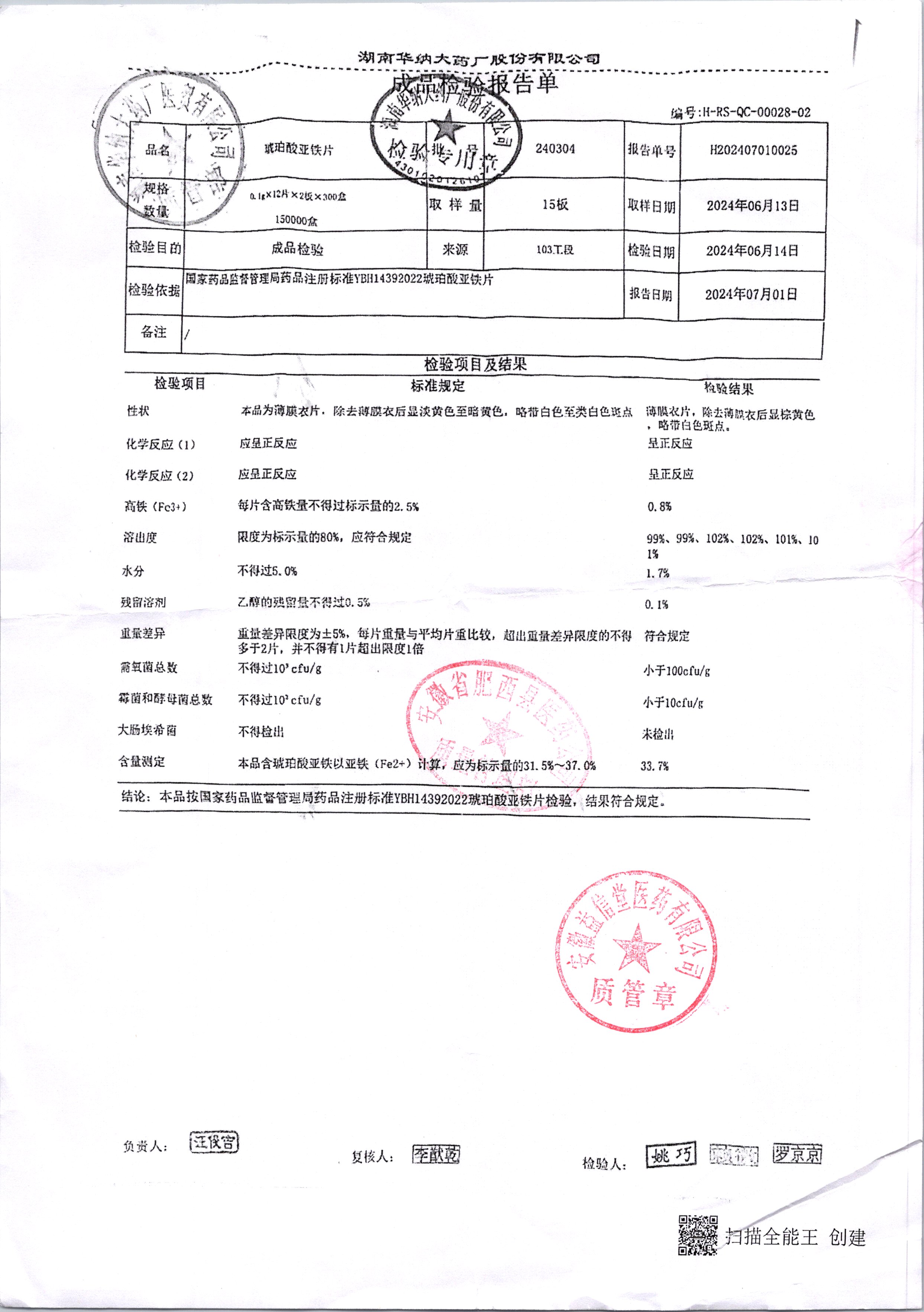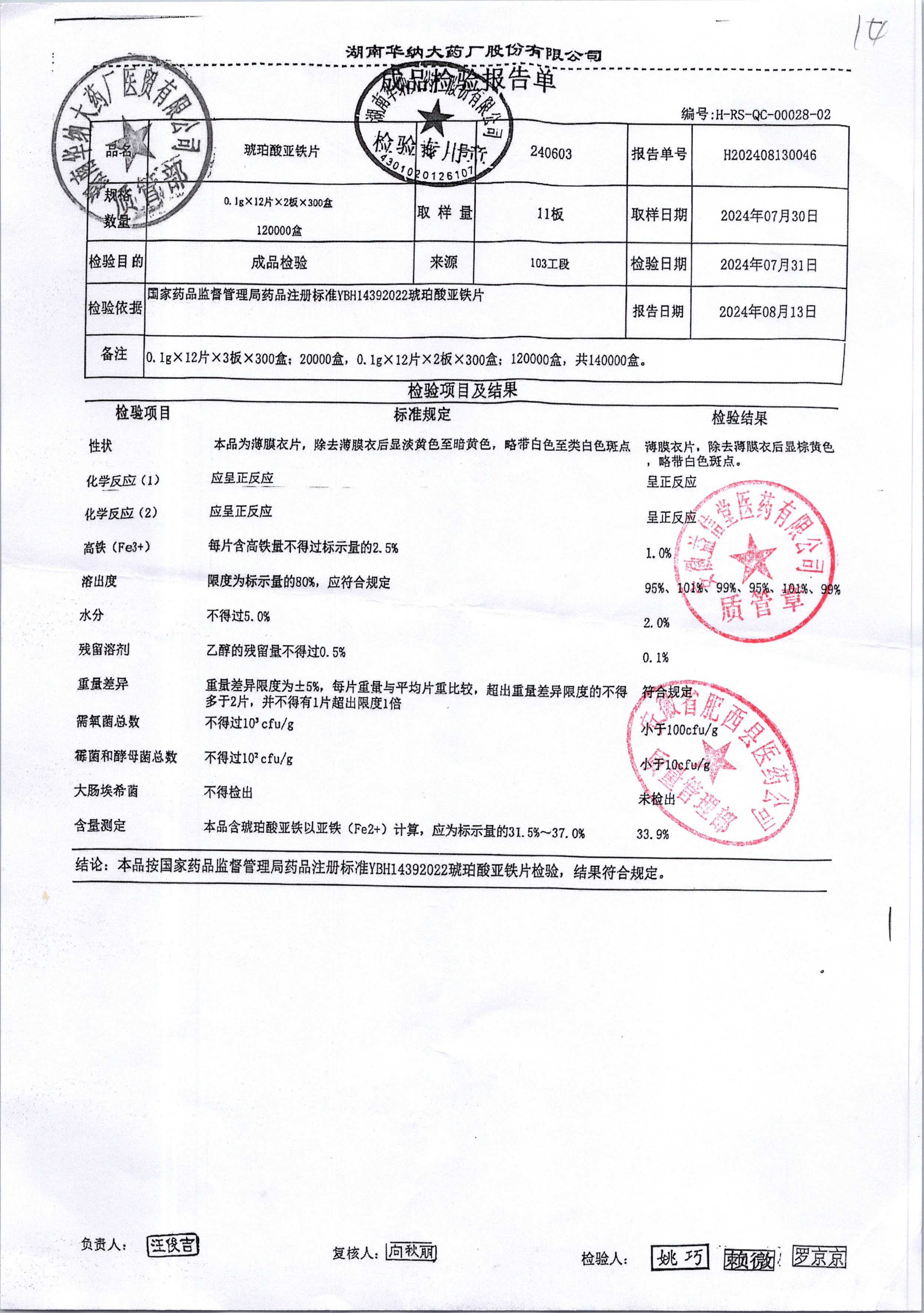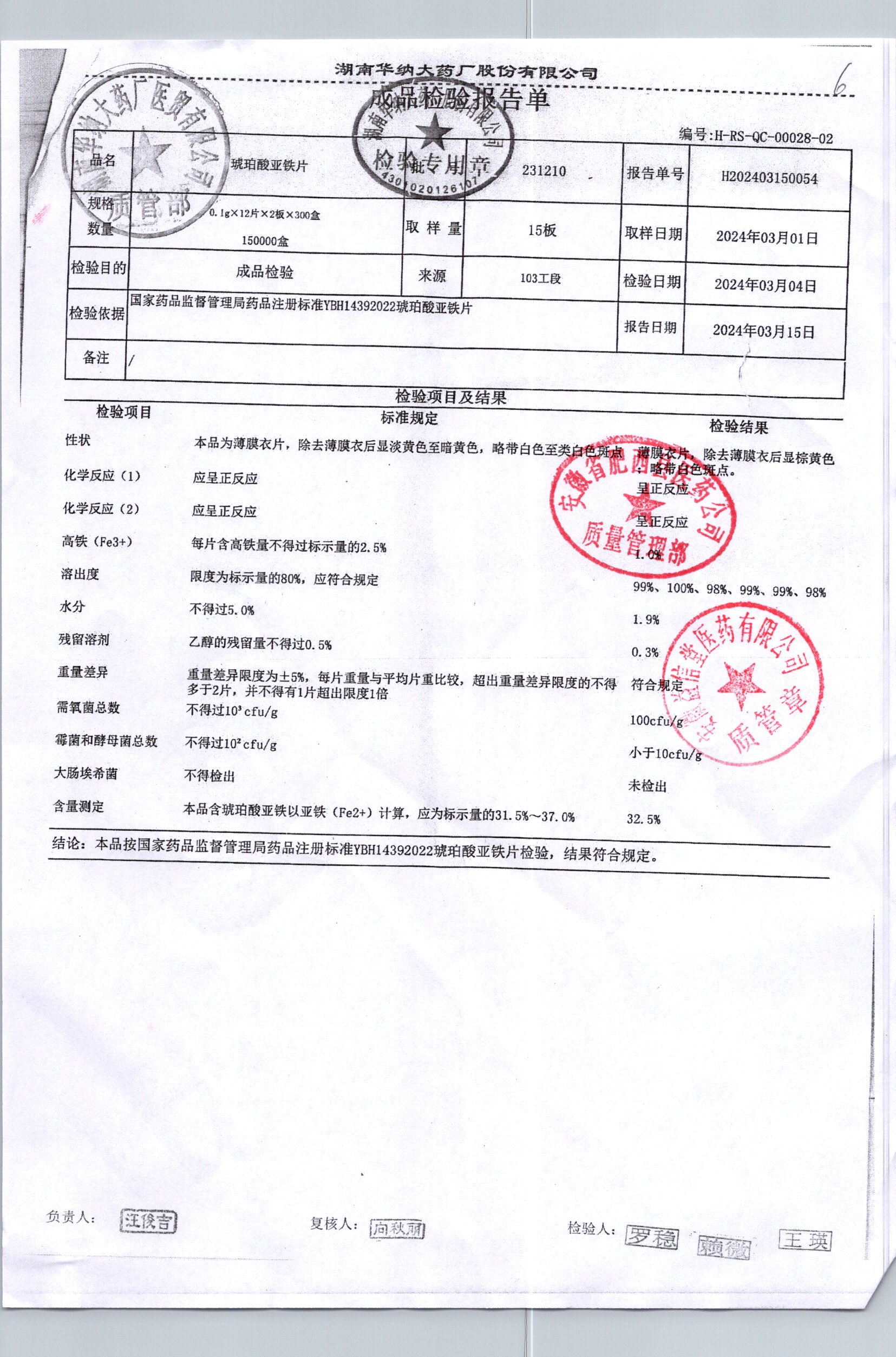 琥珀酸亚铁片 | 0.1g*24片 | 240603 | 查看详情 |