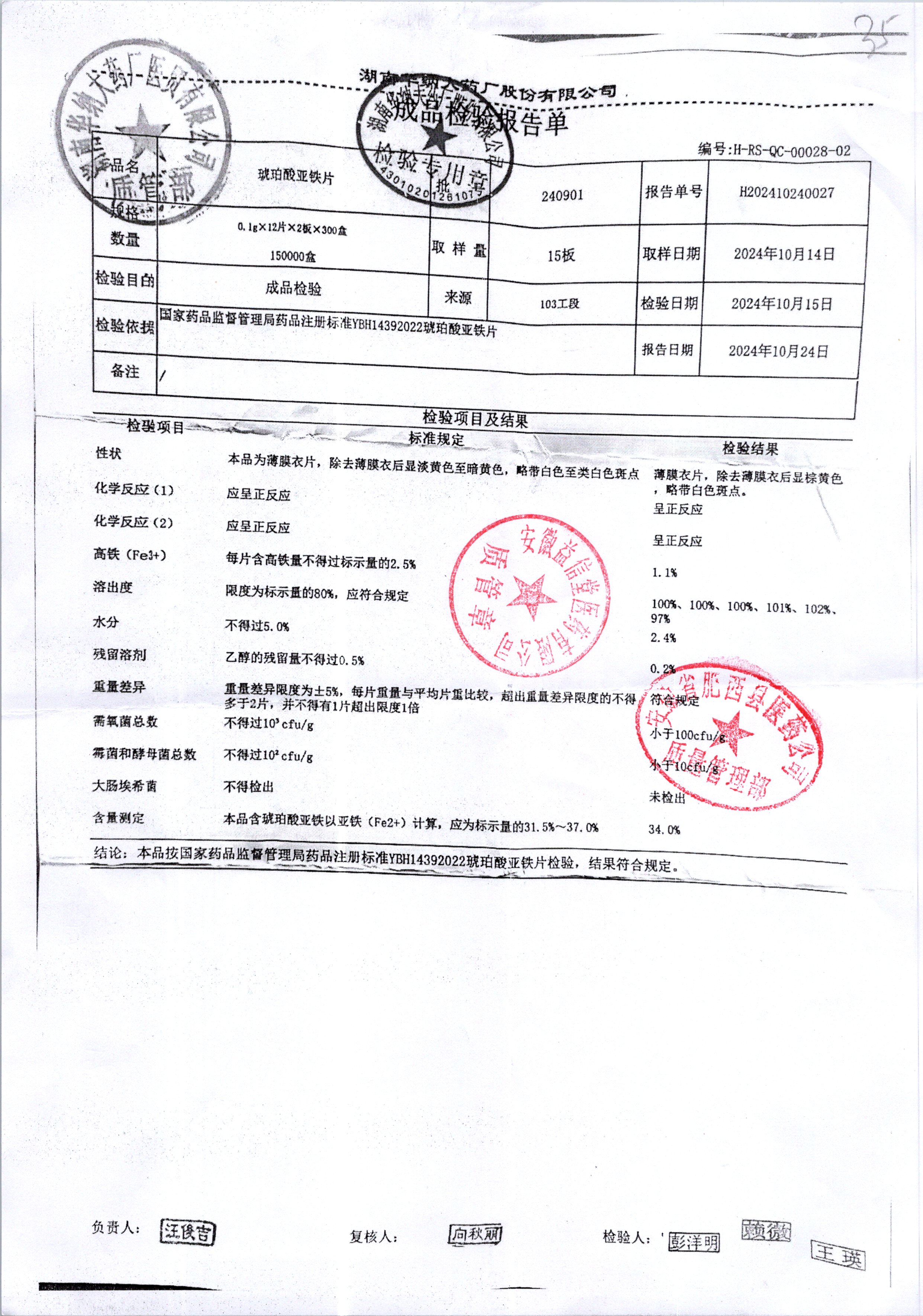 琥珀酸亚铁片 | 0.1g*24片 | 240901 | 查看详情 |
