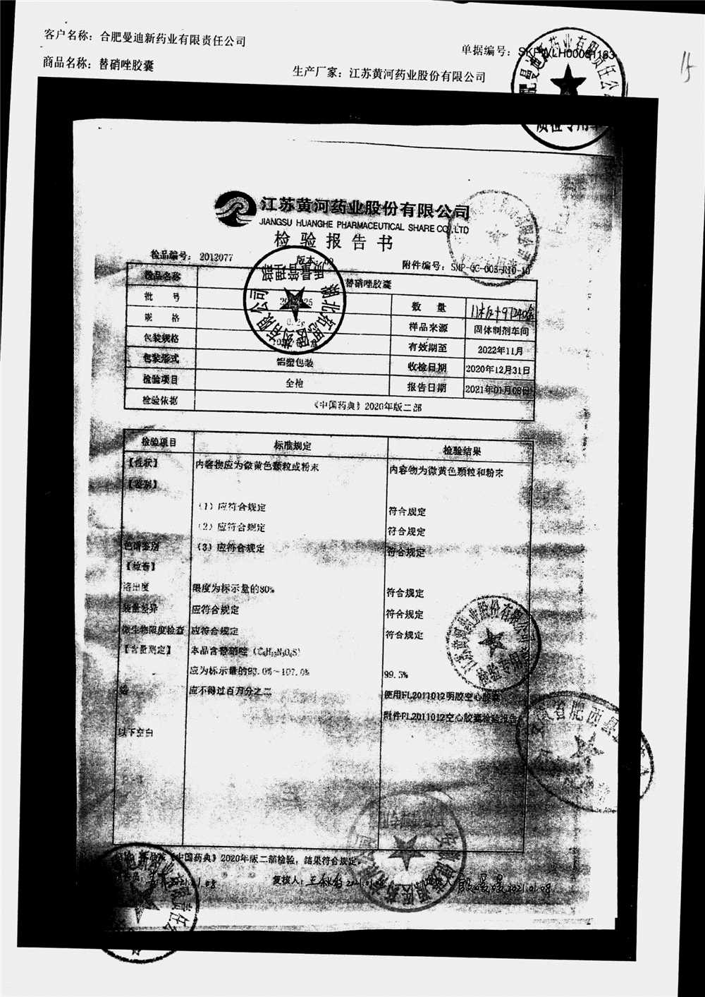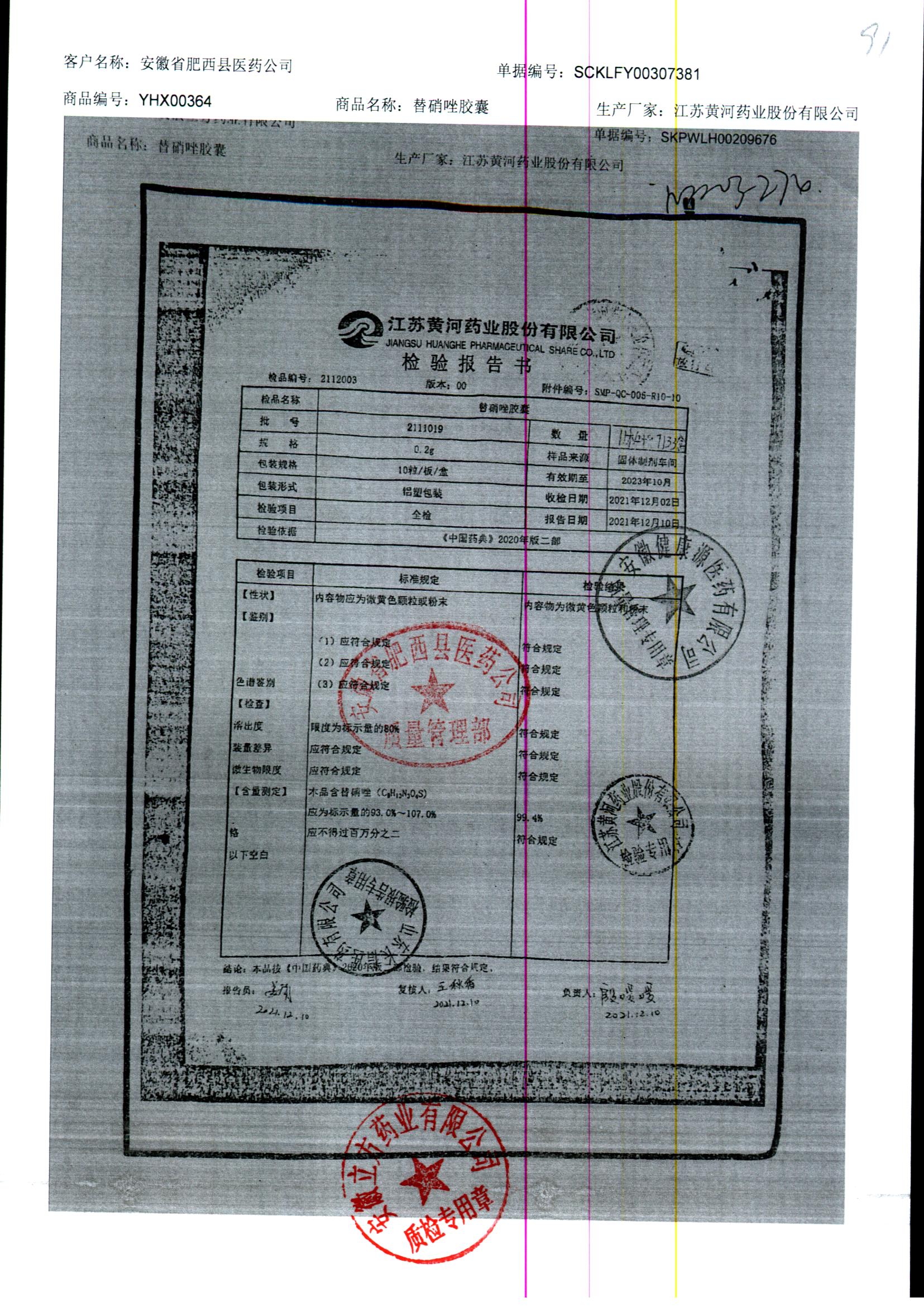 替硝唑胶囊 | 0.2g*10粒 | 1903022(2/2) | 查看详情 |