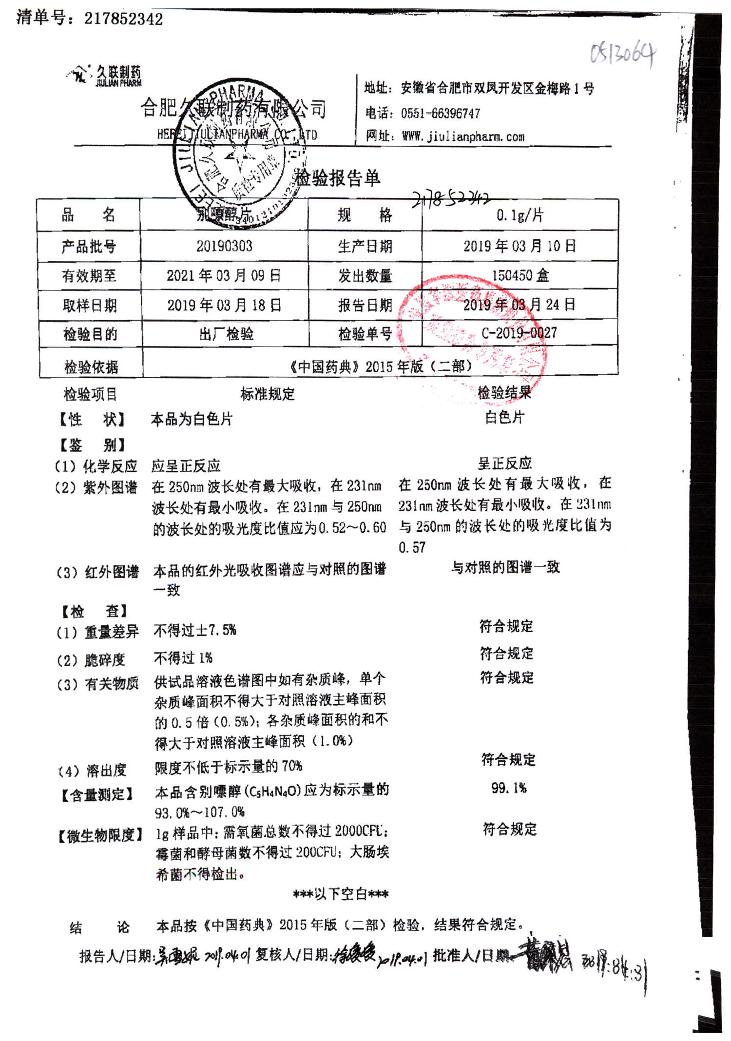 别嘌醇片 | 0.1g | 20190303 | 查看详情 |