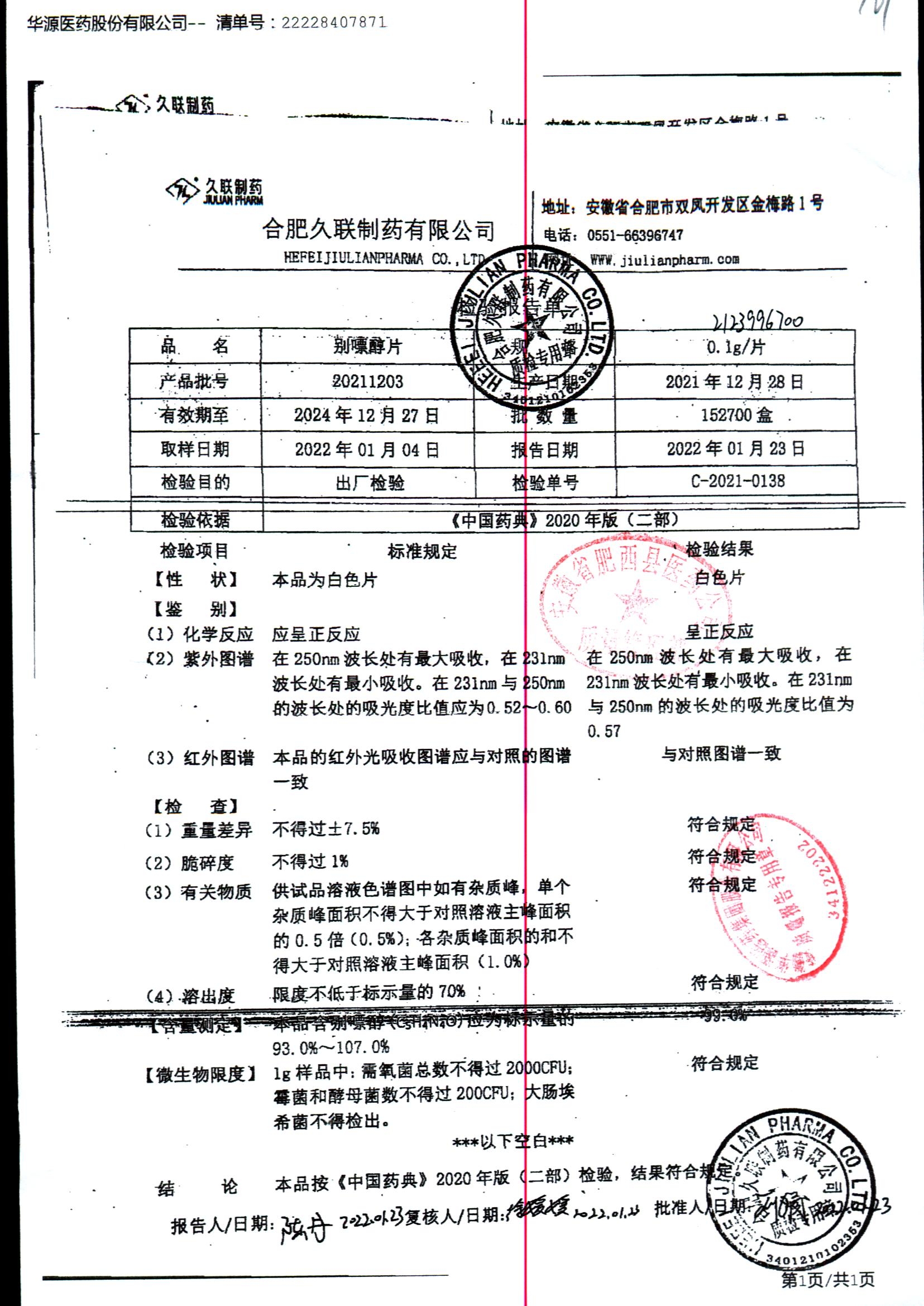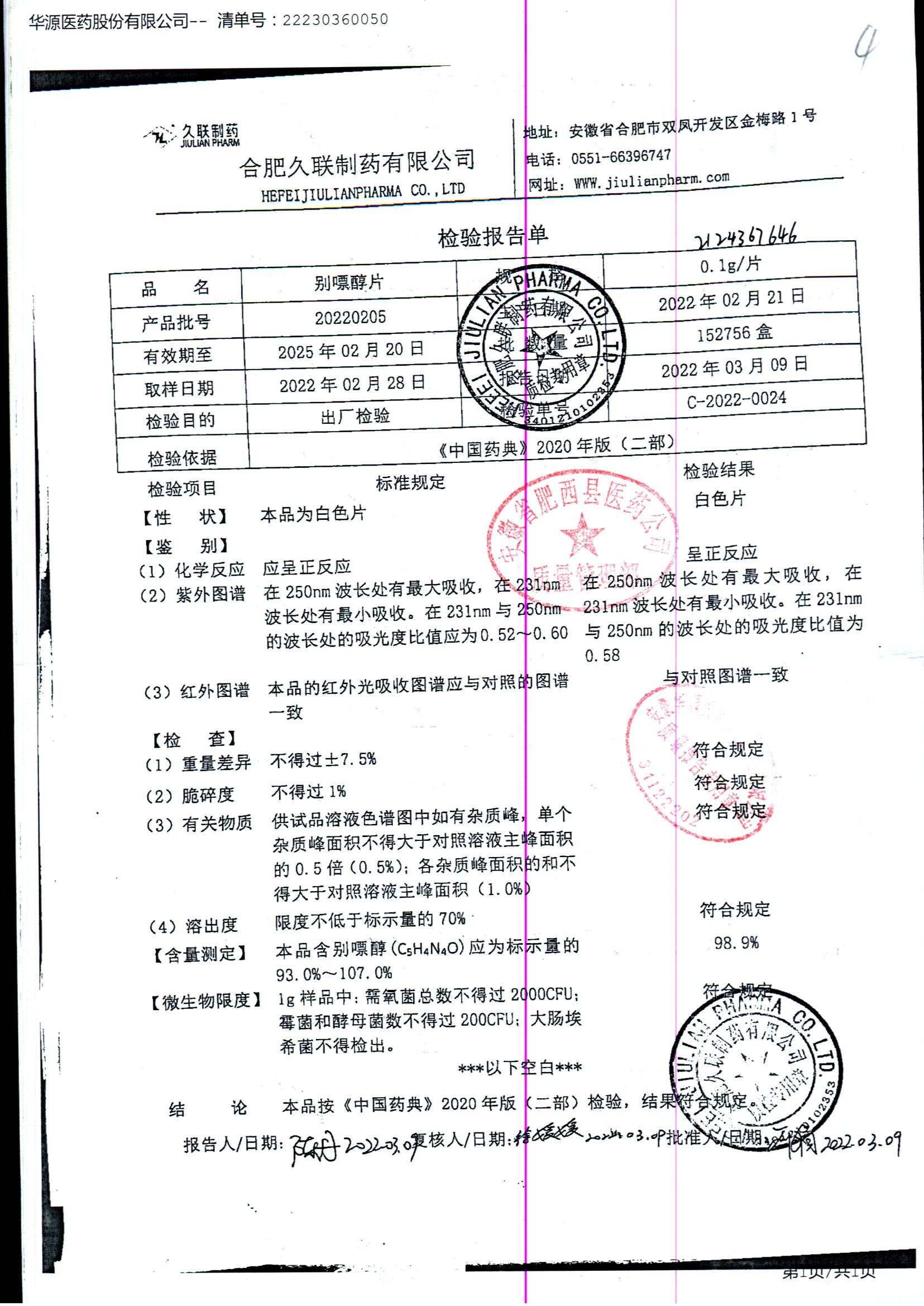 别嘌醇片 | 0.1g | 20220205 | 查看详情 |