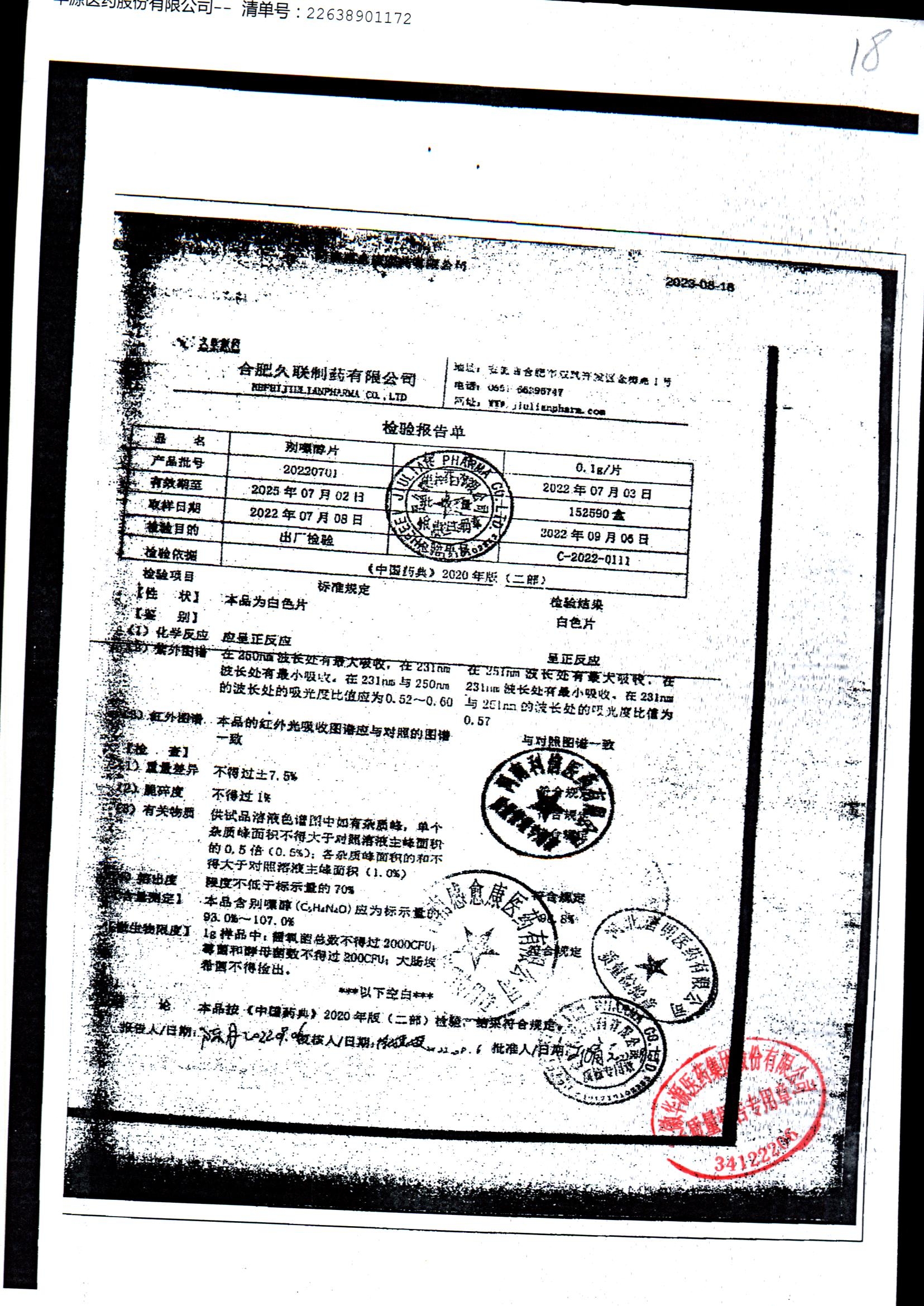 别嘌醇片 | 0.1g | 20220907 | 查看详情 |