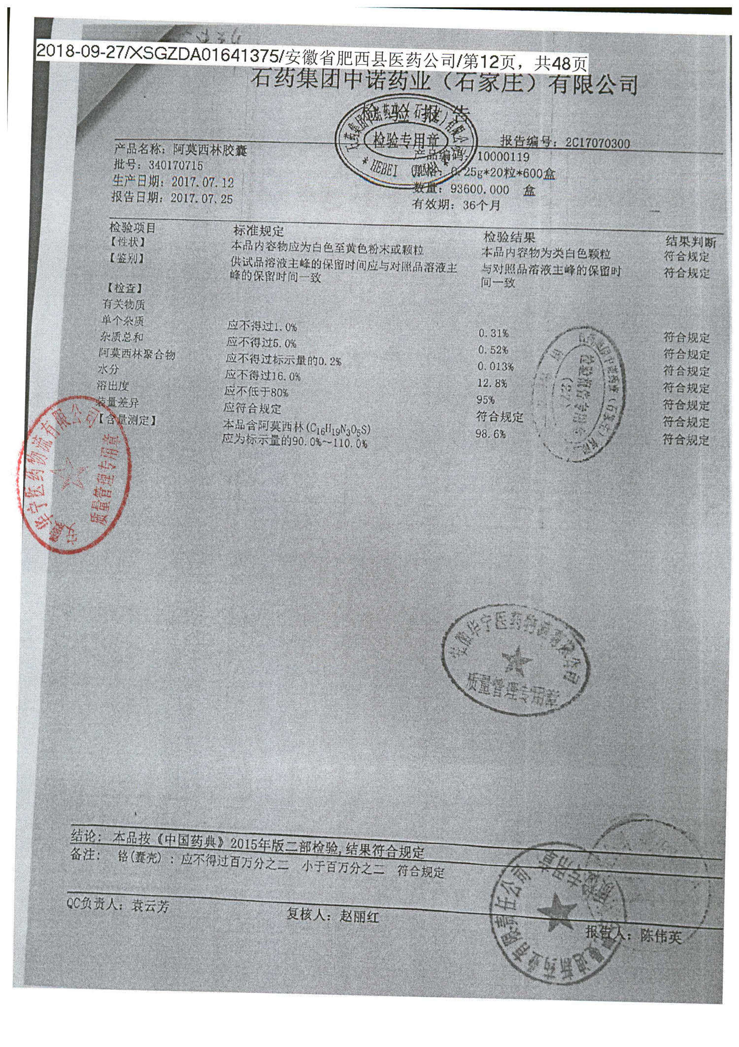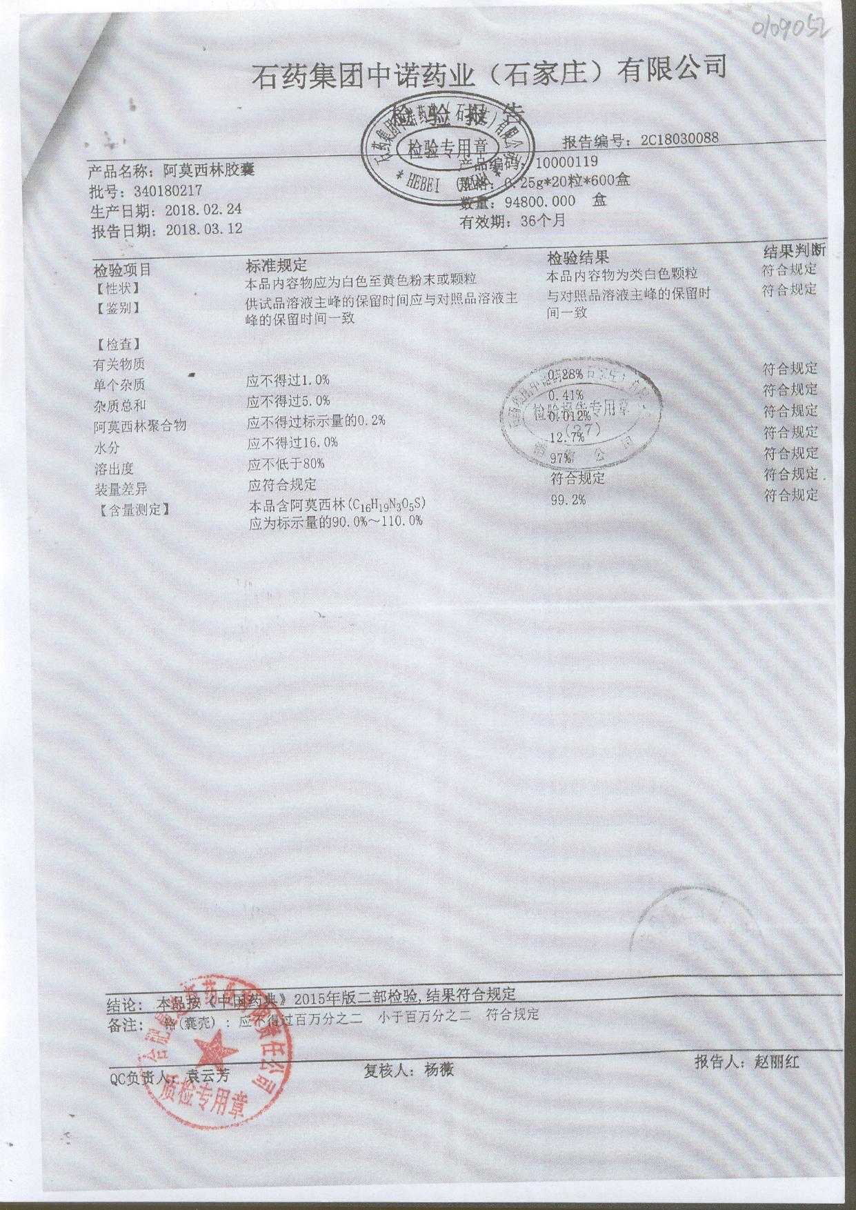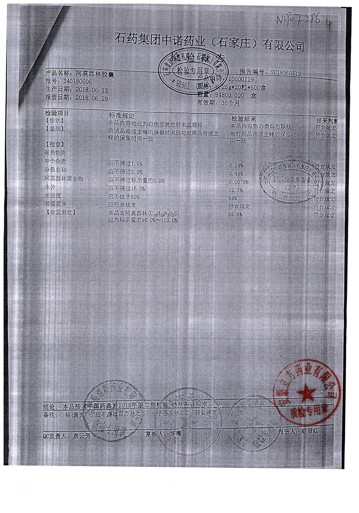 阿莫西林胶囊 | 0.25g*20粒 | 340180606 | 查看详情 |