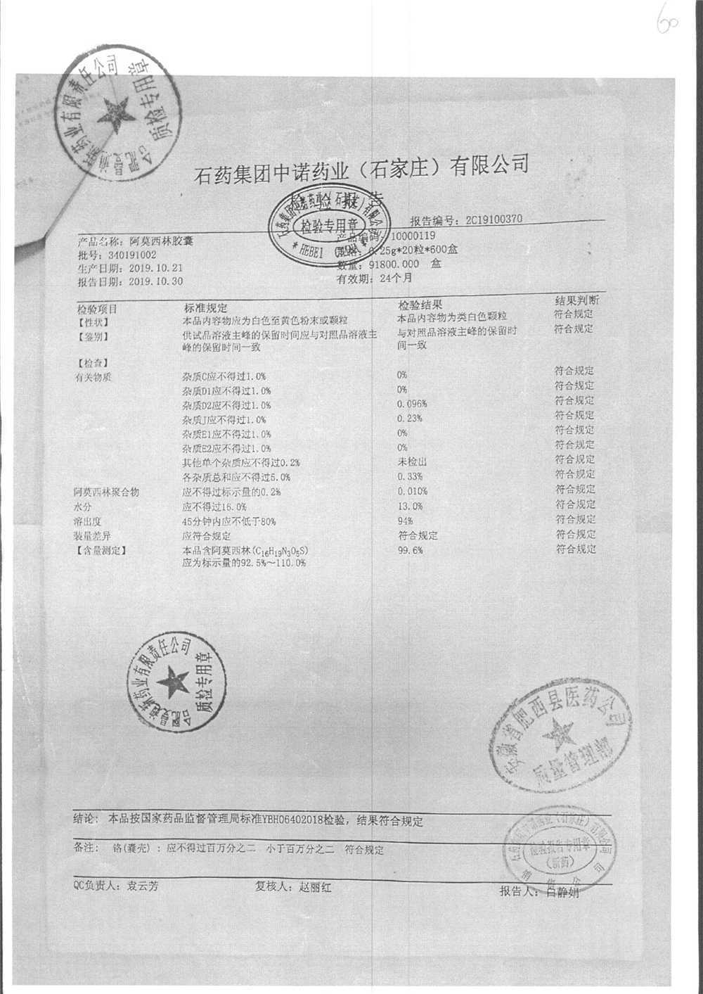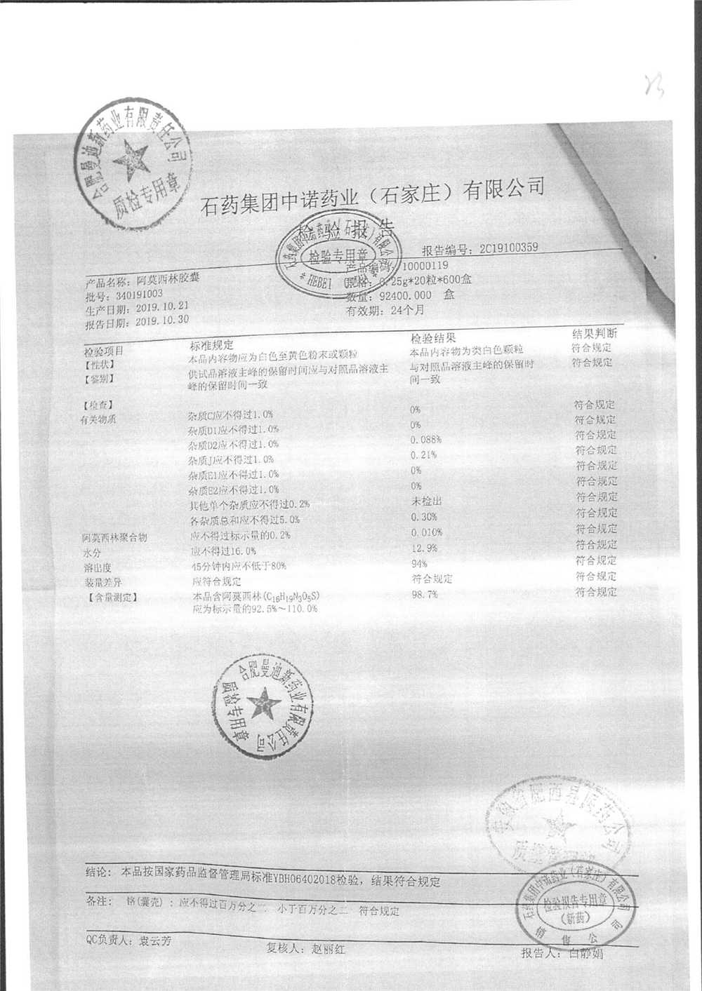 阿莫西林胶囊 | 0.25g*20粒 | 340191003 | 查看详情 |