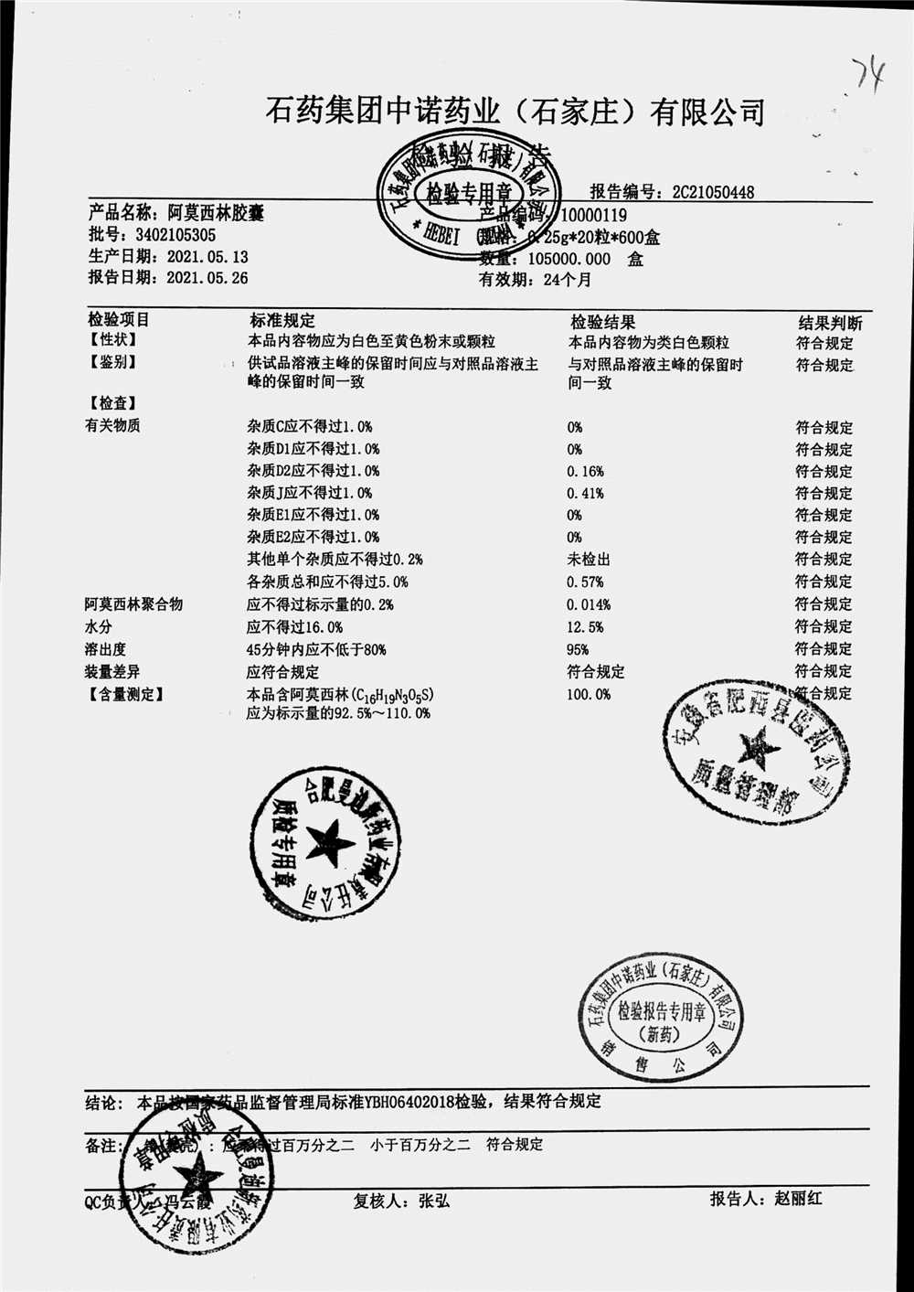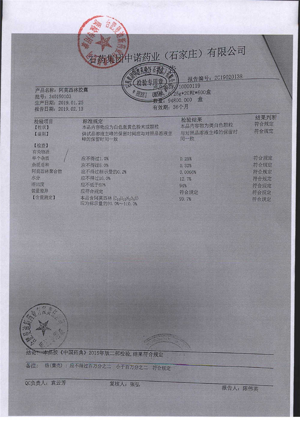 阿莫西林胶囊 | 0.25g*20粒 | 3402105305 | 查看详情 |