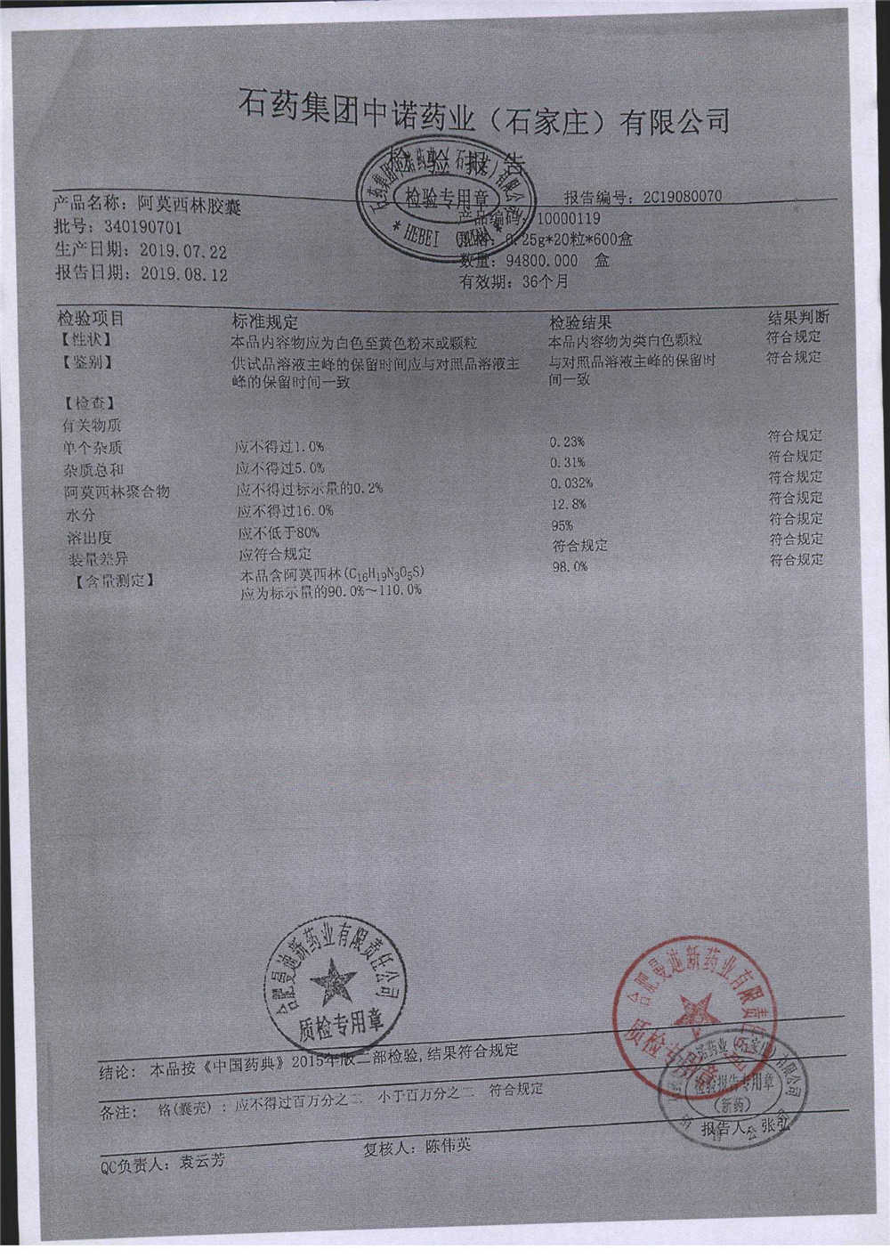 阿莫西林胶囊 | 0.25g*20粒 | 340190701 | 查看详情 |