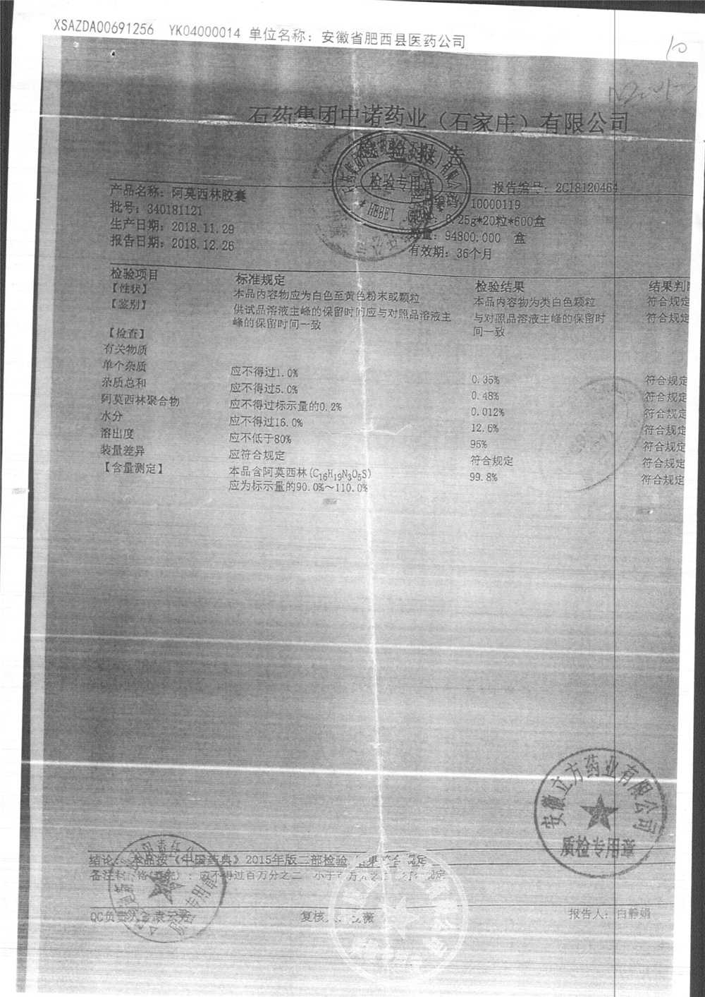 阿莫西林胶囊 | 0.25g*20粒 | 340181121 | 查看详情 |