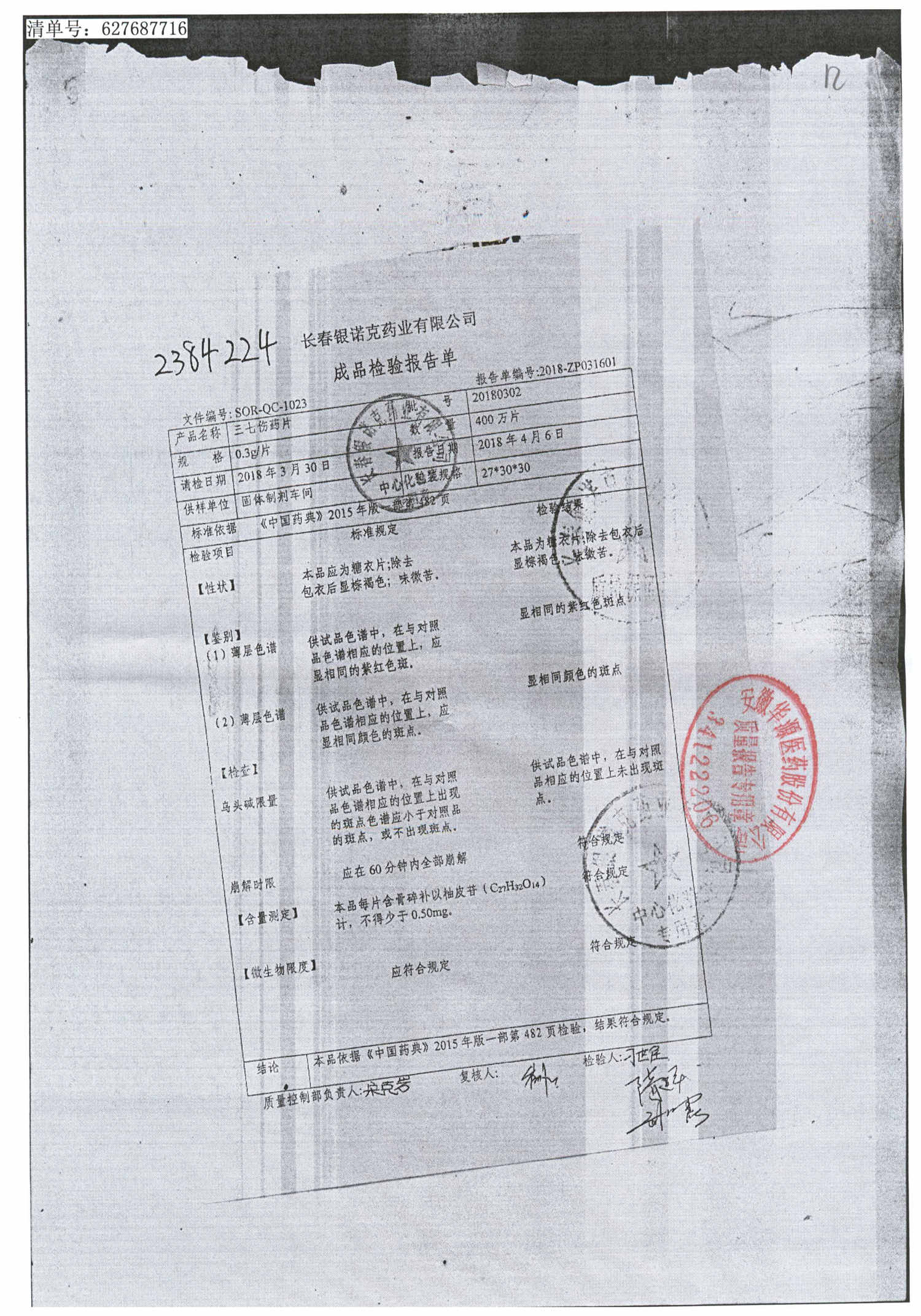 药检报告