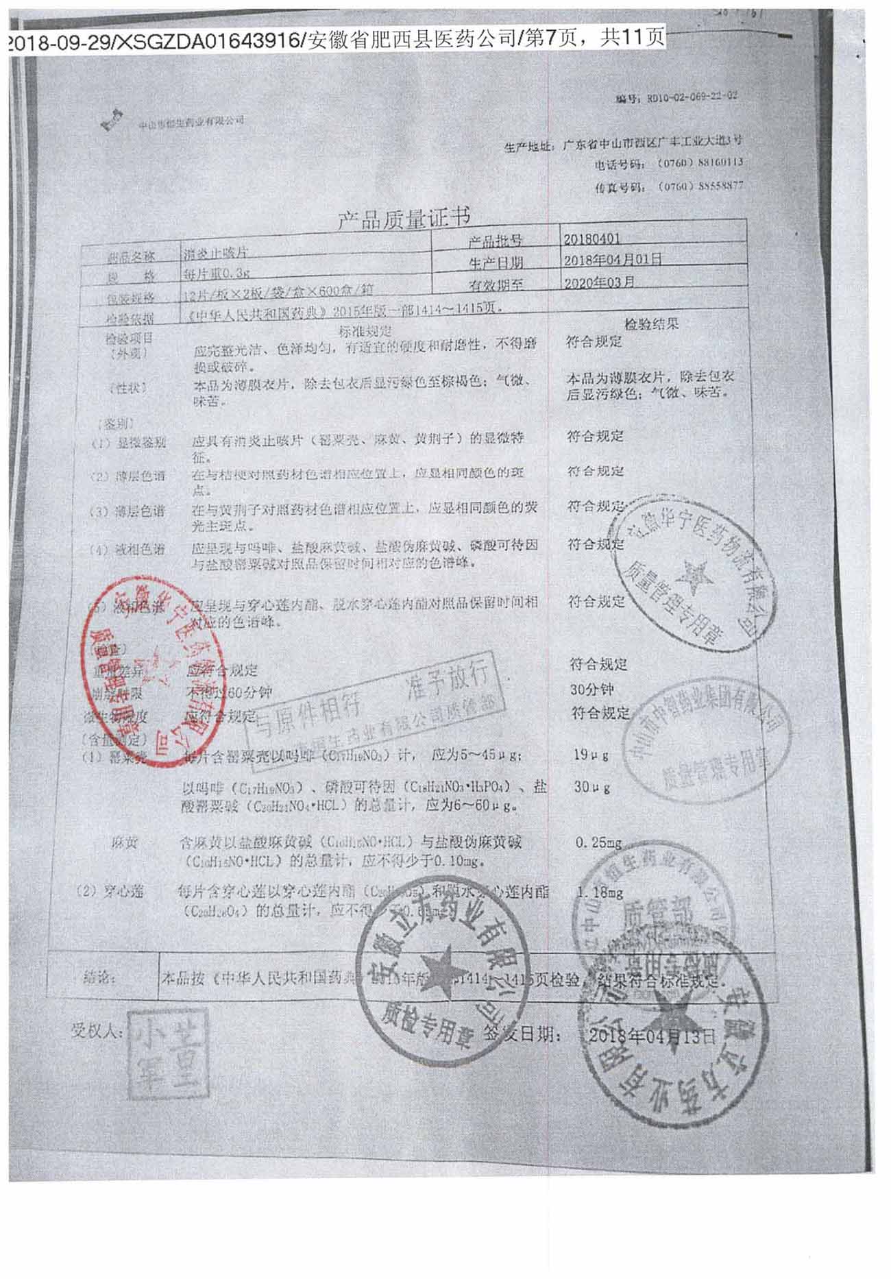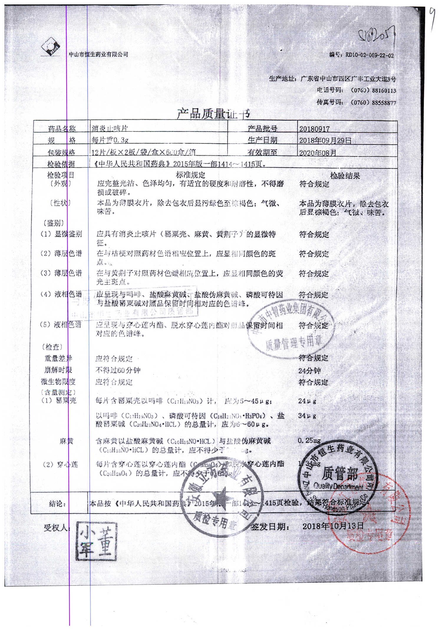 消炎止咳片 | 0.3g*24片 | 20180917 | 查看详情 |
