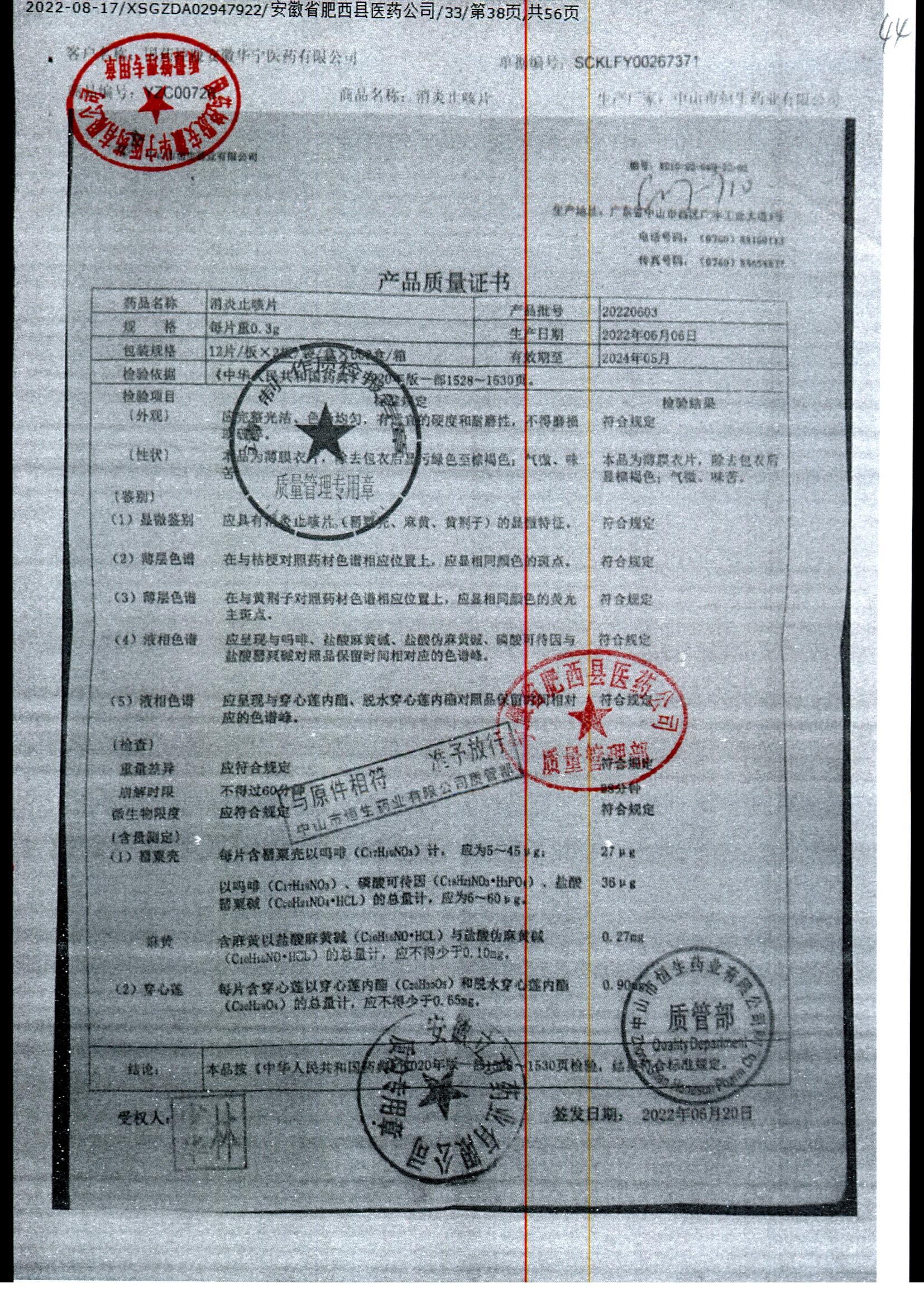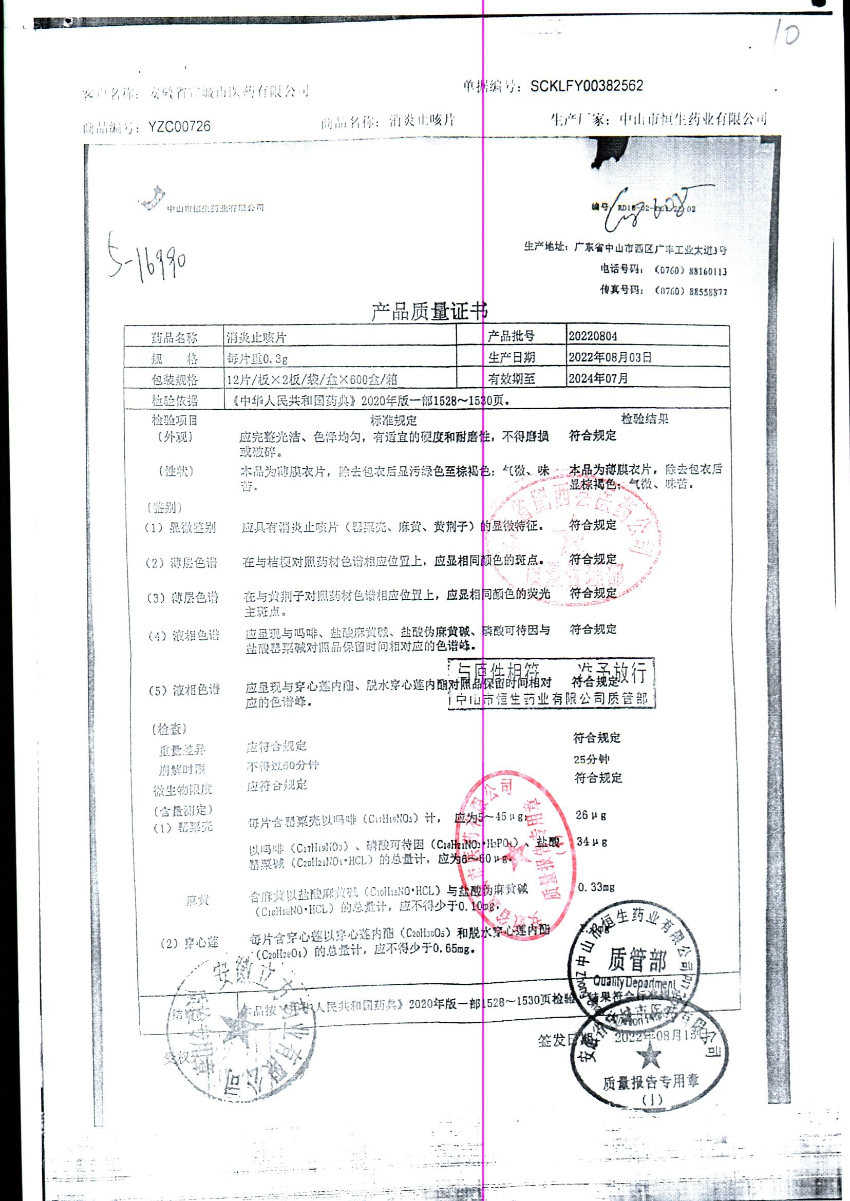 消炎止咳片 | 0.3g*24片 | 20220803 | 查看详情 |