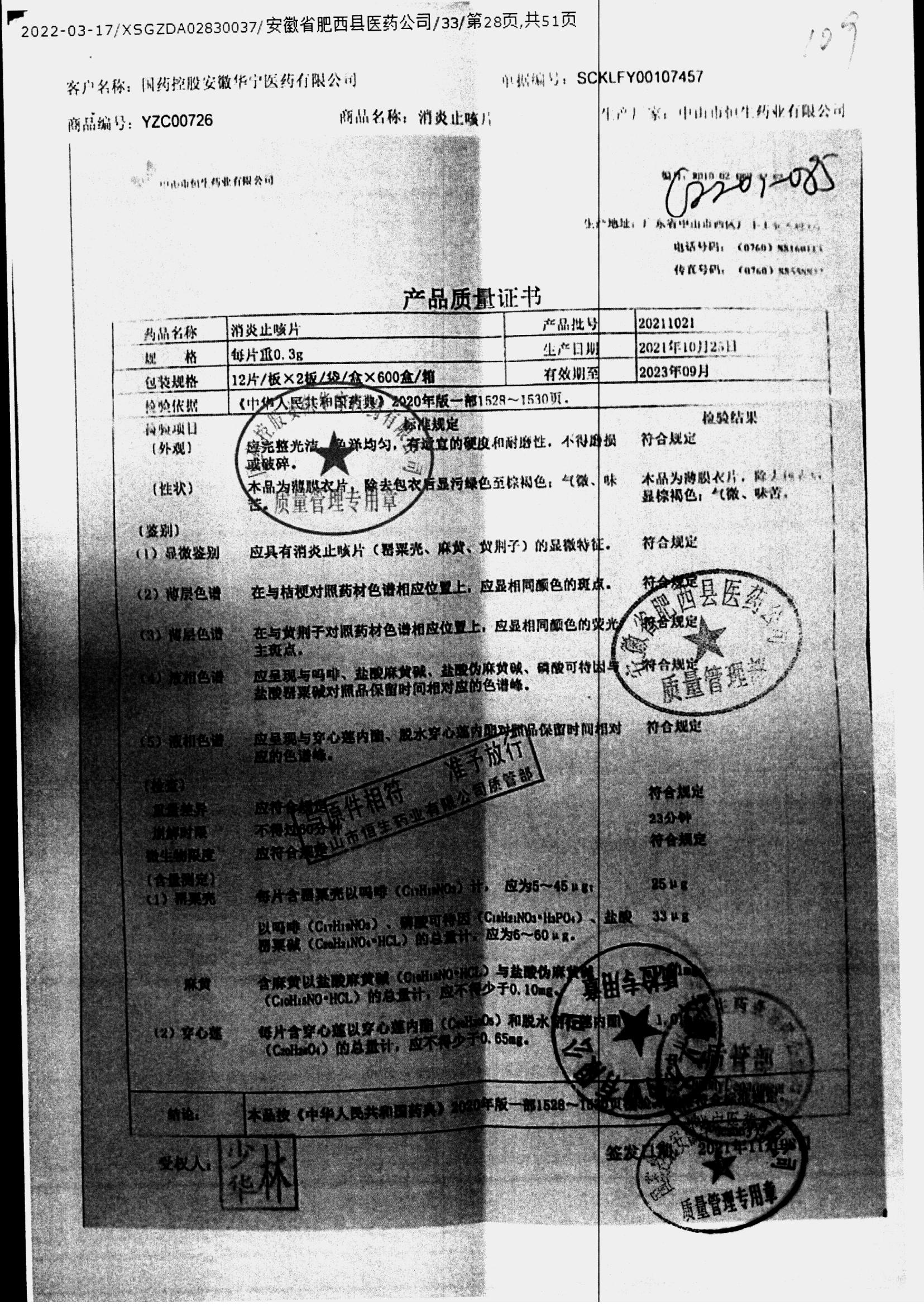 消炎止咳片 | 0.3g*24片 | 20211021 | 查看详情 |