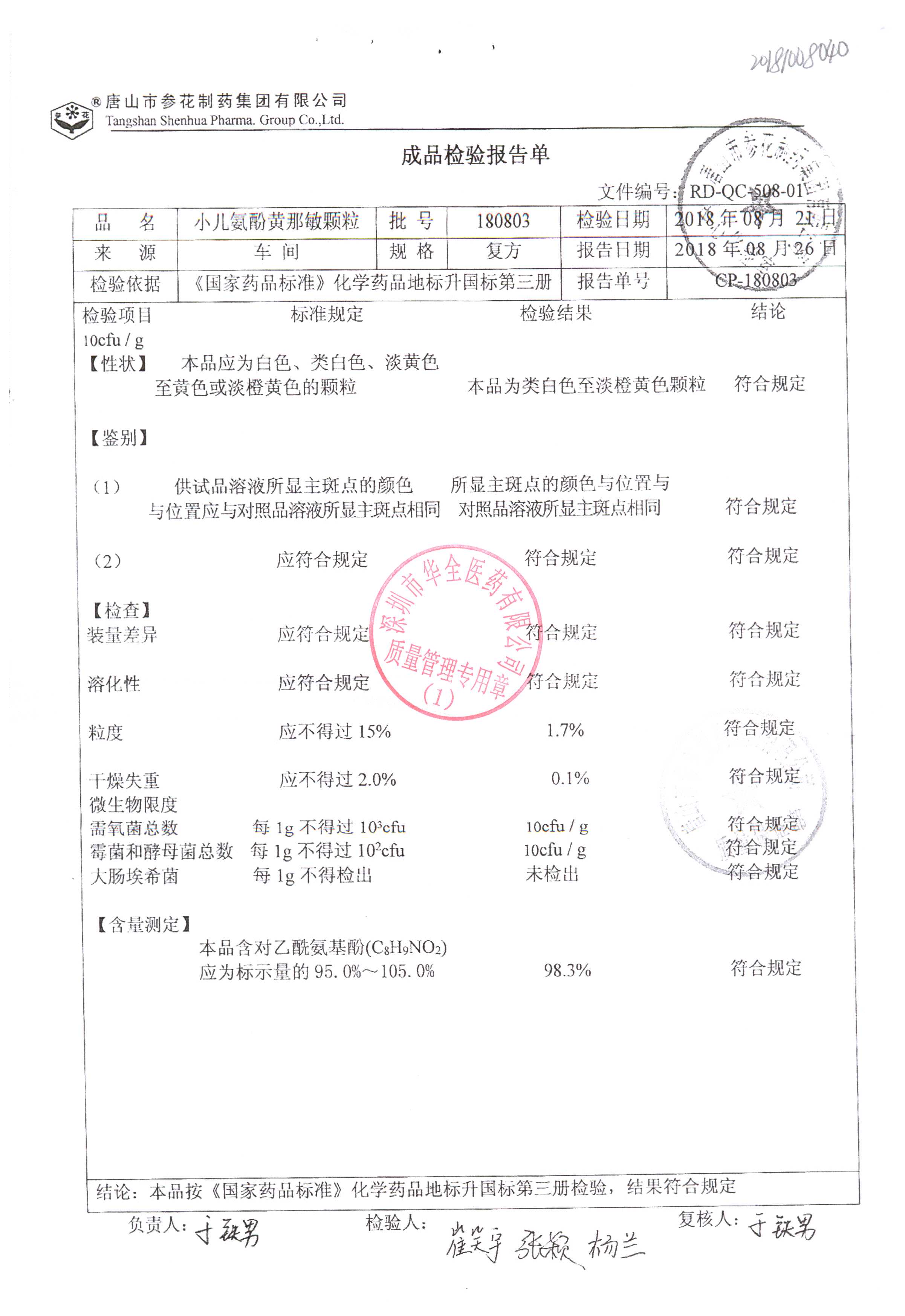 小儿氨酚黄那敏颗粒 | 6g*10袋 | 180803 | 查看详情 |