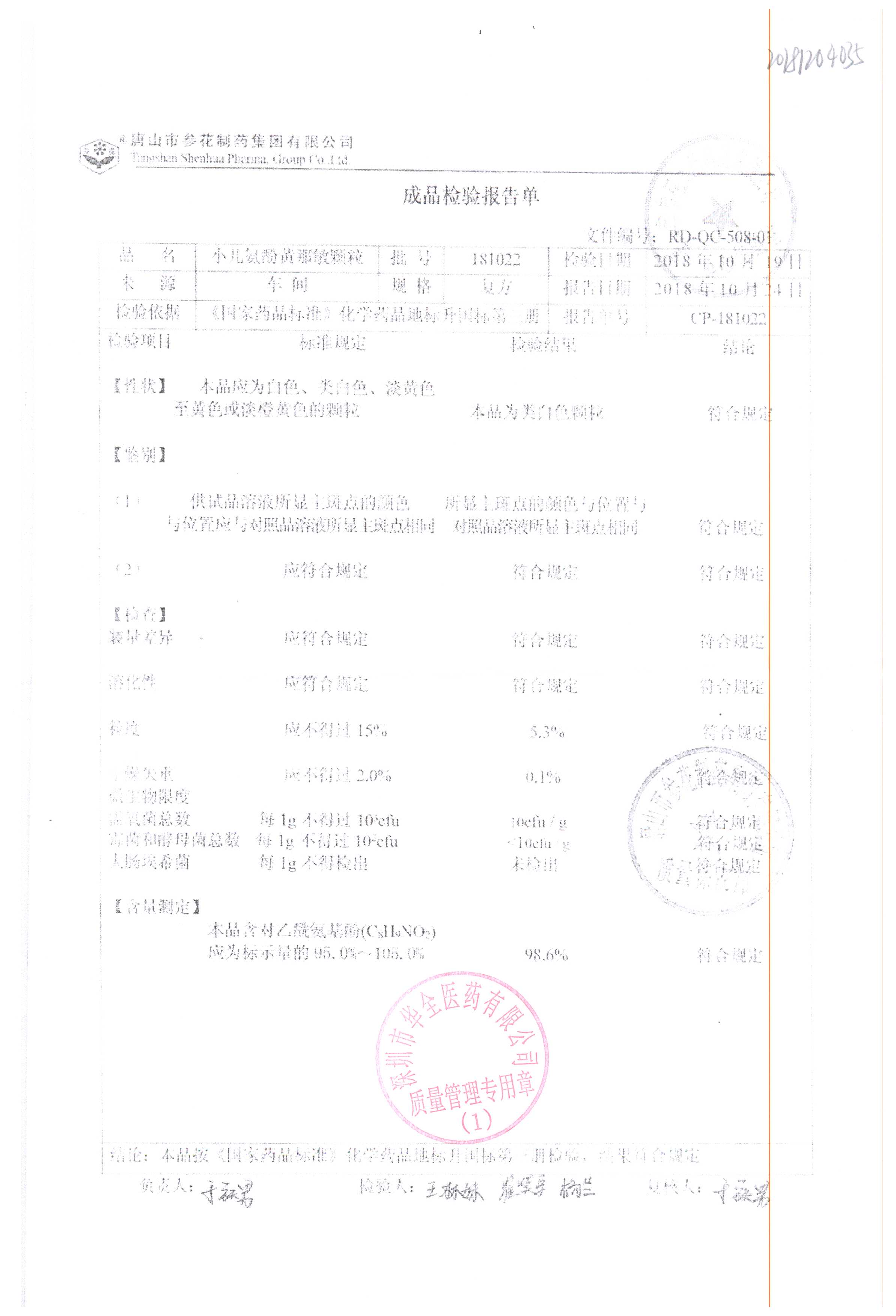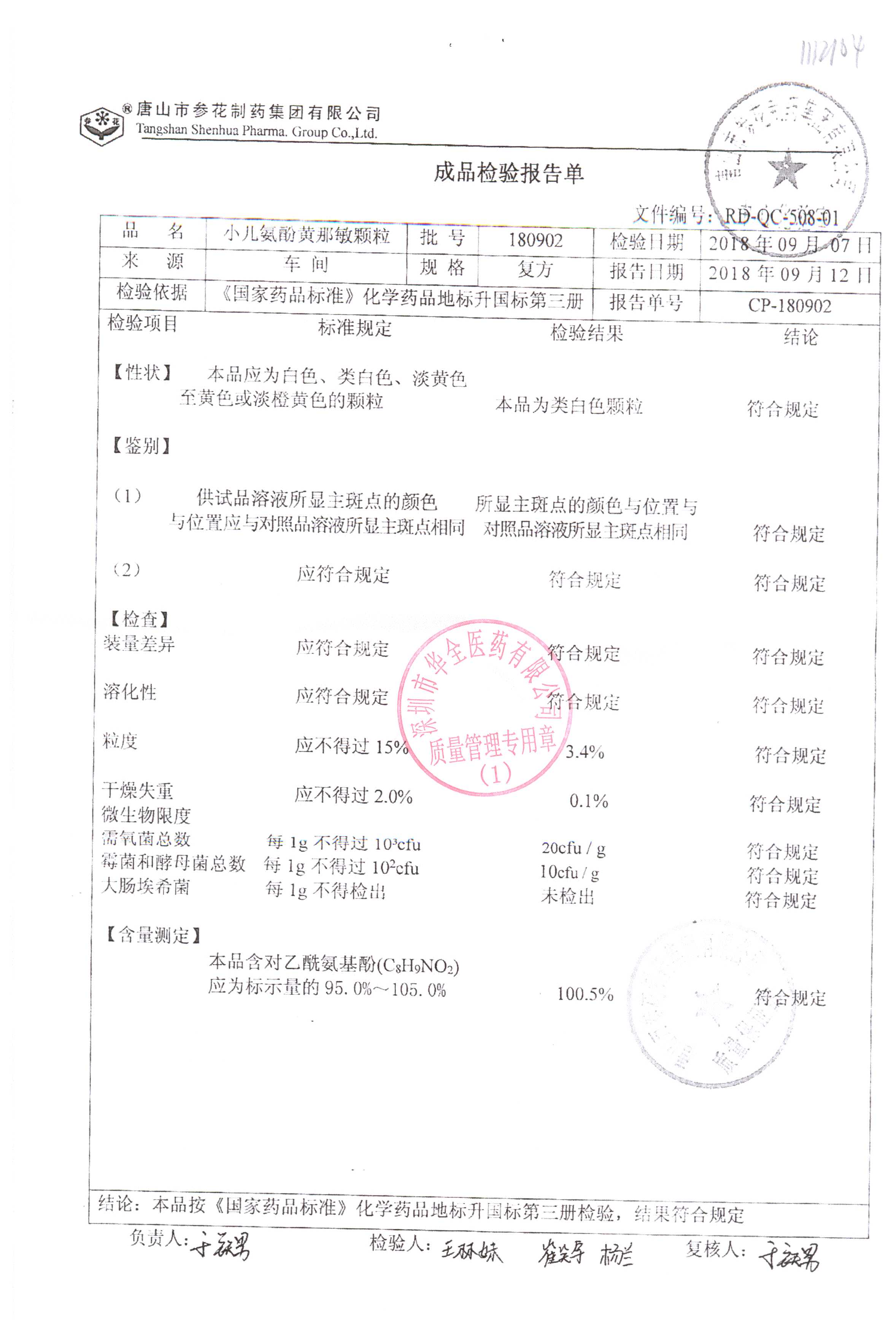 小儿氨酚黄那敏颗粒 | 6g*10袋 | 180902 | 查看详情 |