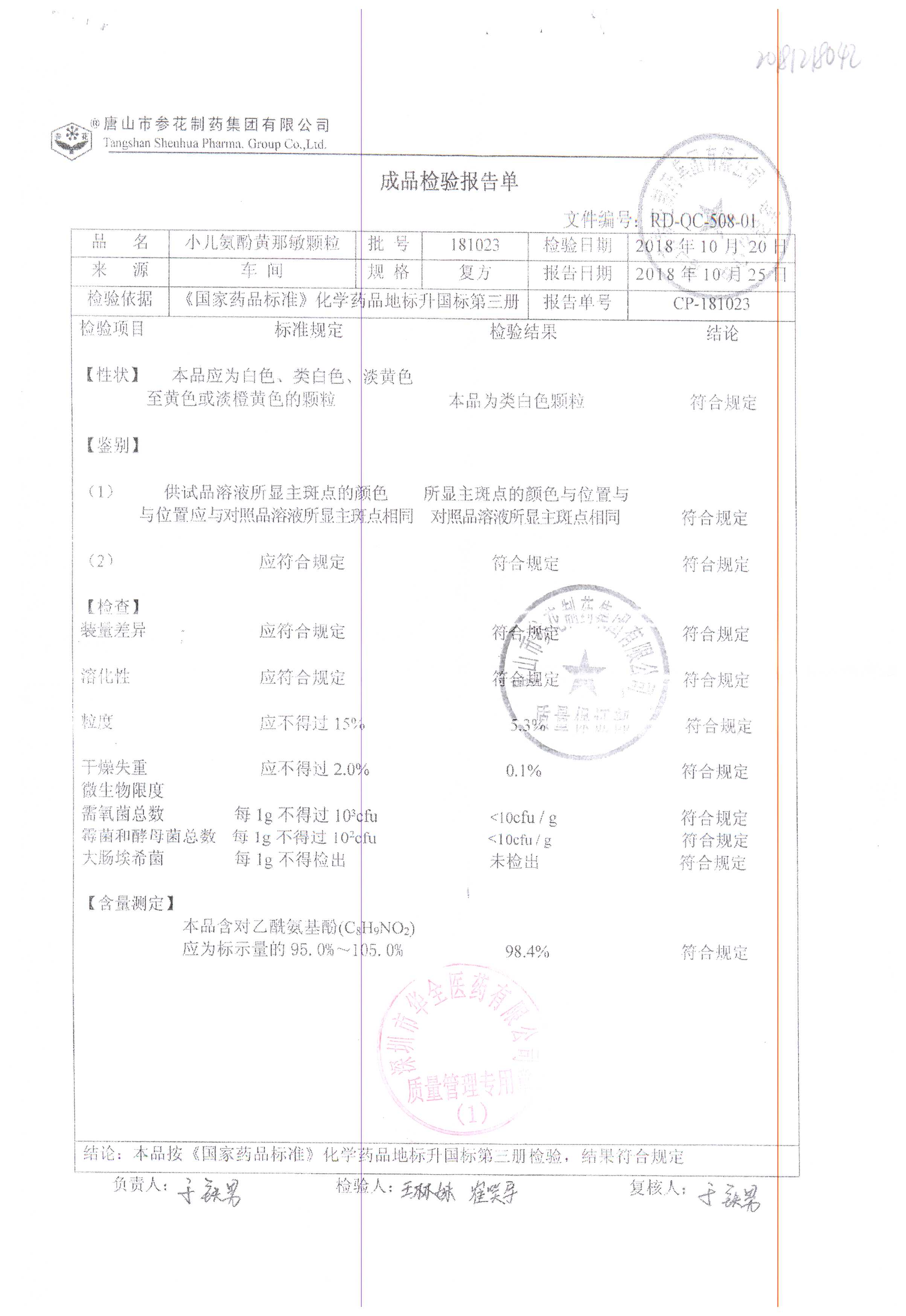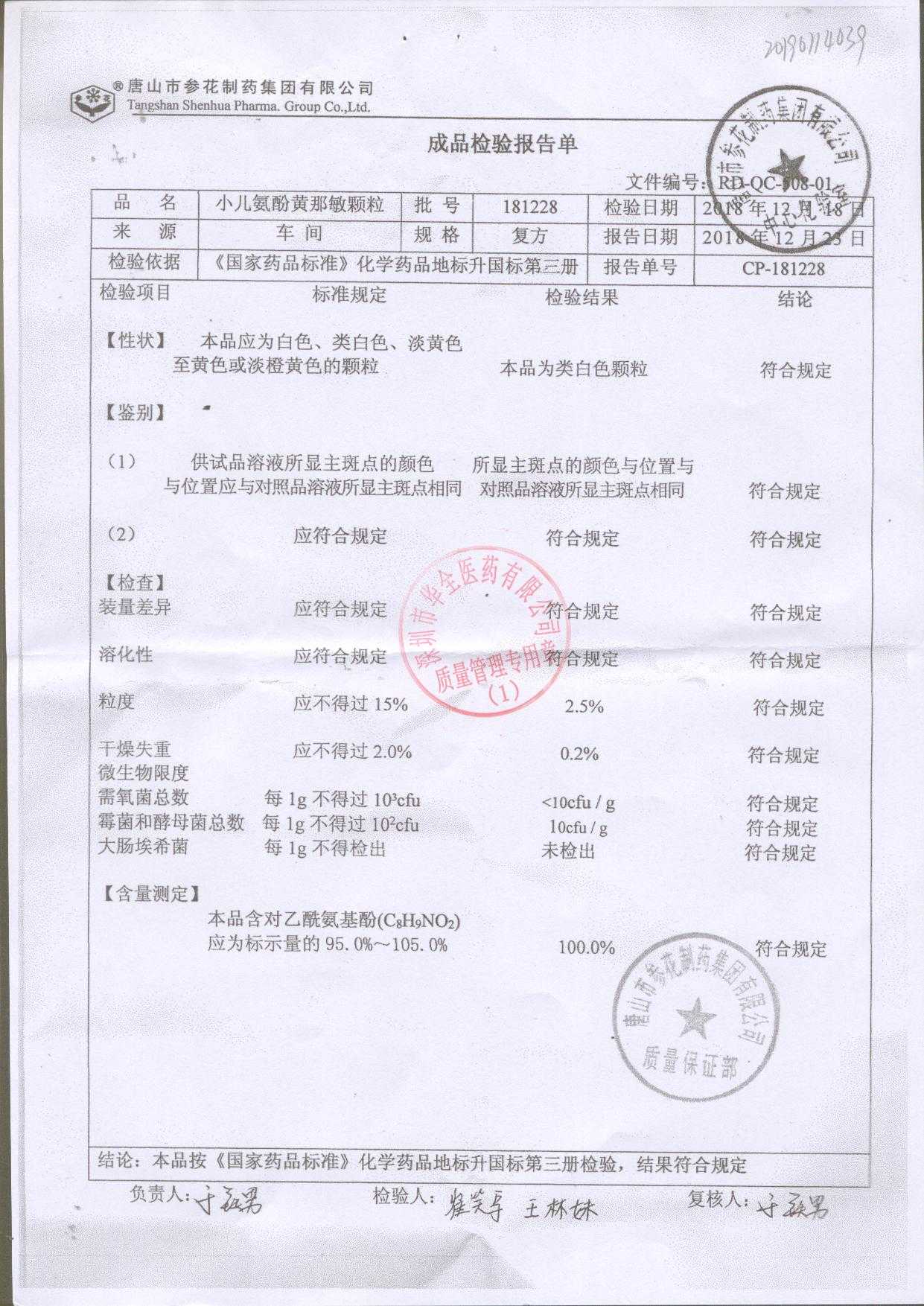 小儿氨酚黄那敏颗粒 | 6g*10袋 | 181228 | 查看详情 |