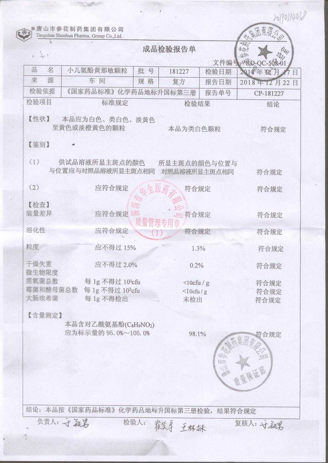 小儿氨酚黄那敏颗粒 | 6g*10袋 | 181227 | 查看详情 |