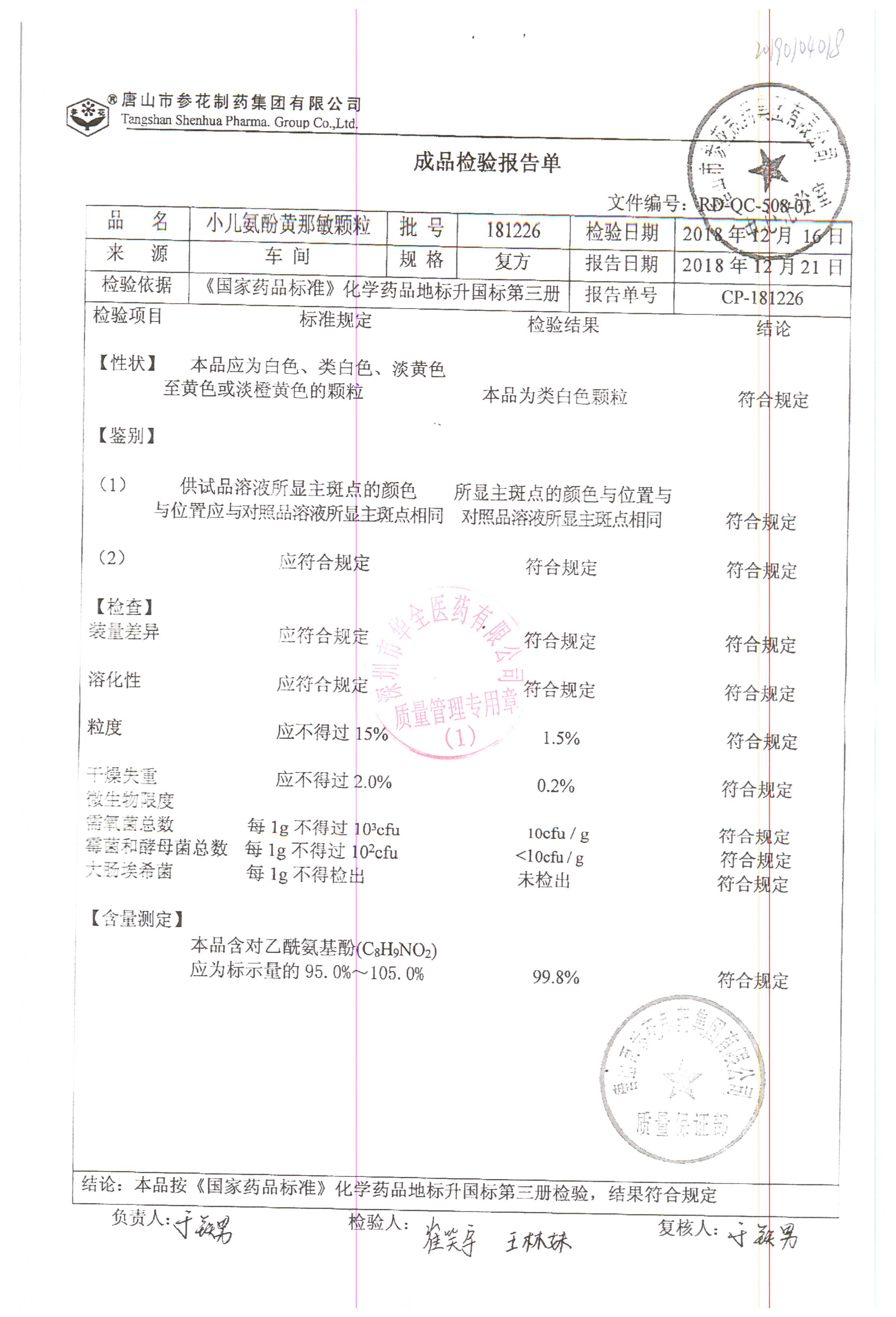 小儿氨酚黄那敏颗粒 | 6g*10袋 | 181226 | 查看详情 |