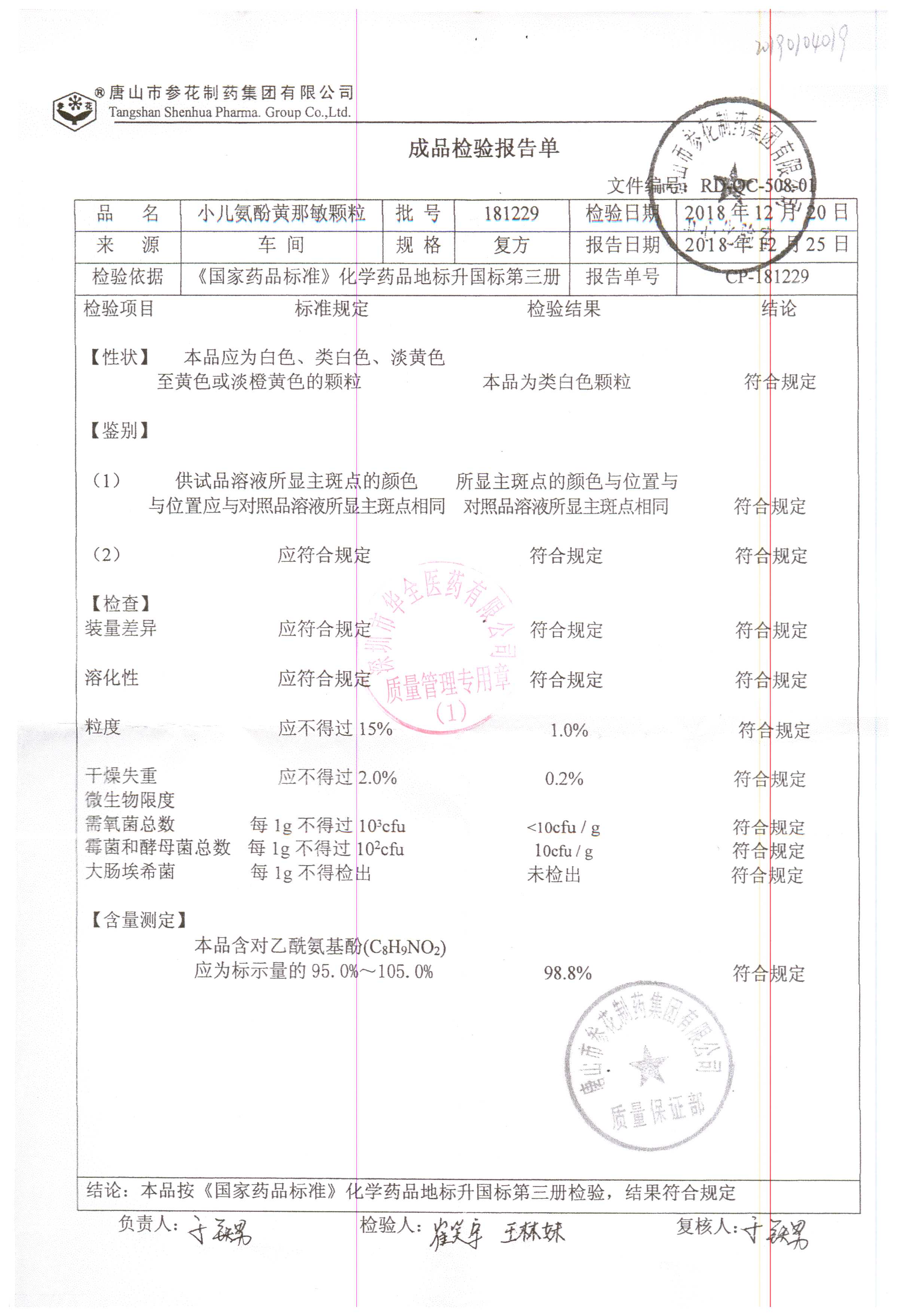 小儿氨酚黄那敏颗粒 | 6g*10袋 | 181229 | 查看详情 |