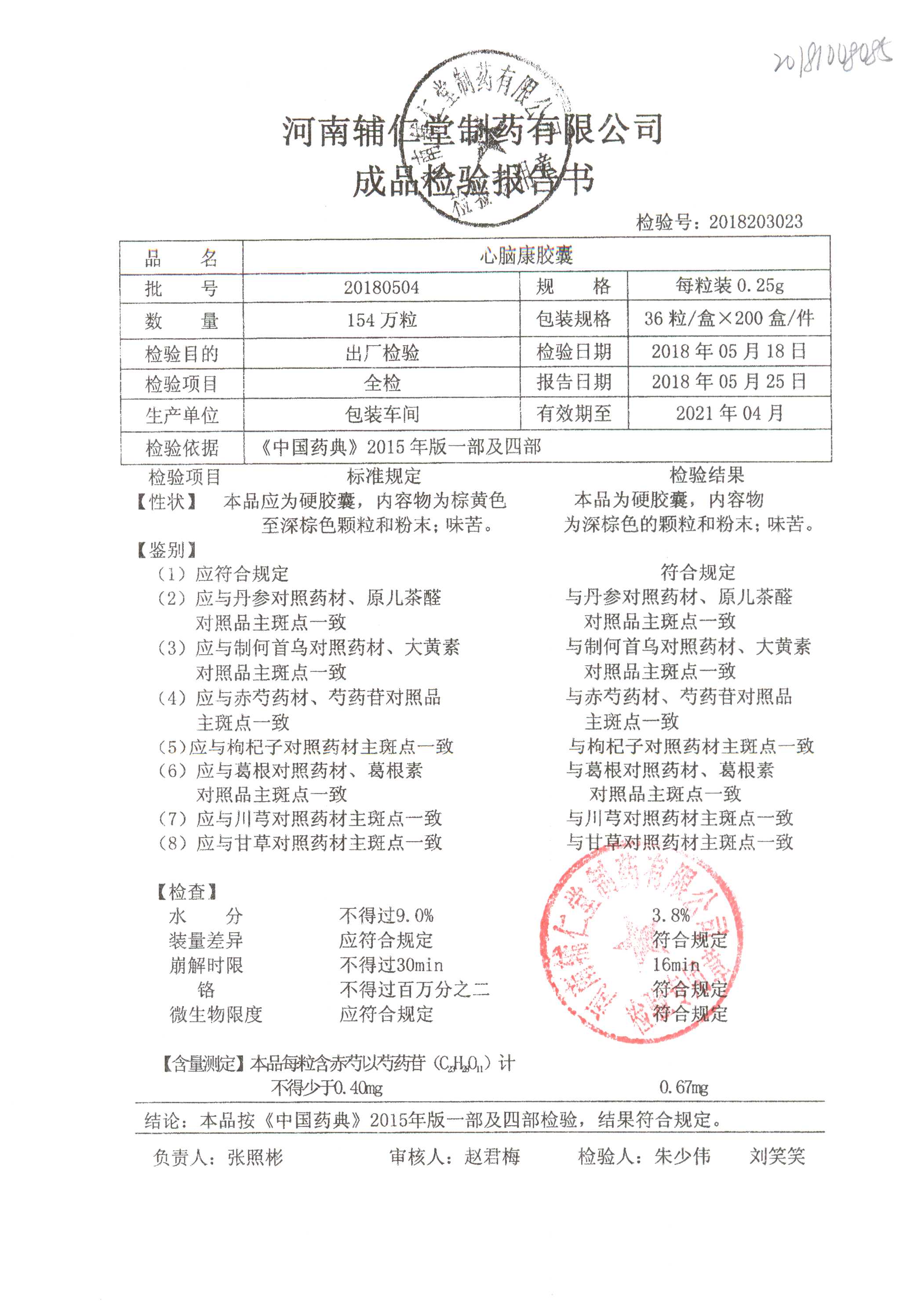心脑康胶囊 | 0.25g*36粒 | 20180504 | 查看详情 |