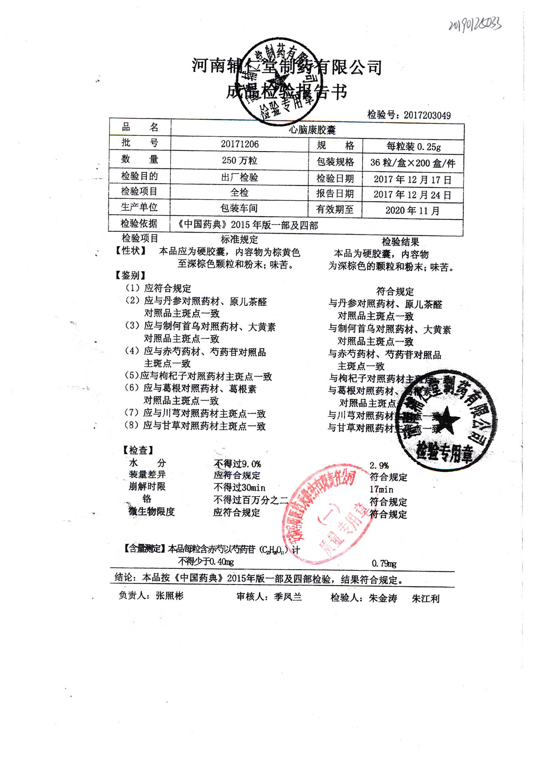 心脑康胶囊 | 0.25g*36粒 | 20171206 | 查看详情 |