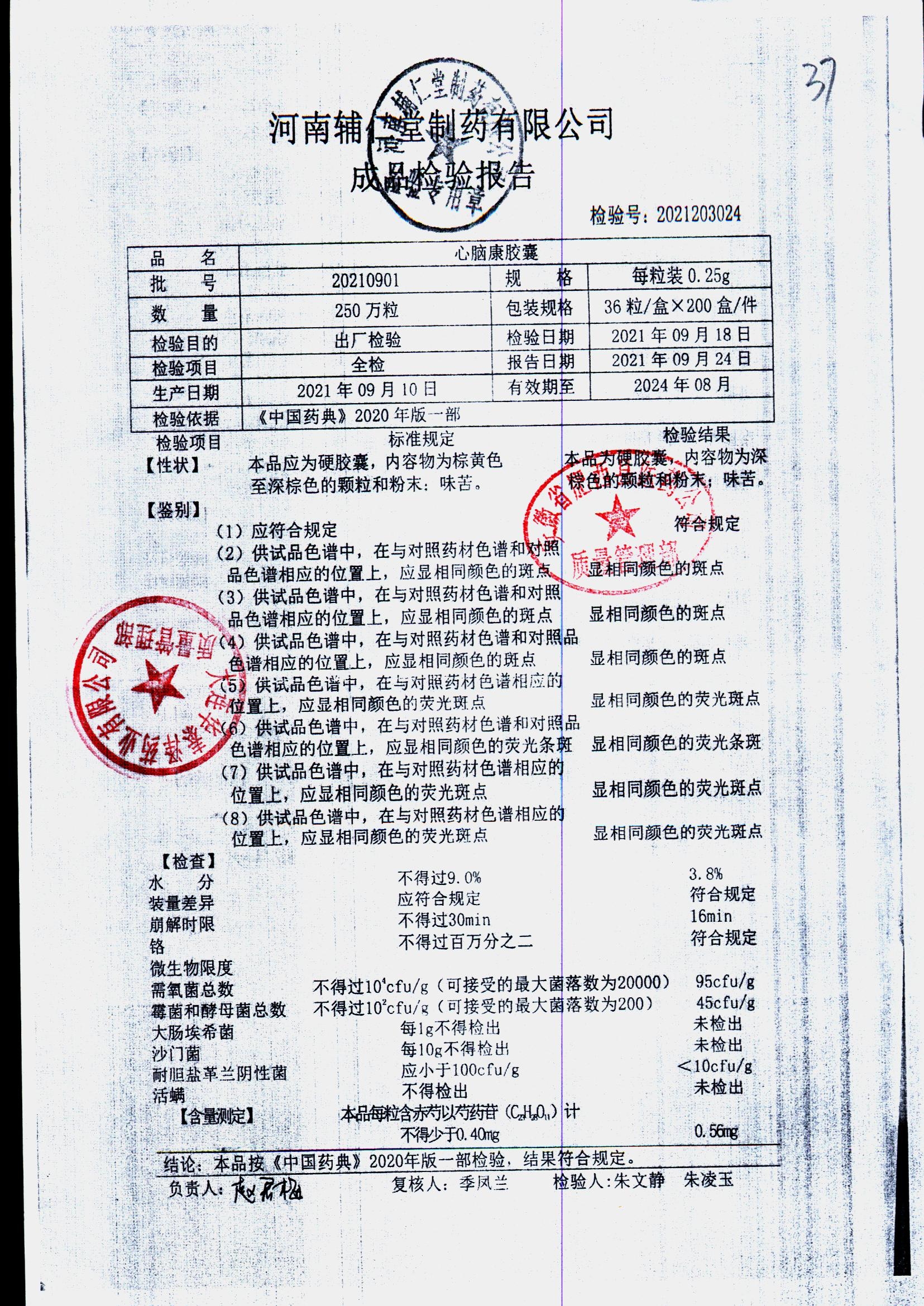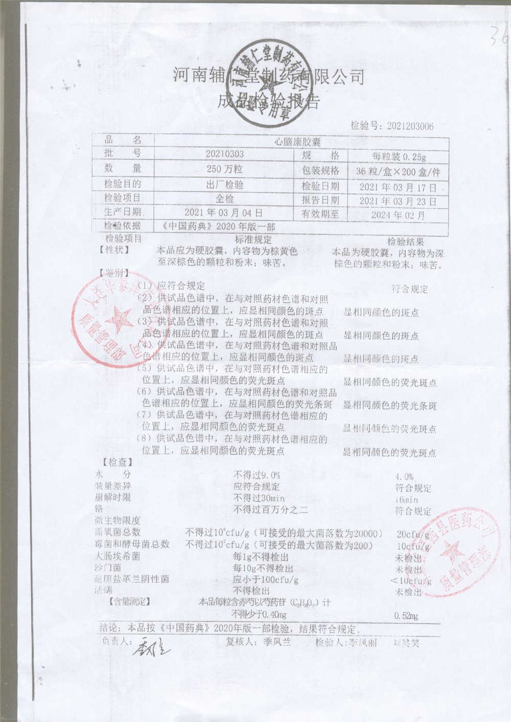 心脑康胶囊 | 0.25g*36粒 | 20210901 | 查看详情 |