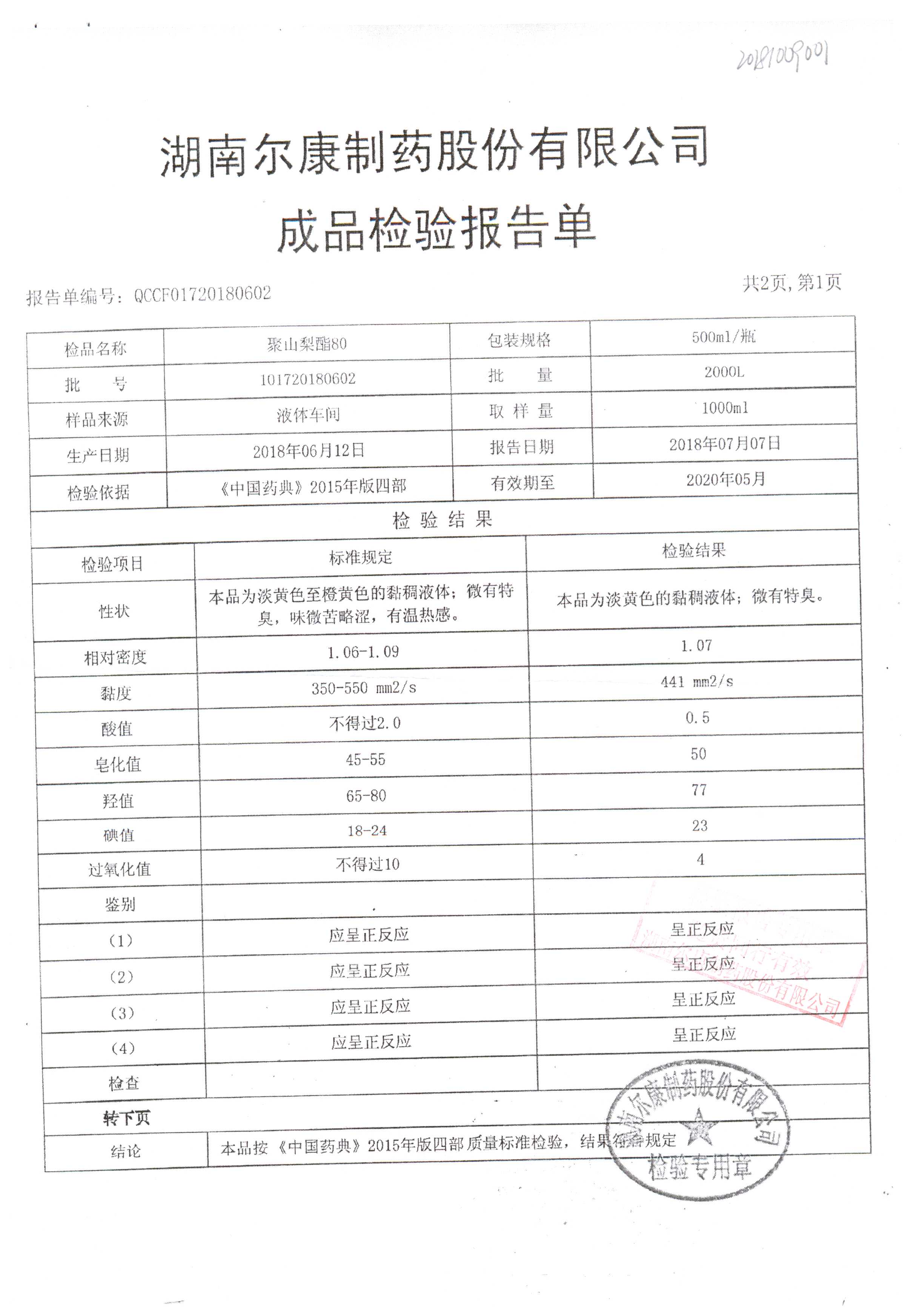 聚山梨酯80 | 500ml | 101720180602(1/2) | 查看详情 |