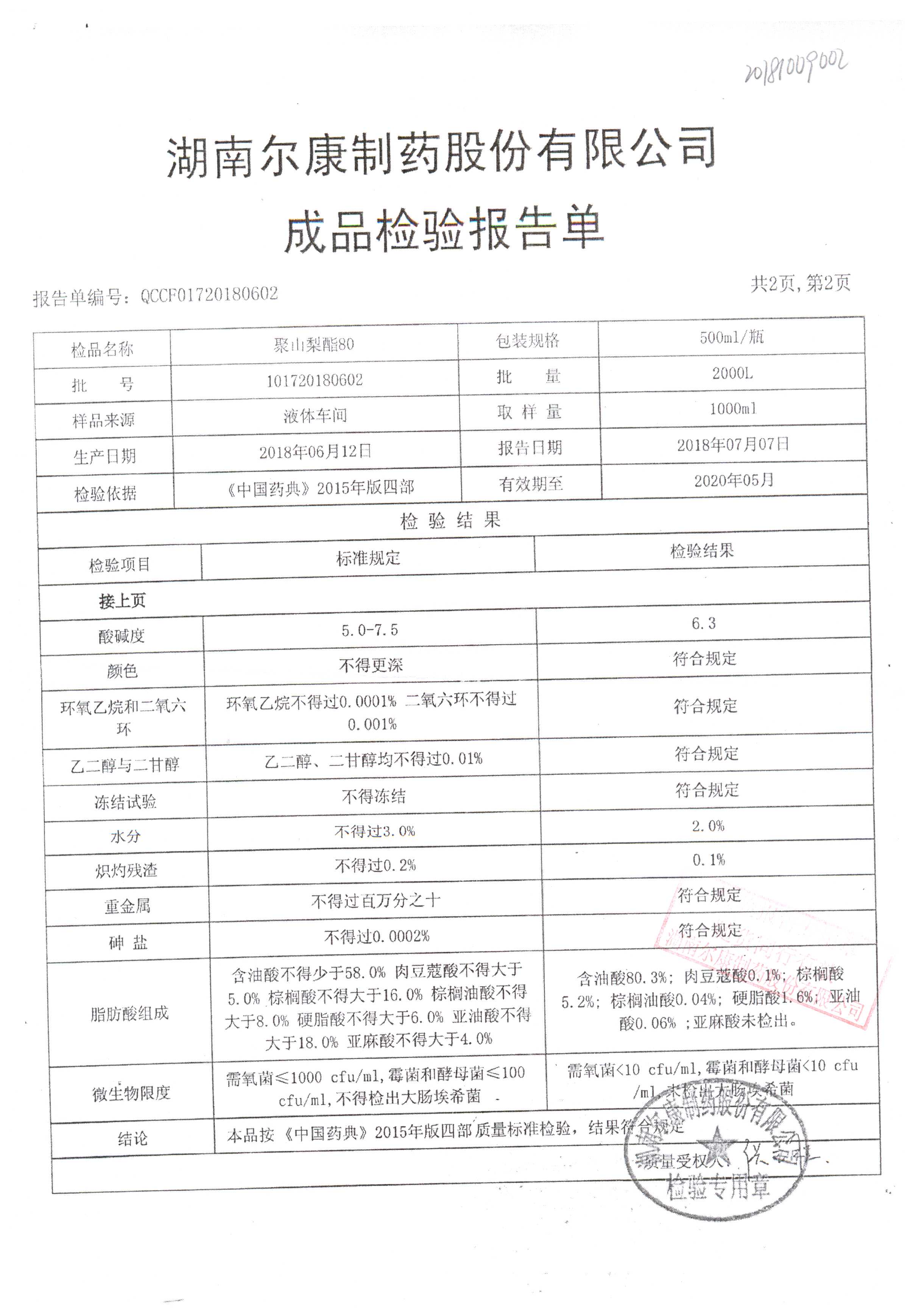 聚山梨酯80 | 500ml | 101720180602(2/2) | 查看详情 |