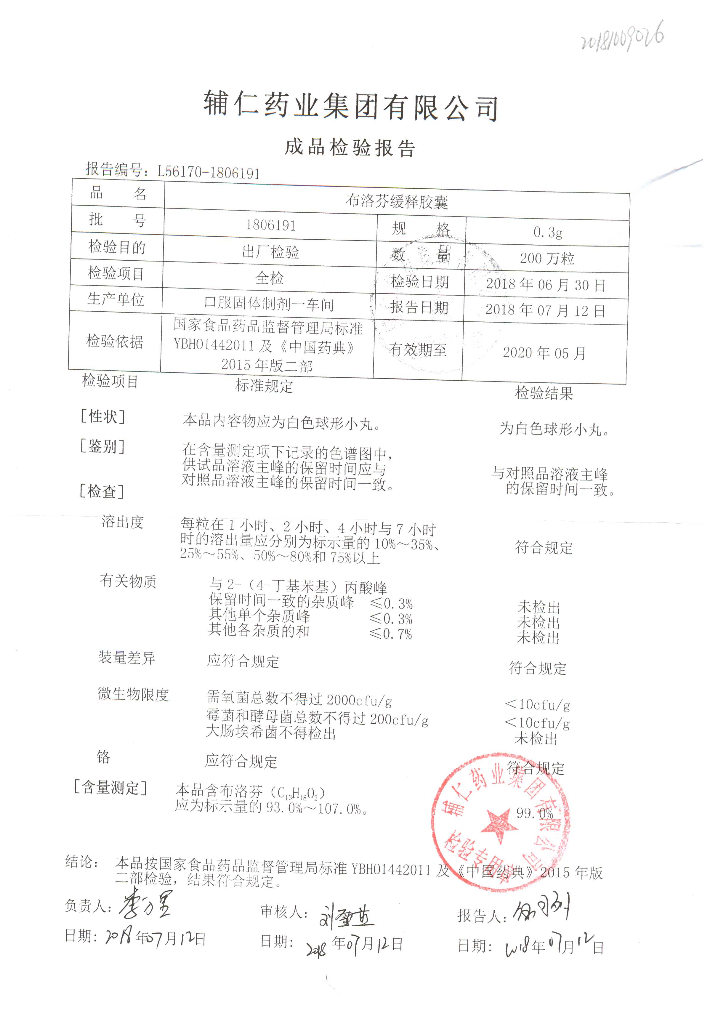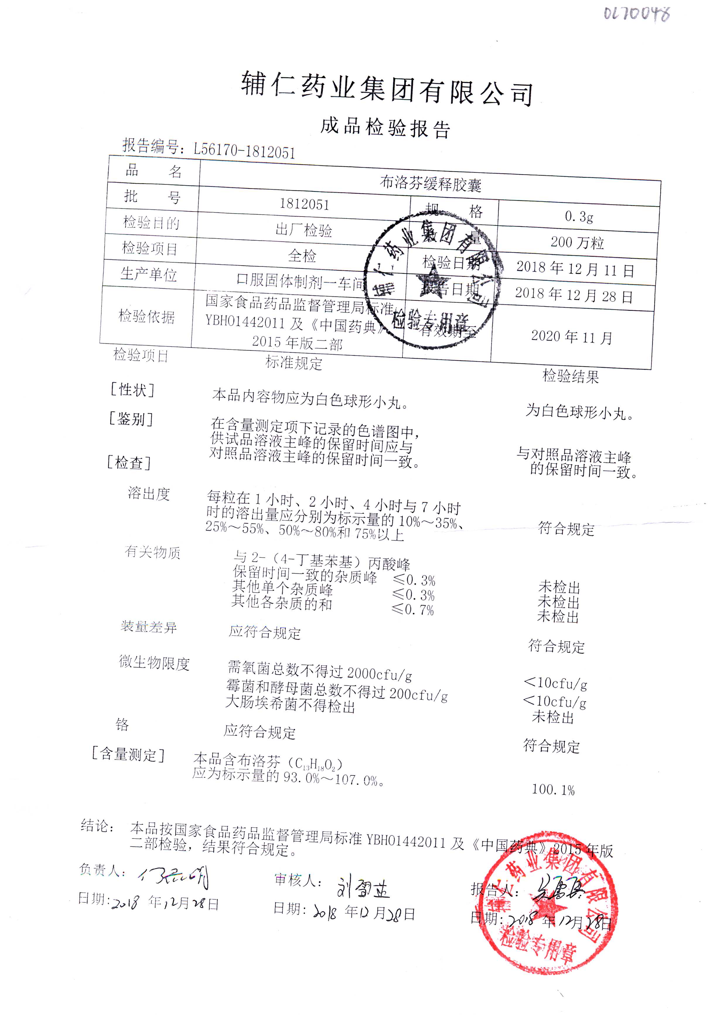 布洛芬缓释胶囊 | 0.3g | 1812051 | 查看详情 |