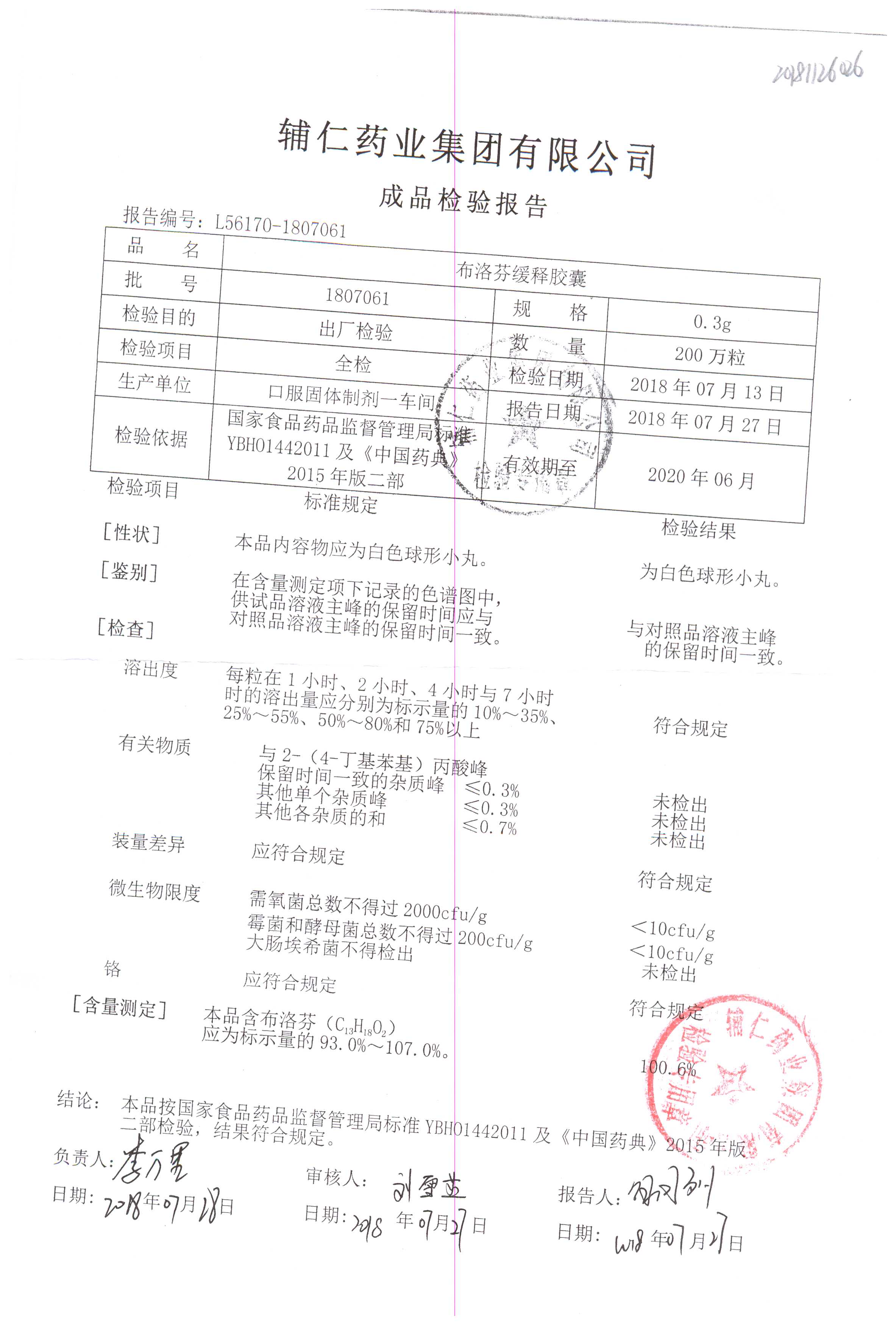 布洛芬缓释胶囊 | 0.3g | 1807061 | 查看详情 |