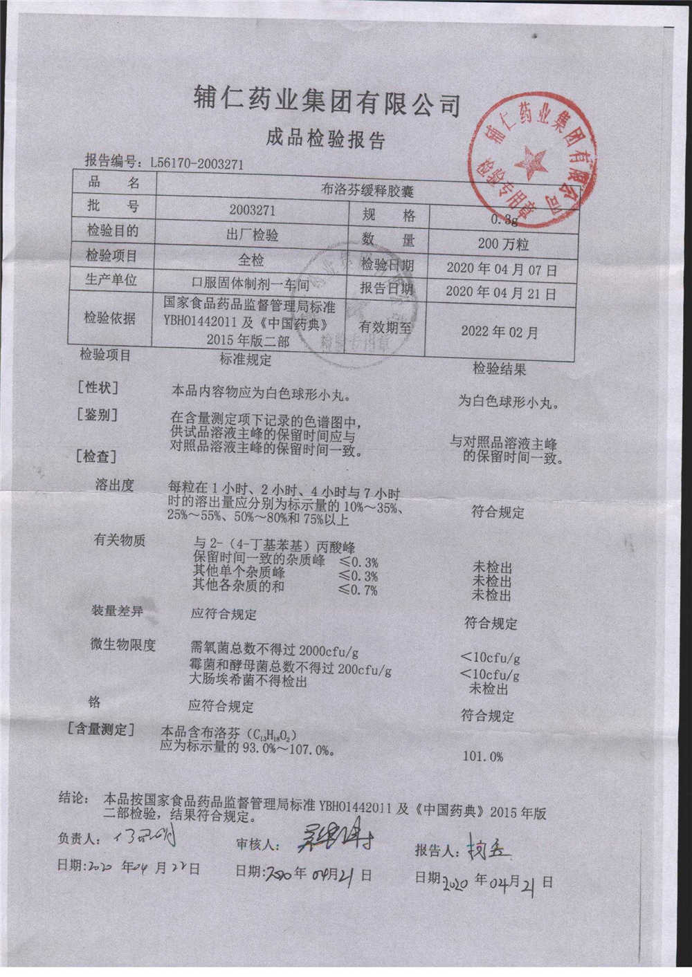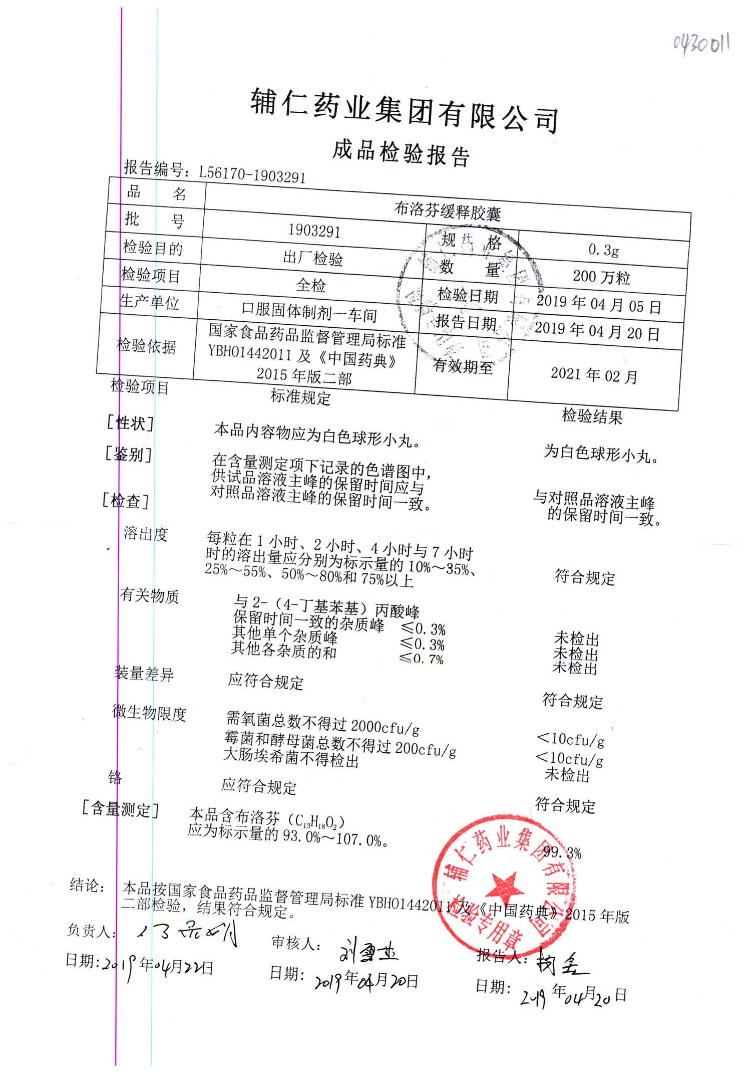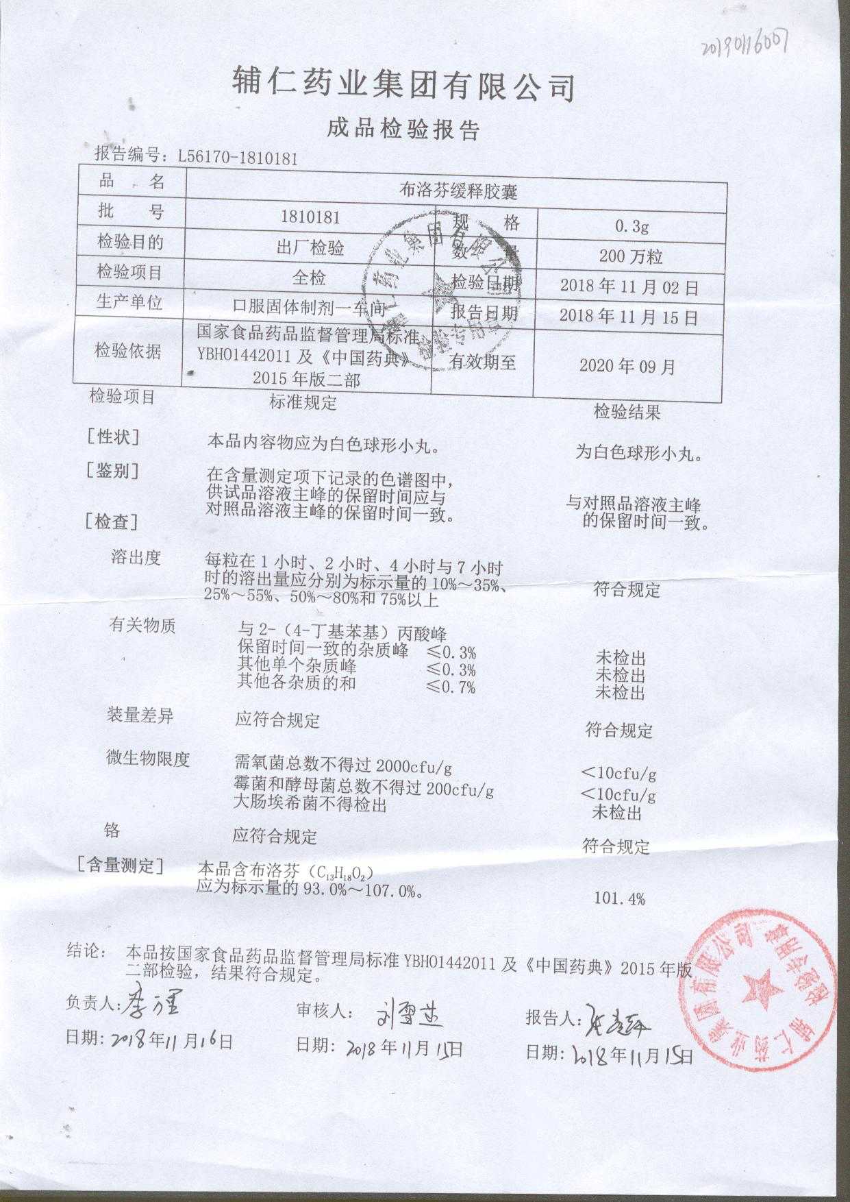 布洛芬缓释胶囊 | 0.3g | 1911211 | 查看详情 |