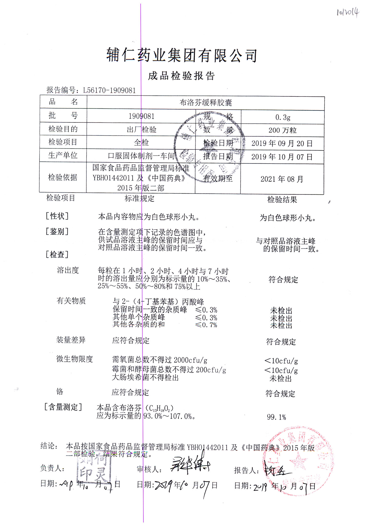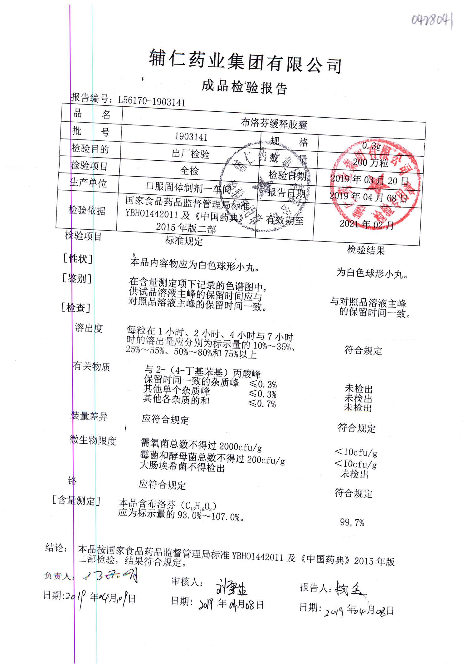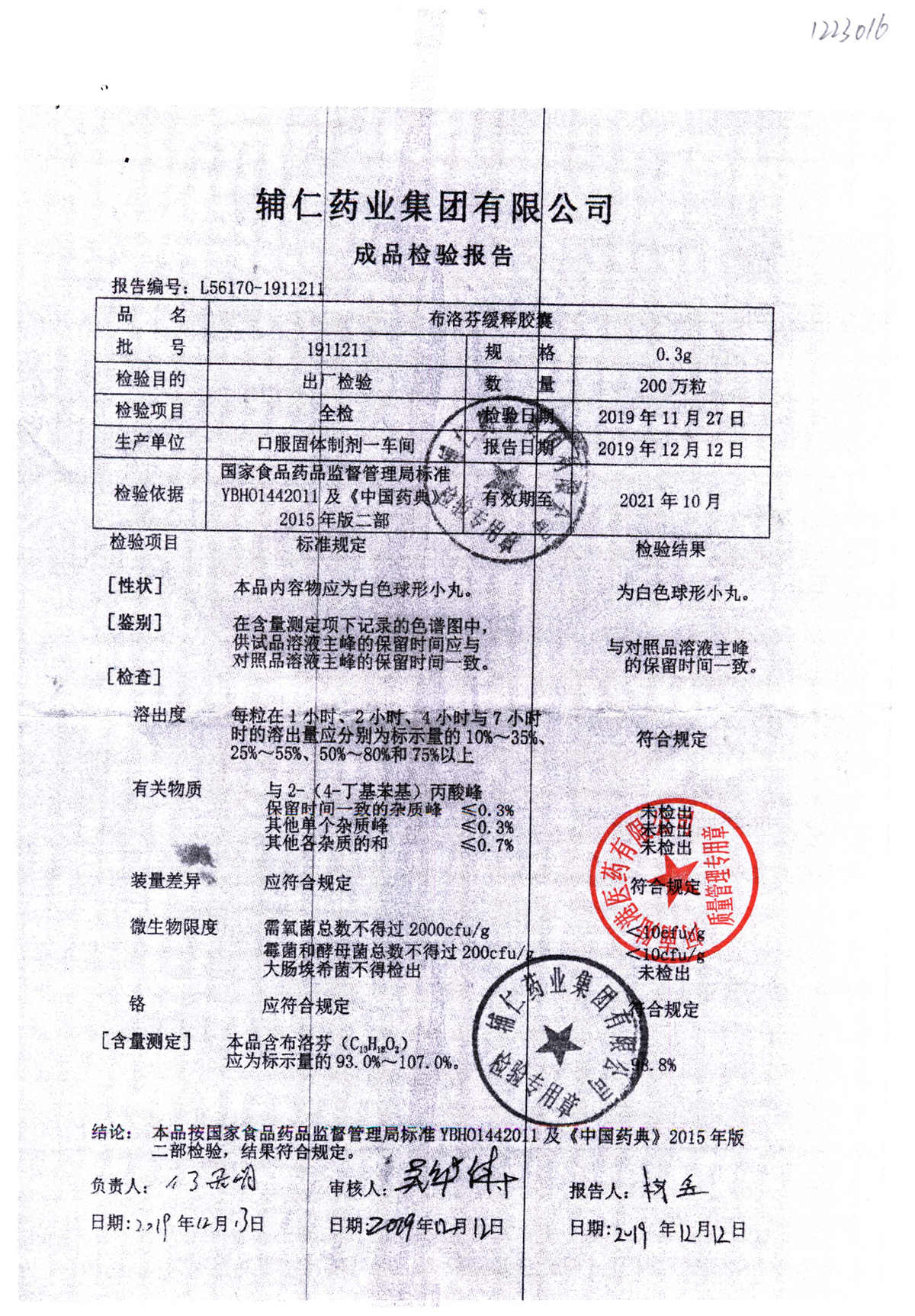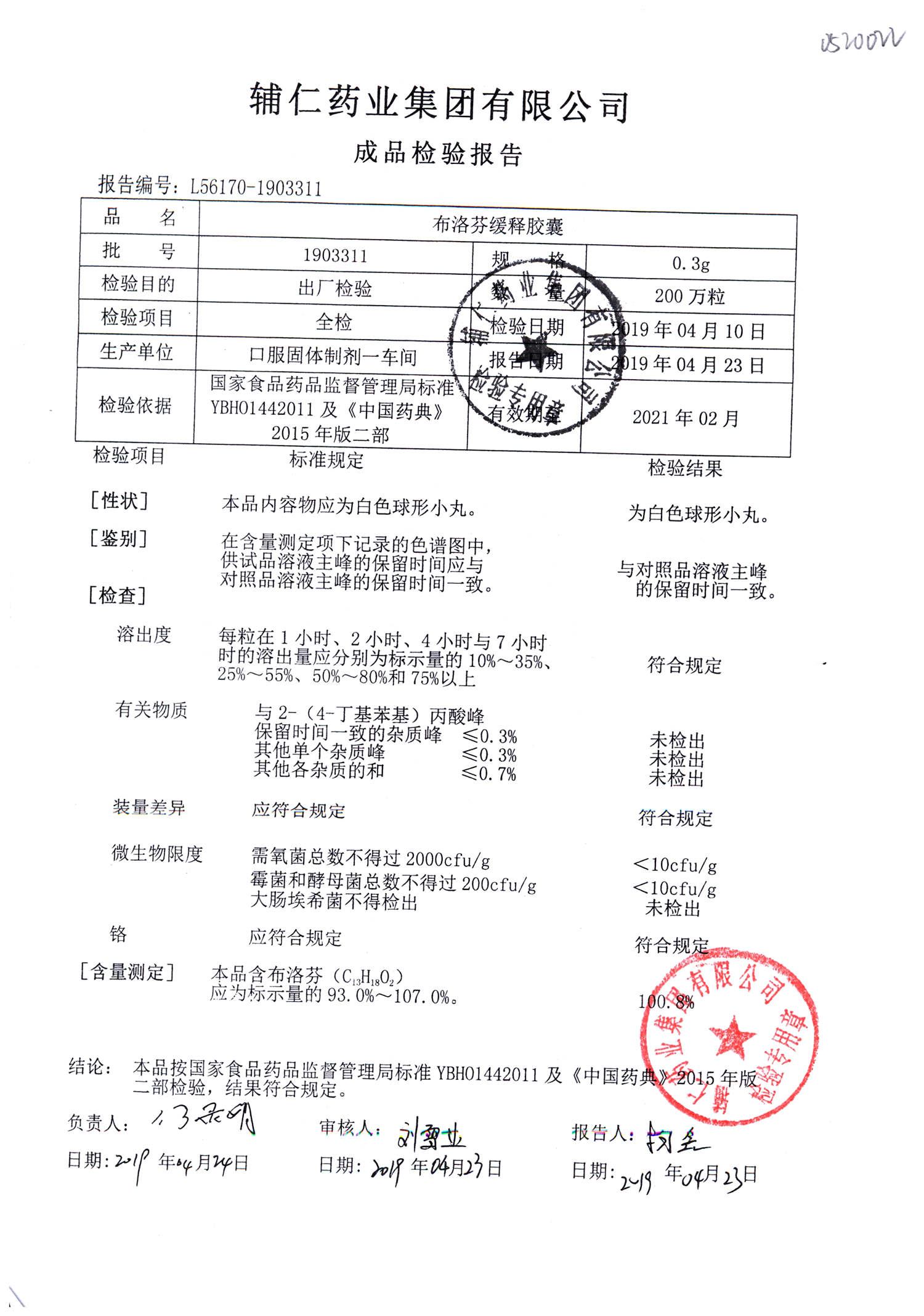 布洛芬缓释胶囊 | 0.3g | 1911211 | 查看详情 |