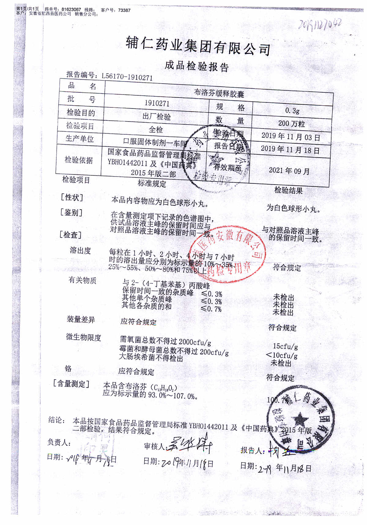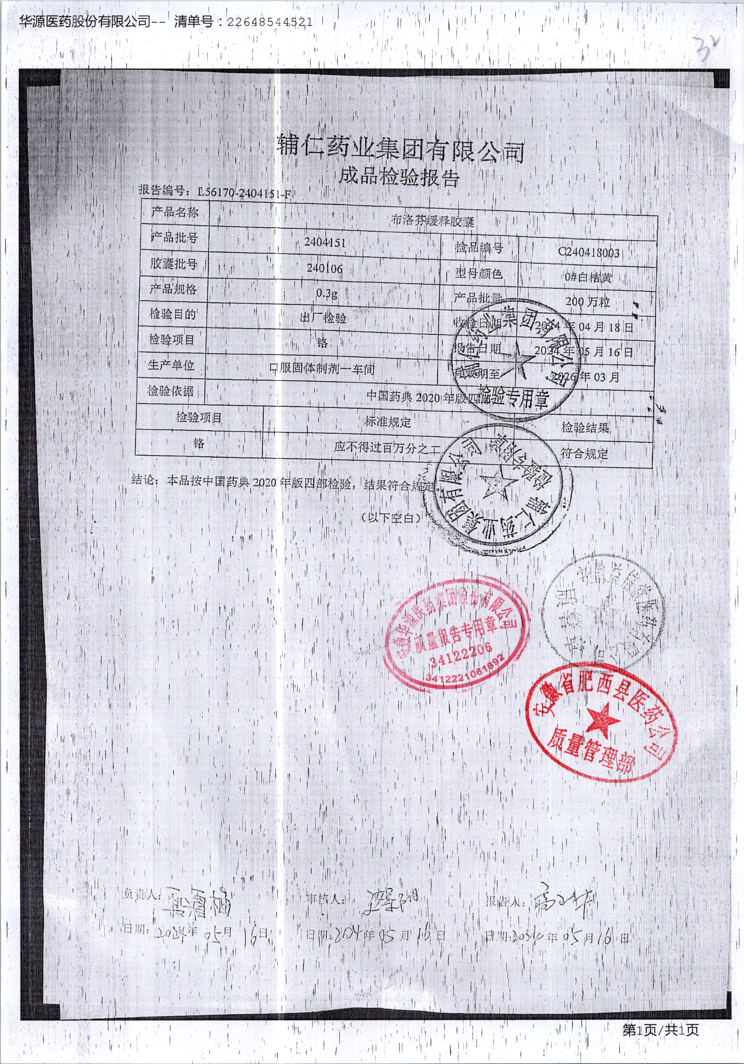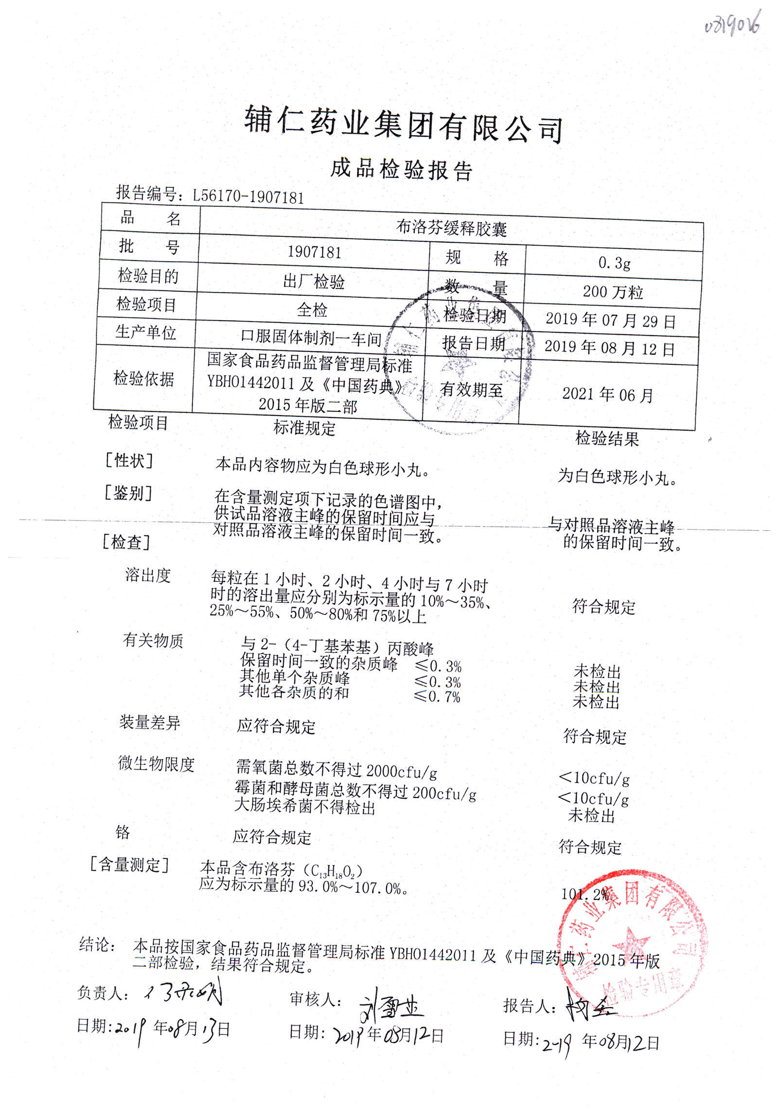 布洛芬缓释胶囊 | 0.3g | 1906171 | 查看详情 |