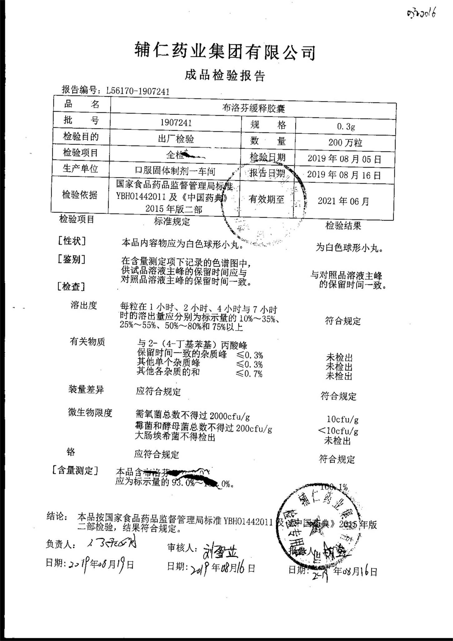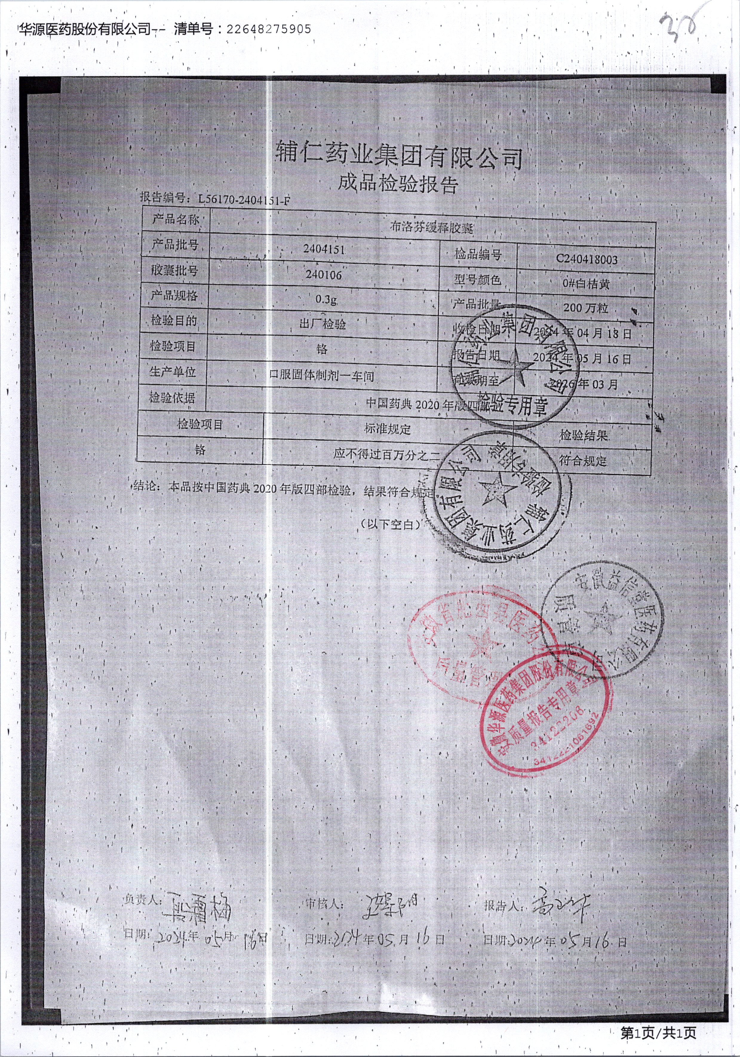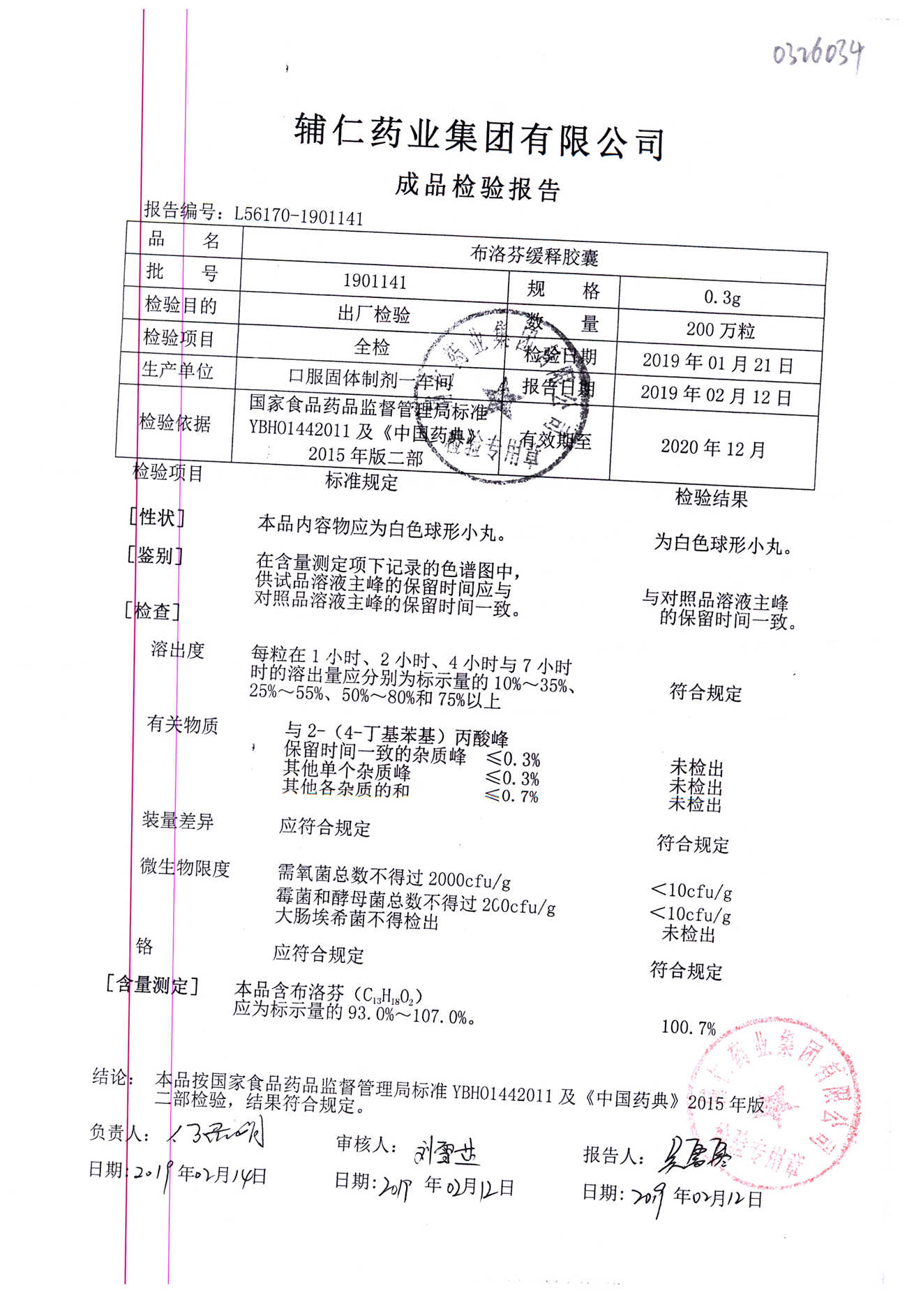 布洛芬缓释胶囊 | 0.3g | 1906171 | 查看详情 |