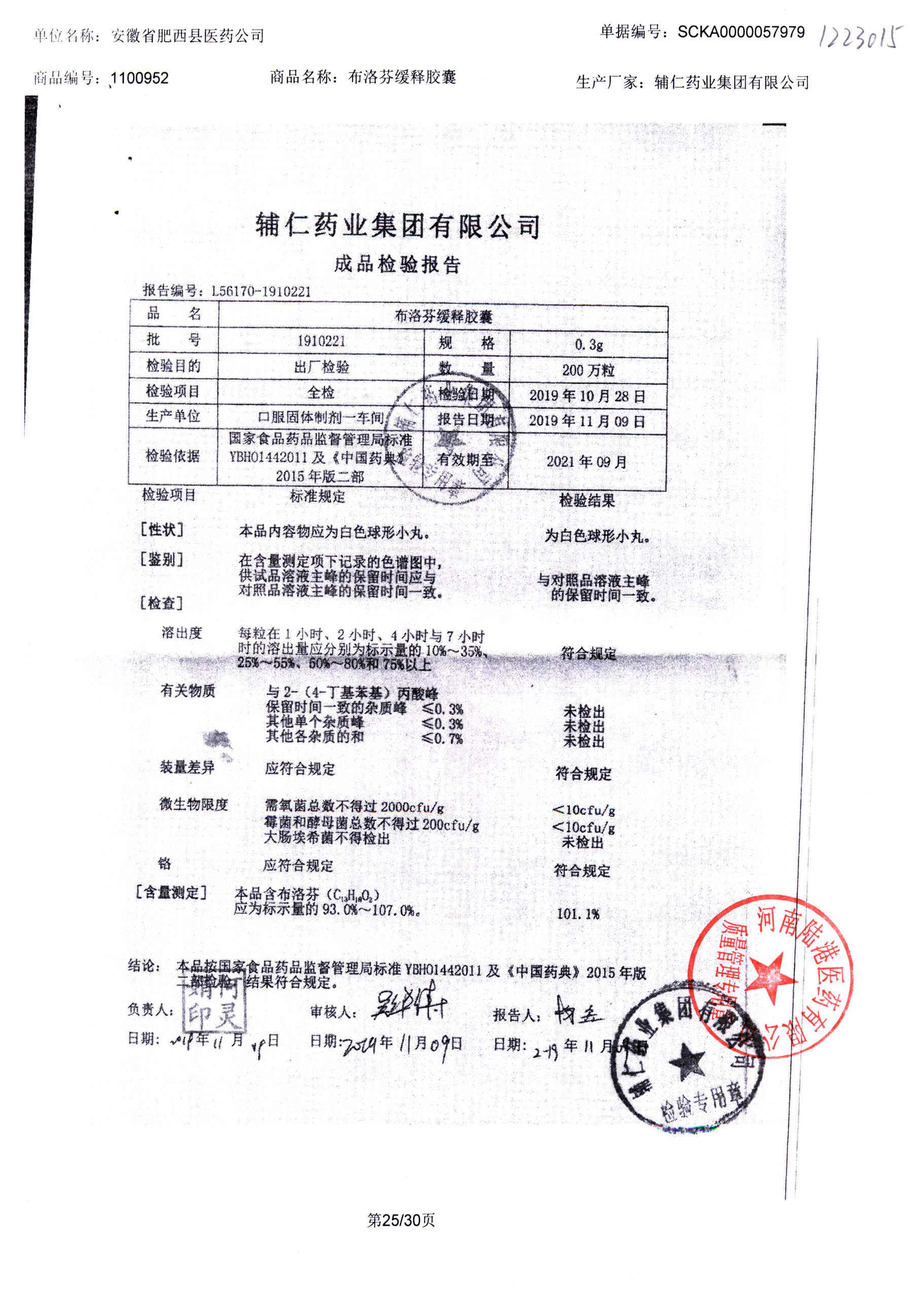 布洛芬缓释胶囊 | 0.3g | 1910221 | 查看详情 |