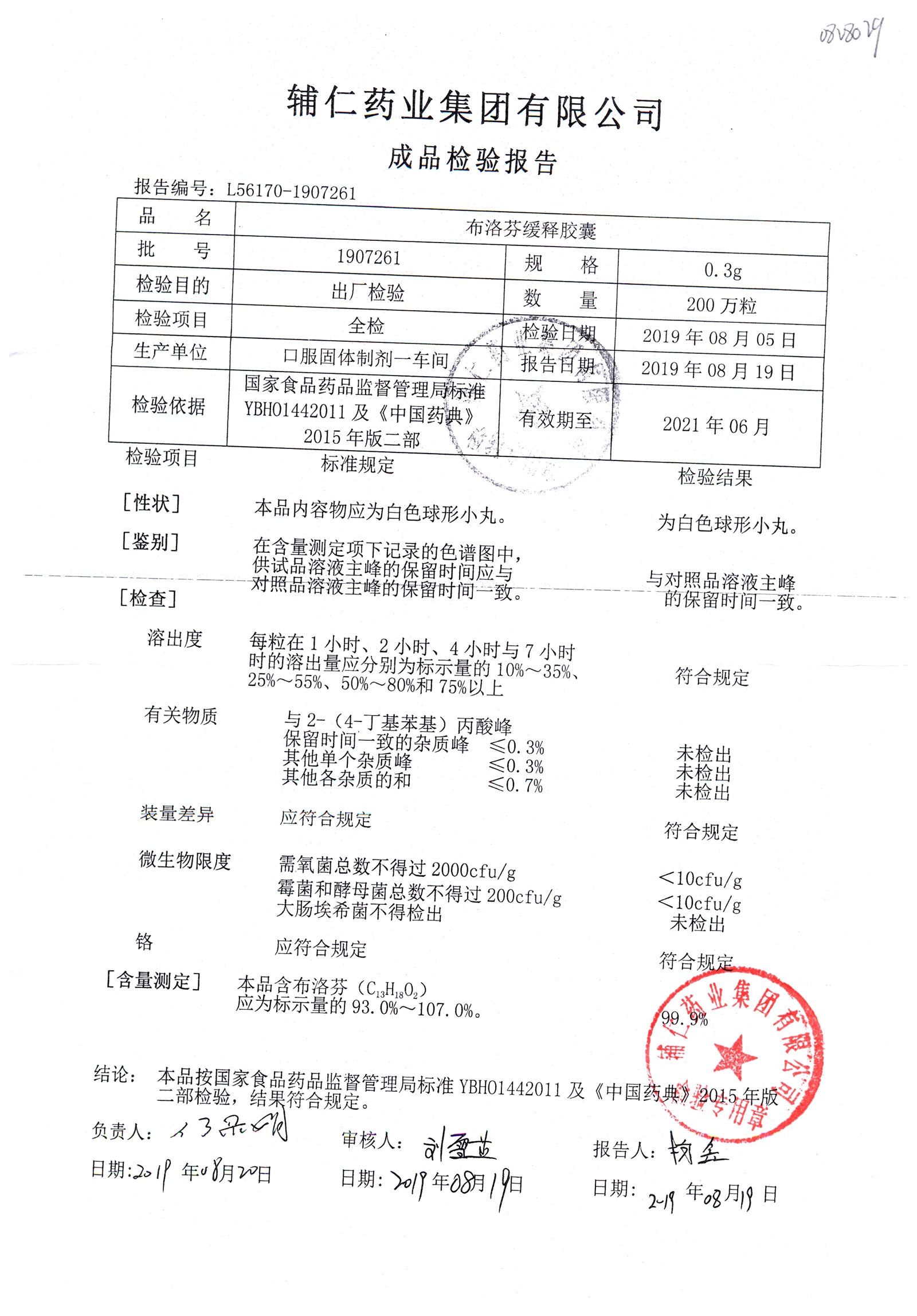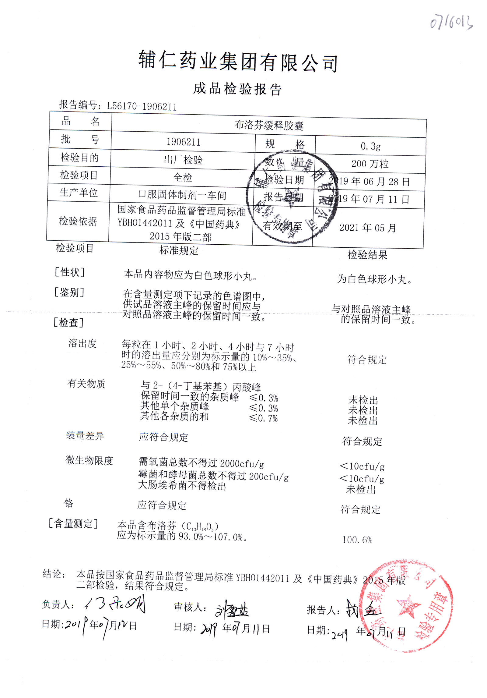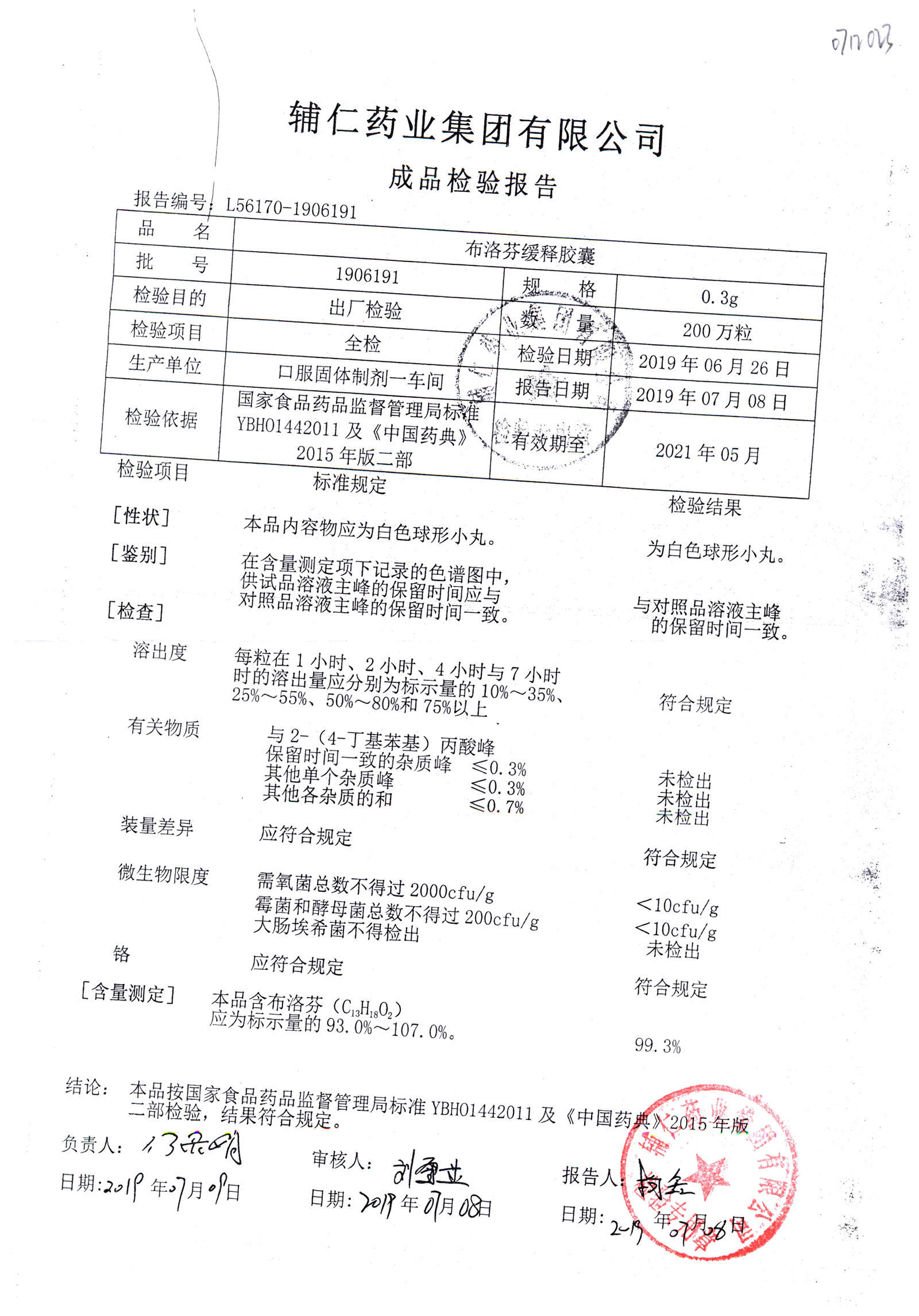 布洛芬缓释胶囊 | 0.3g | 1906211 | 查看详情 |