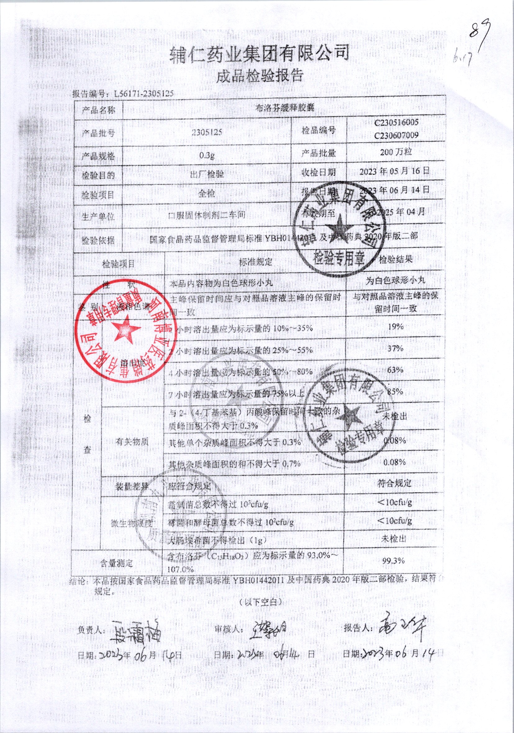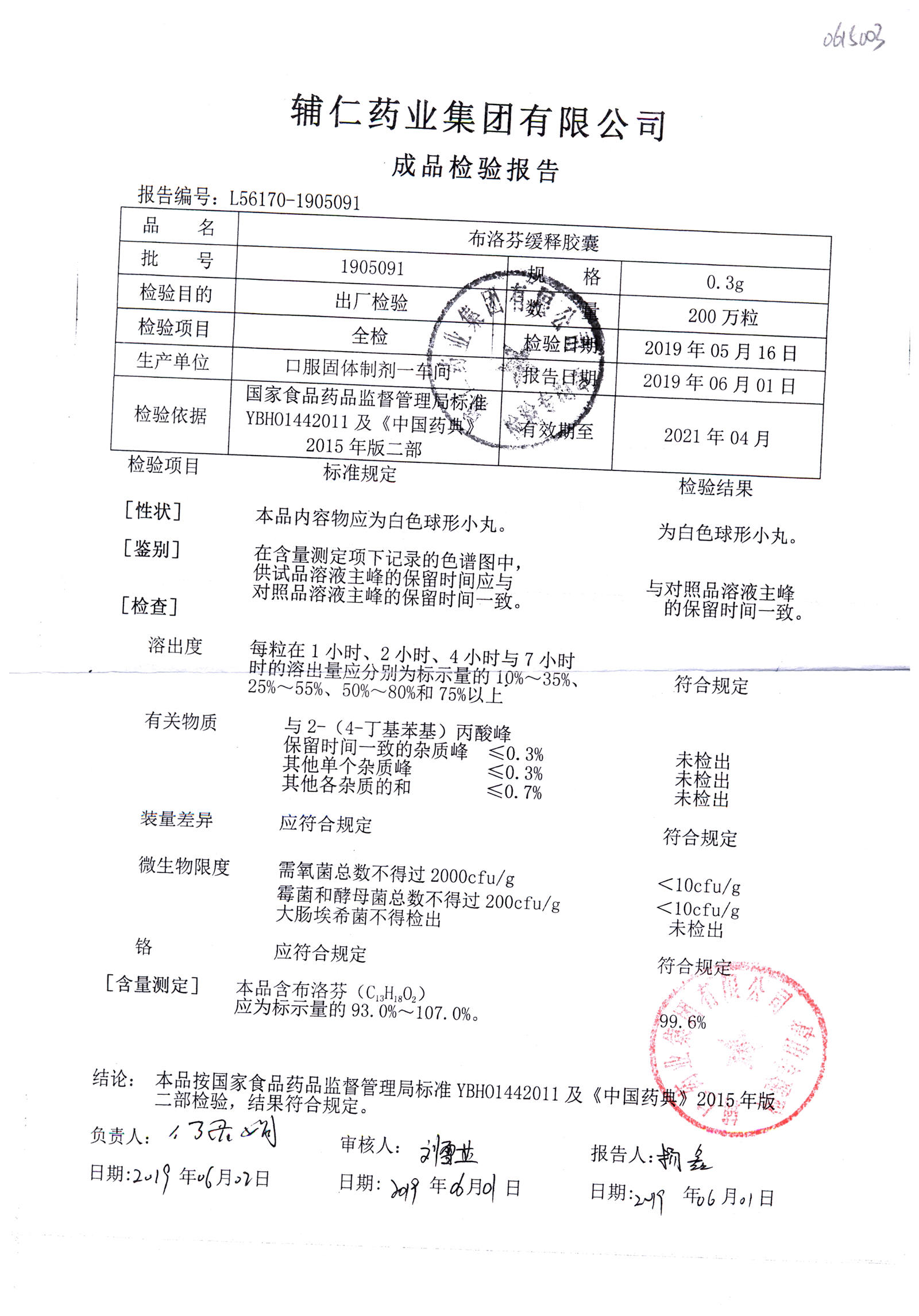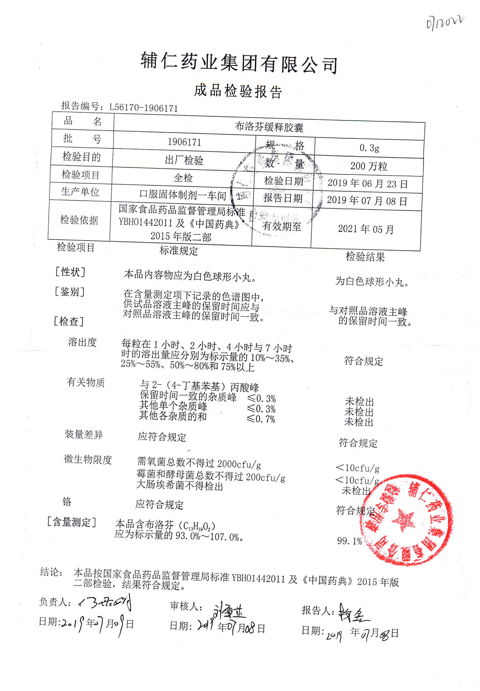 布洛芬缓释胶囊 | 0.3g | 1906211 | 查看详情 |