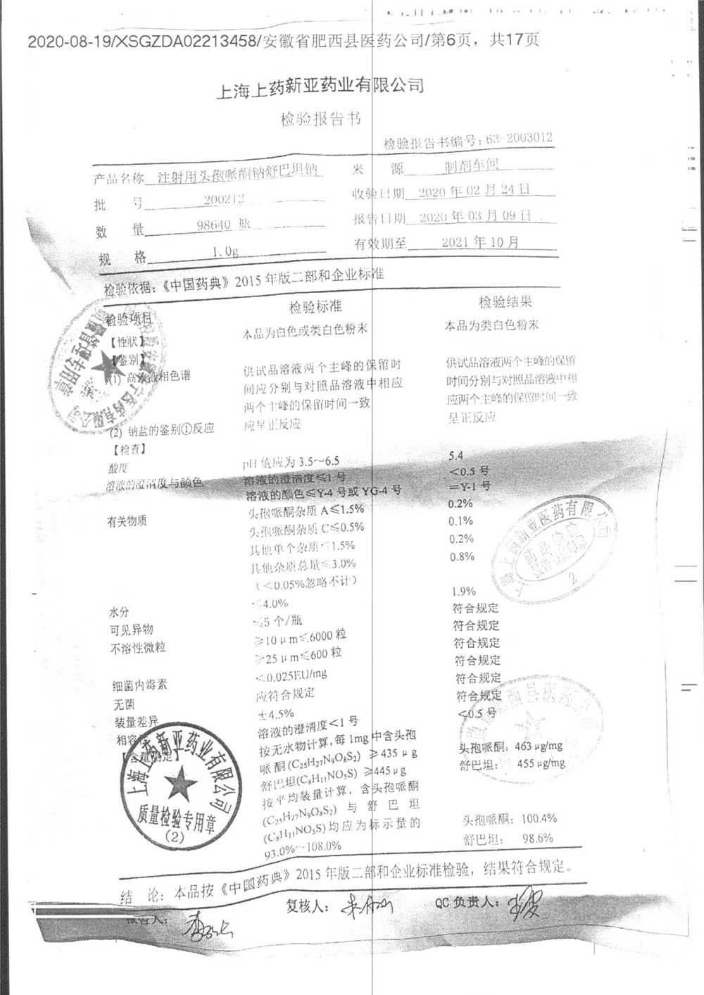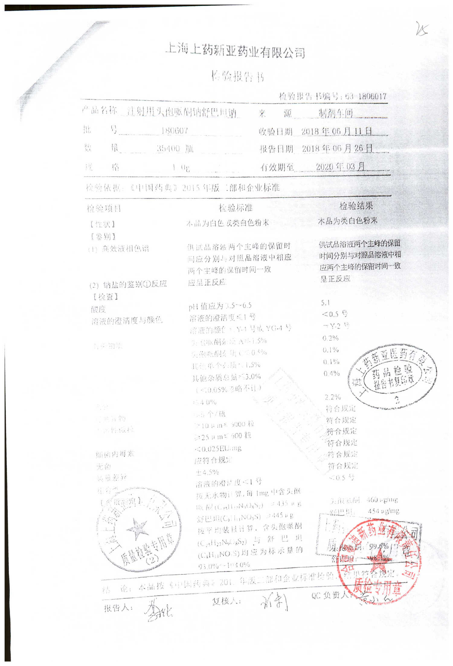 注射用头孢哌酮钠舒巴坦钠 | 1.0g | 180607 | 查看详情 |