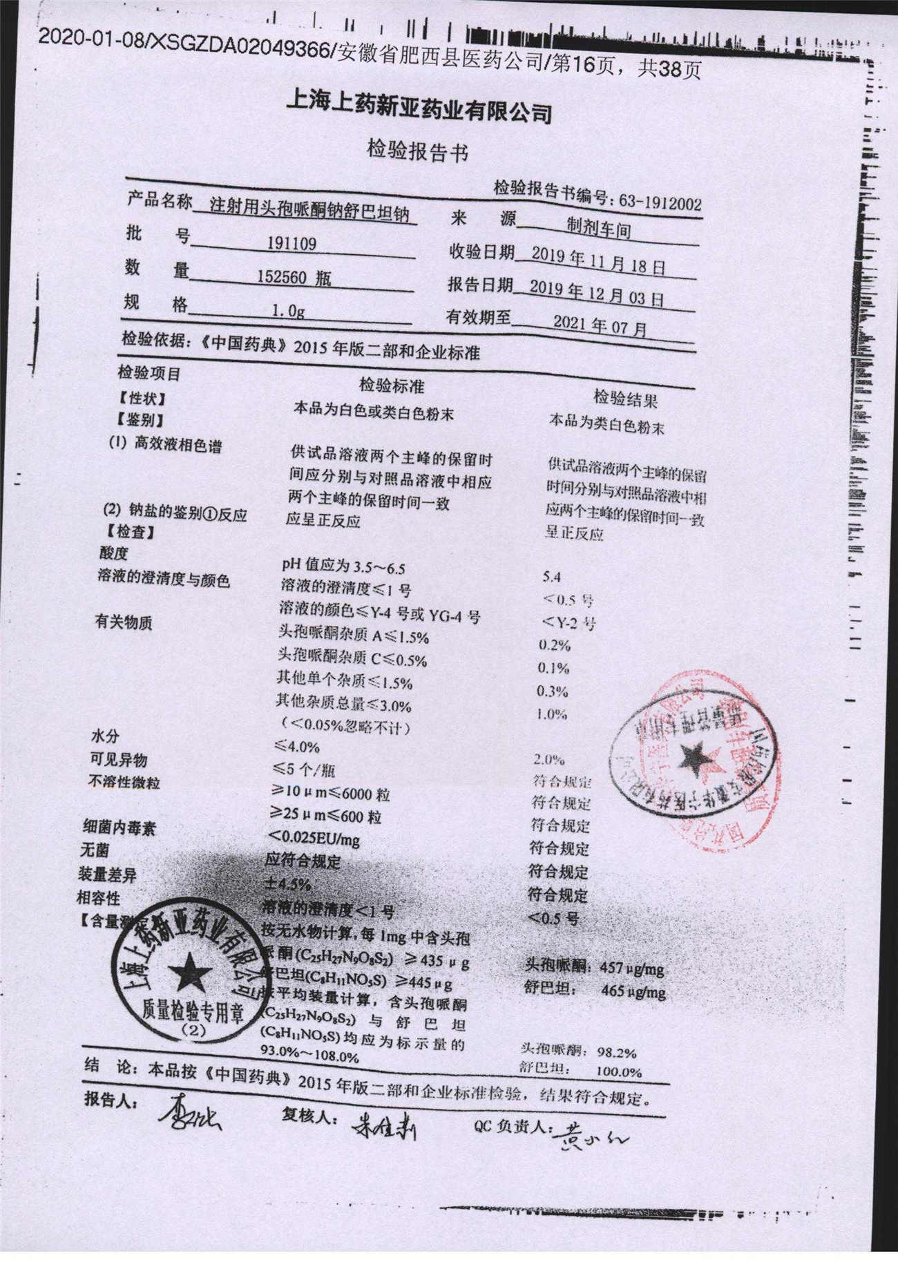 注射用头孢哌酮钠舒巴坦钠 | 1.0g | 191109 | 查看详情 |