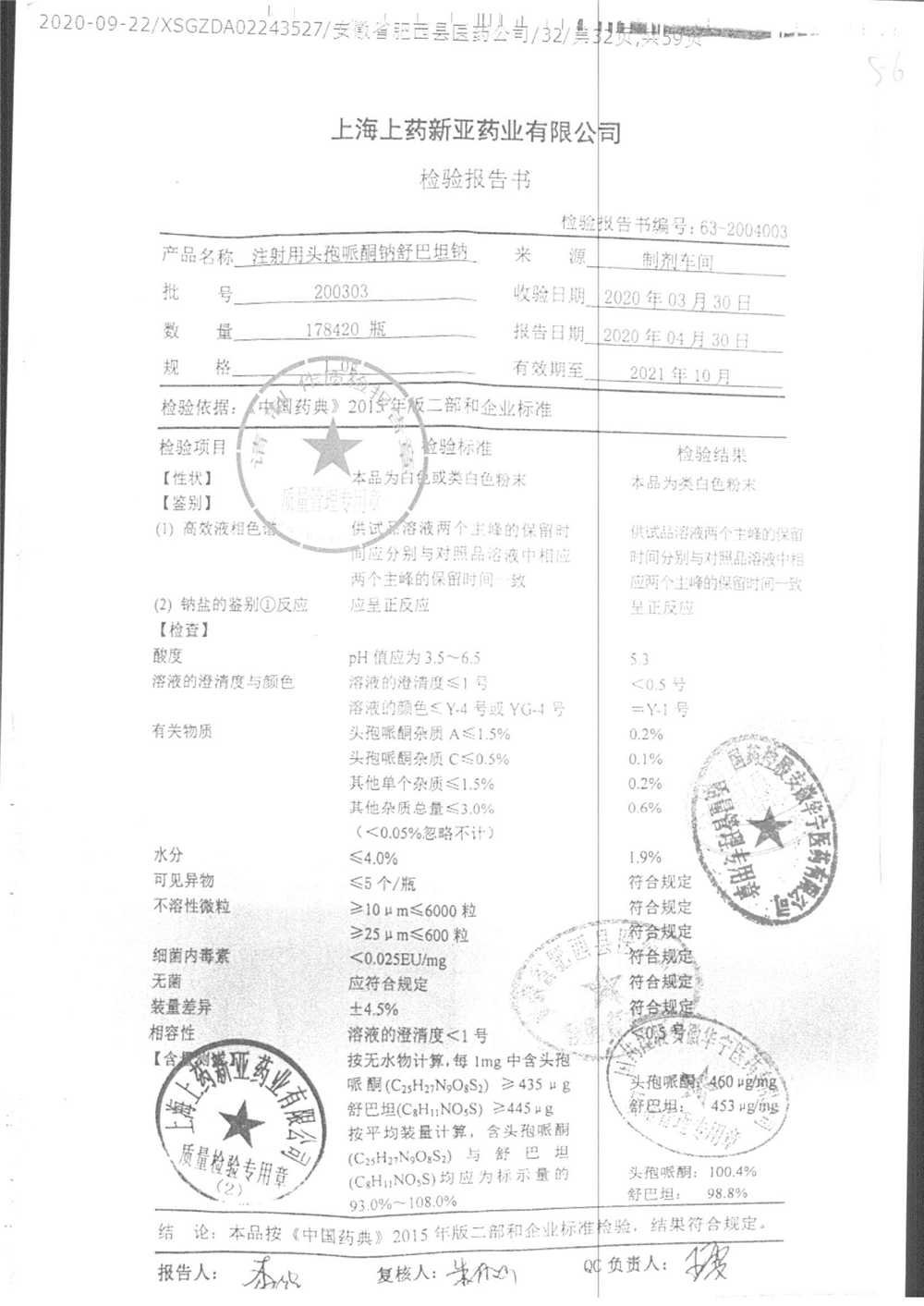 注射用头孢哌酮钠舒巴坦钠 | 1.0g | 200212 | 查看详情 |