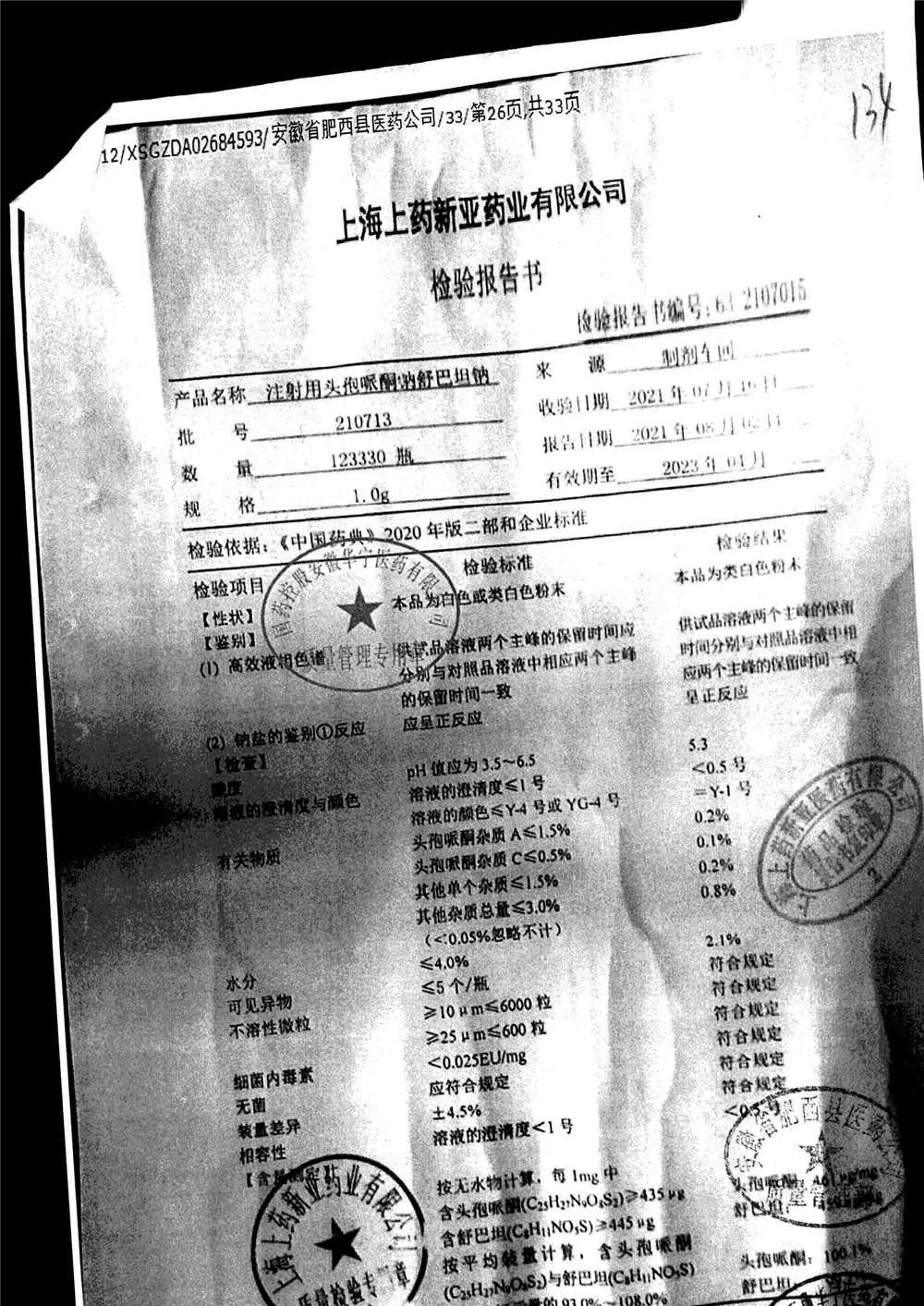 注射用头孢哌酮钠舒巴坦钠 | 1.0g | 210713 | 查看详情 |