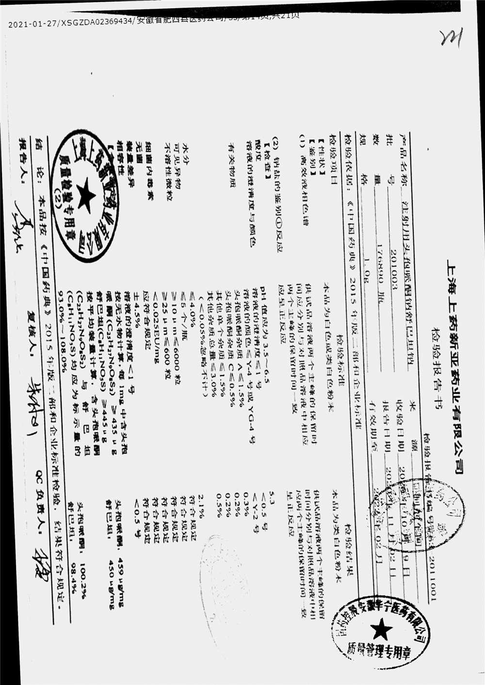 名称 | 规格 | 批号 | 药检报告 |