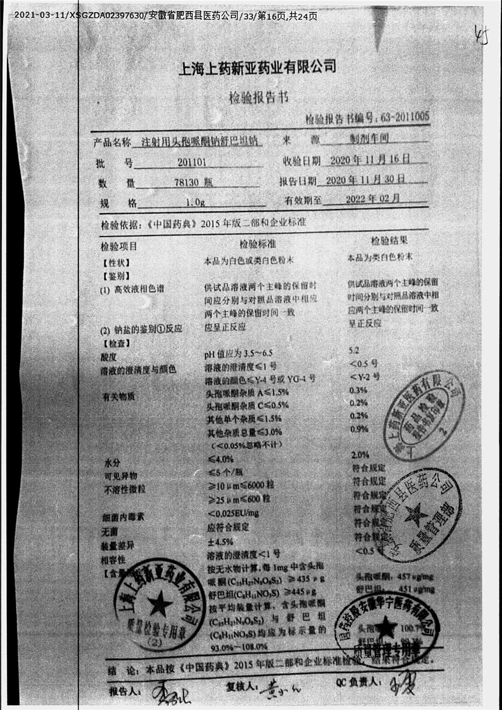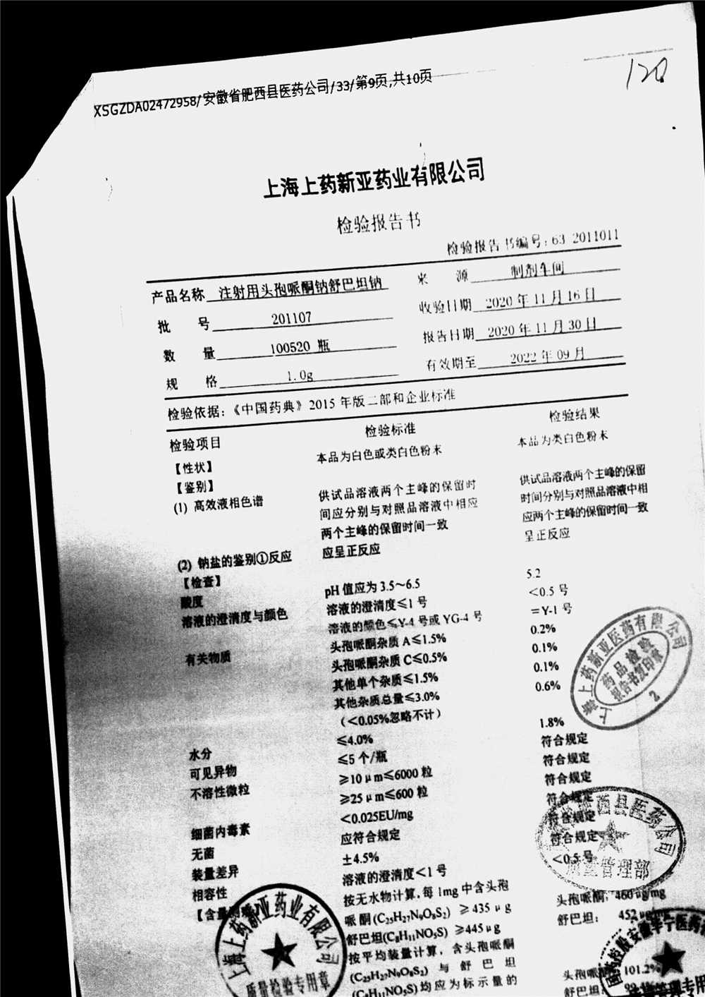 注射用头孢哌酮钠舒巴坦钠 | 1.0g | 201107 | 查看详情 |