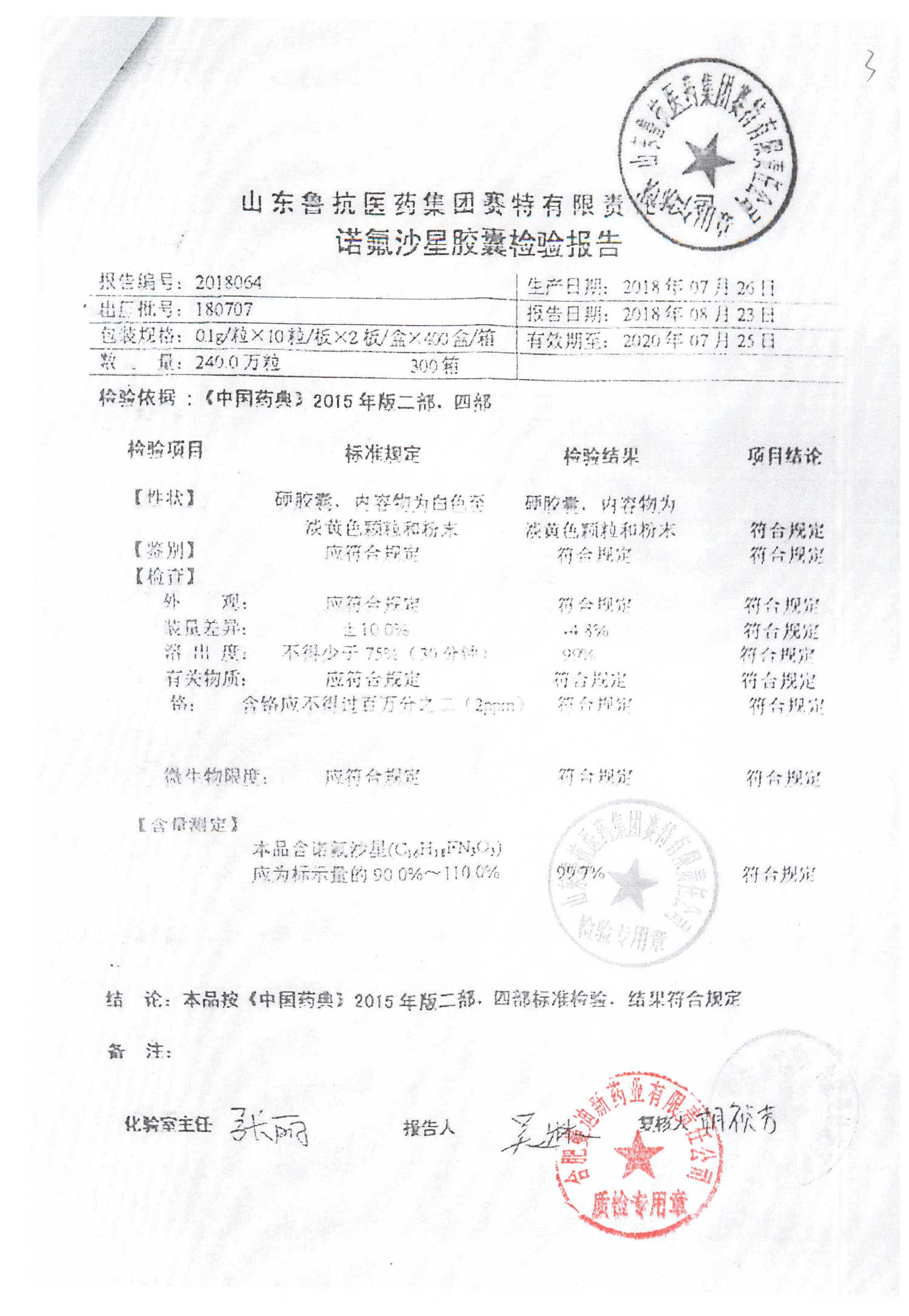诺氟沙星胶囊 | 0.1g*20粒 | 180707 | 查看详情 |