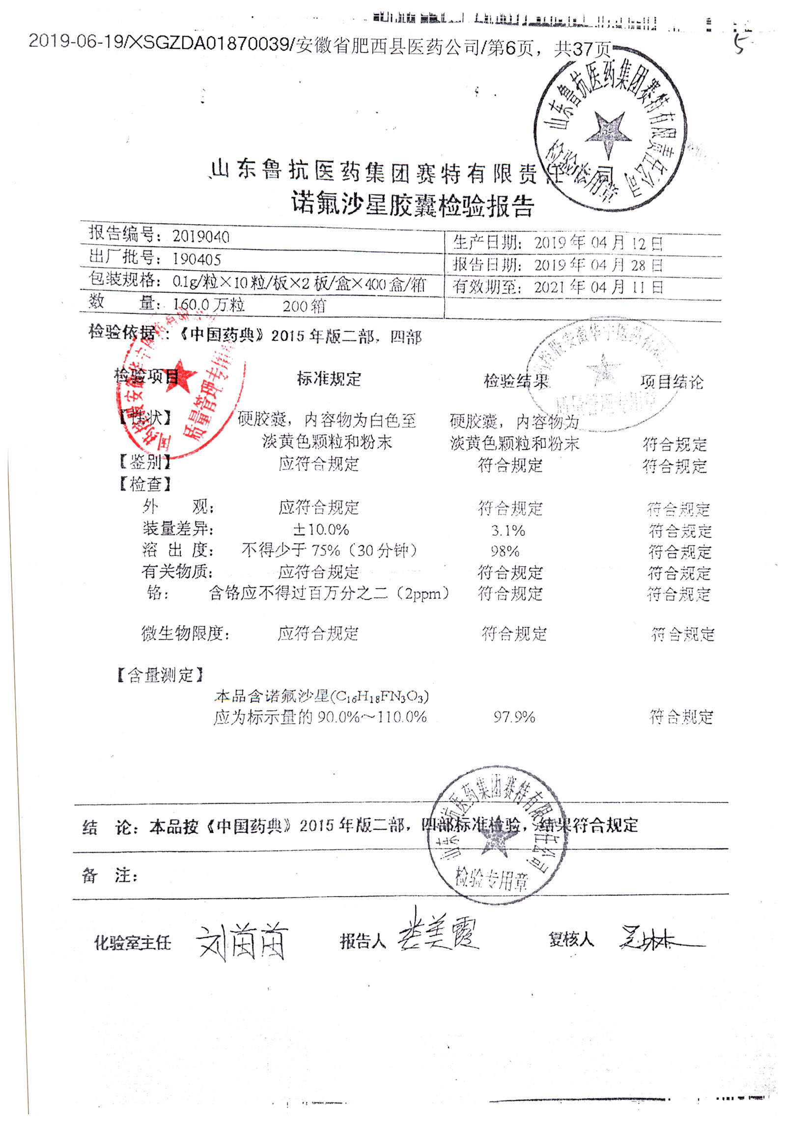 诺氟沙星胶囊 | 0.1g*20粒 | 190405 | 查看详情 |