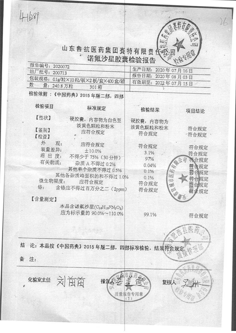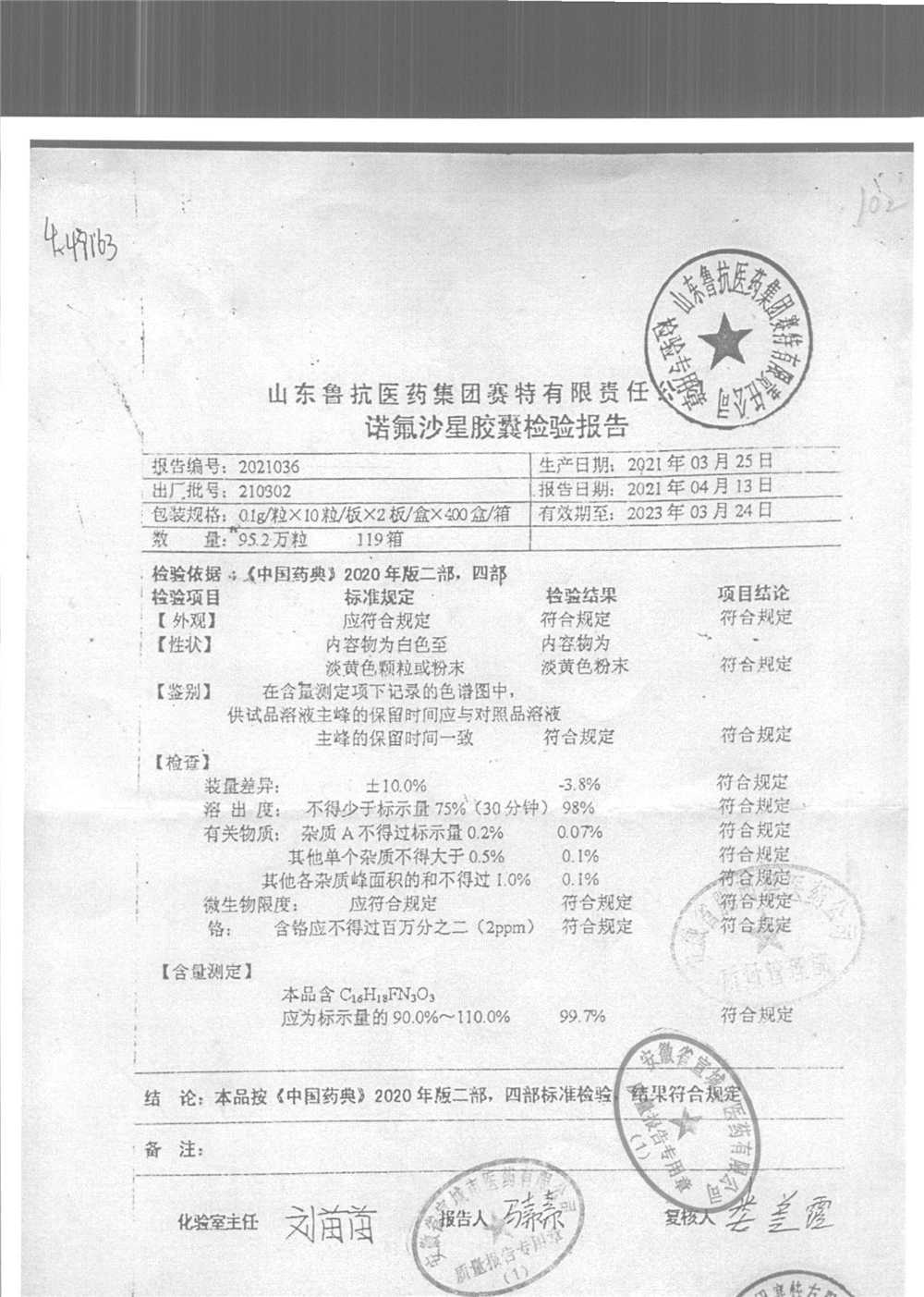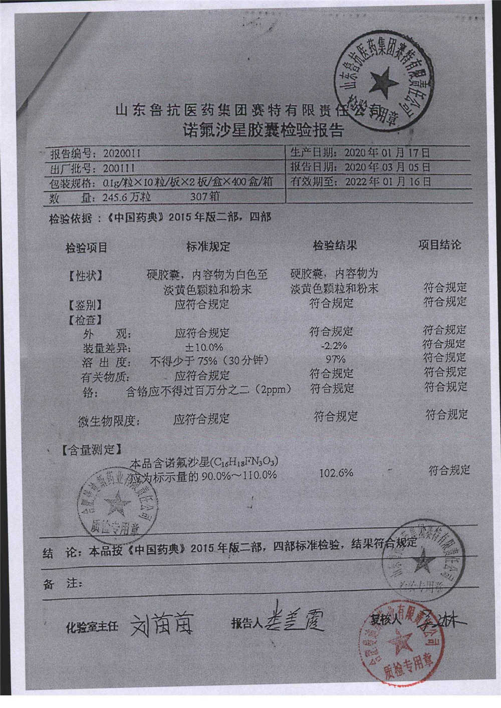 诺氟沙星胶囊 | 0.1g*20粒 | 210401 | 查看详情 |