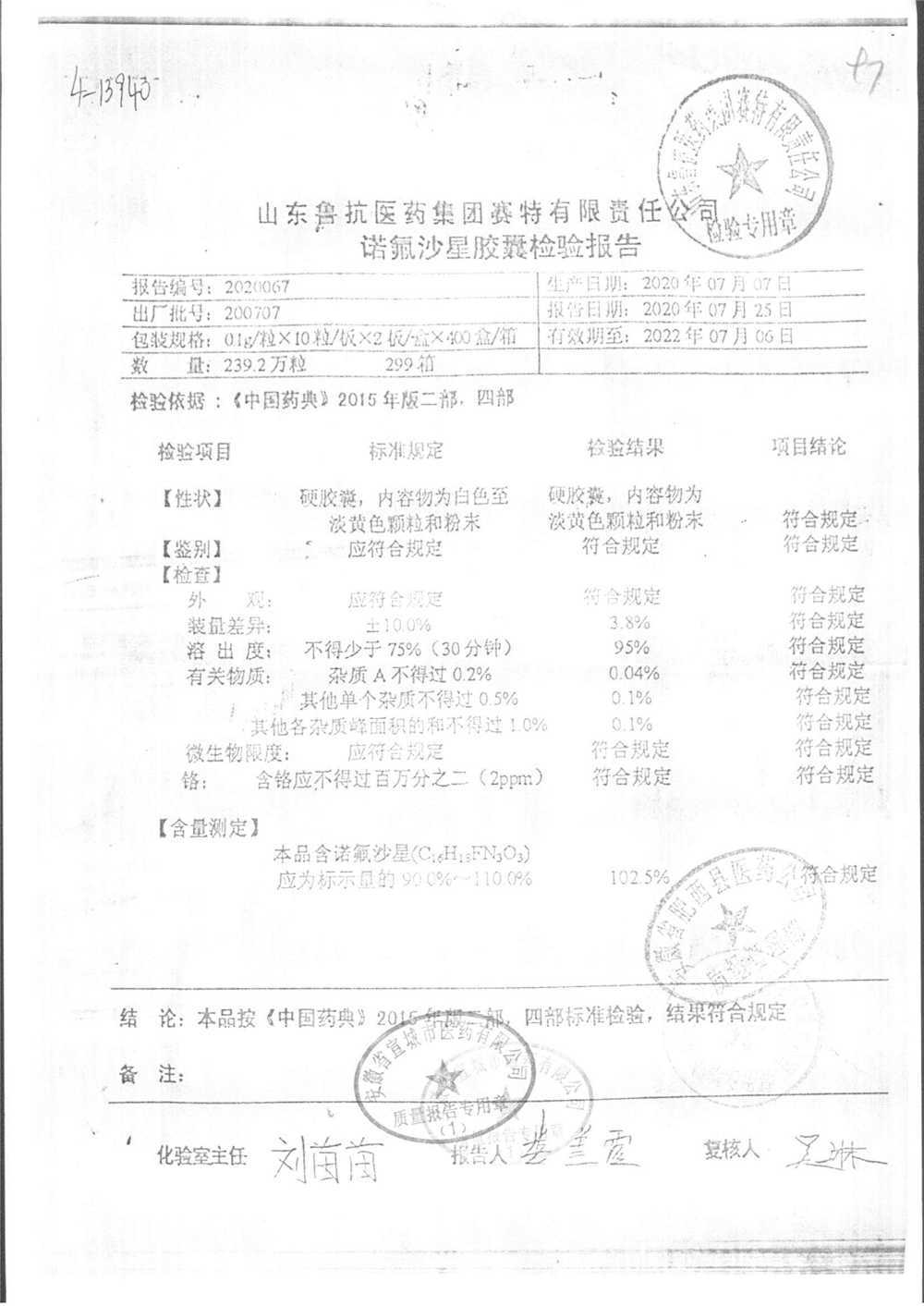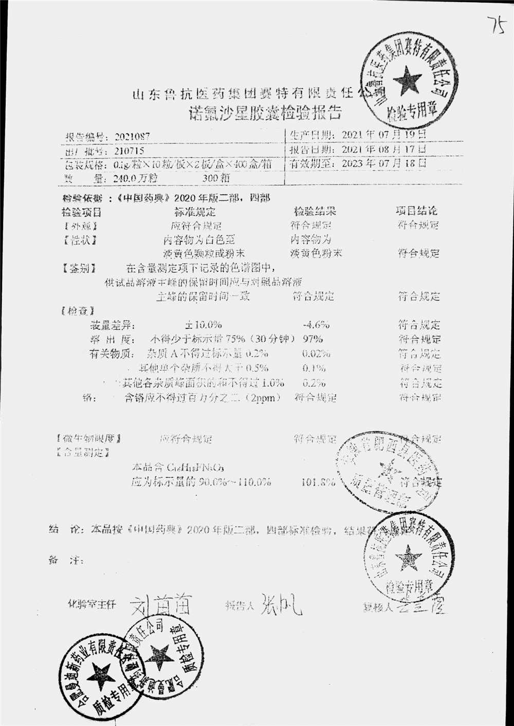 诺氟沙星胶囊 | 0.1g*20粒 | 210715 | 查看详情 |