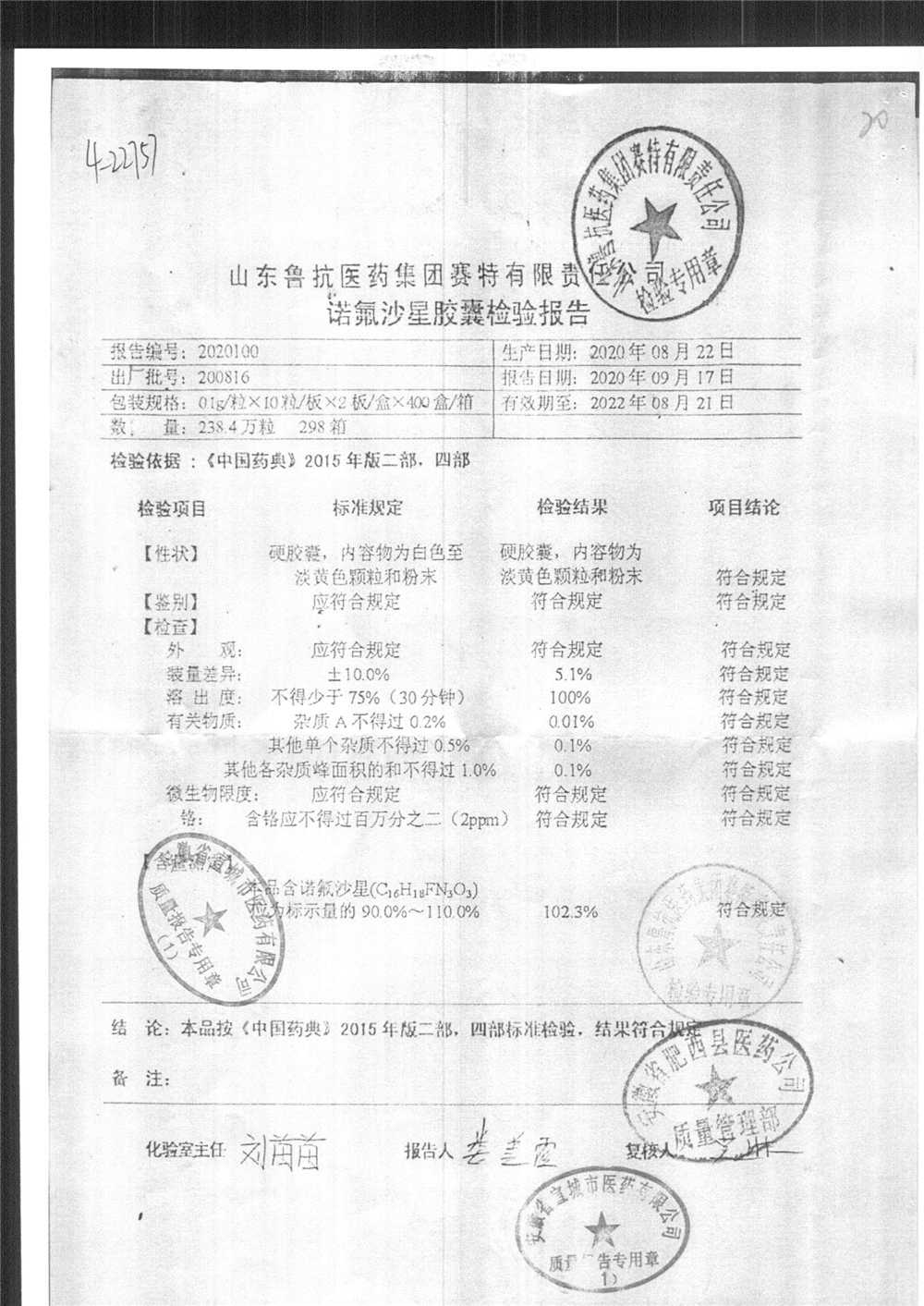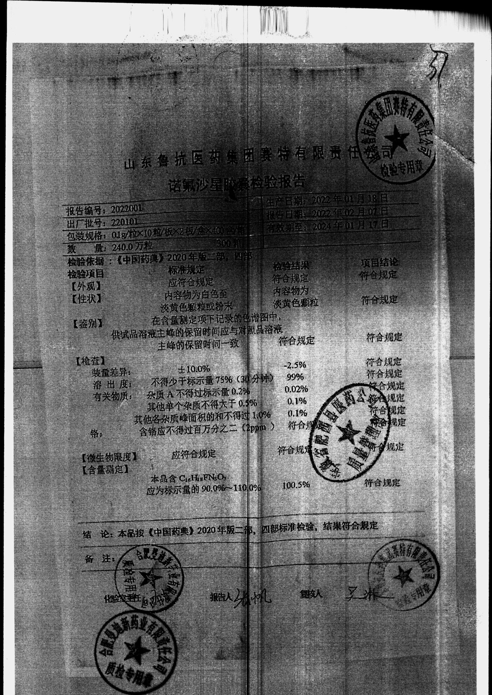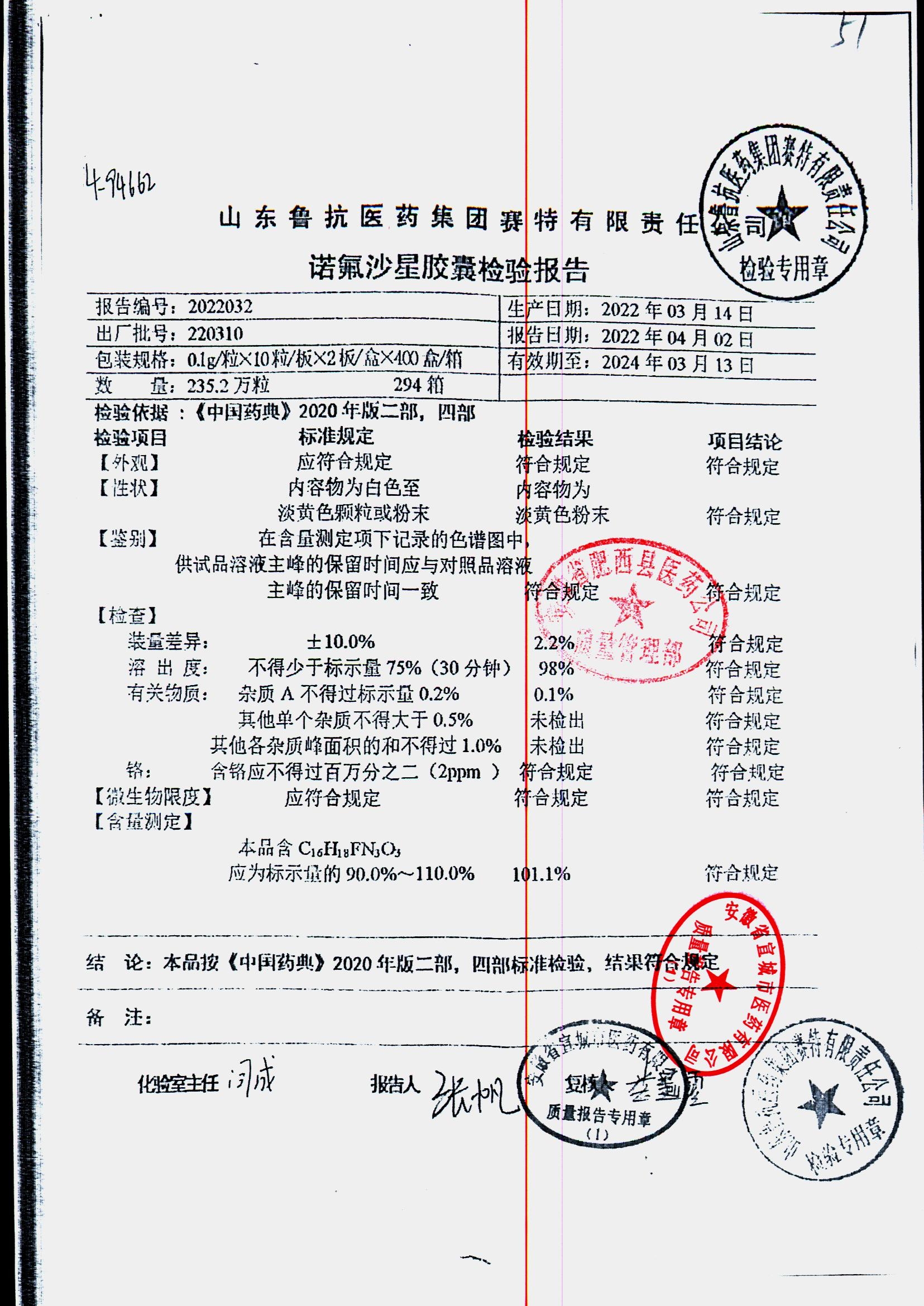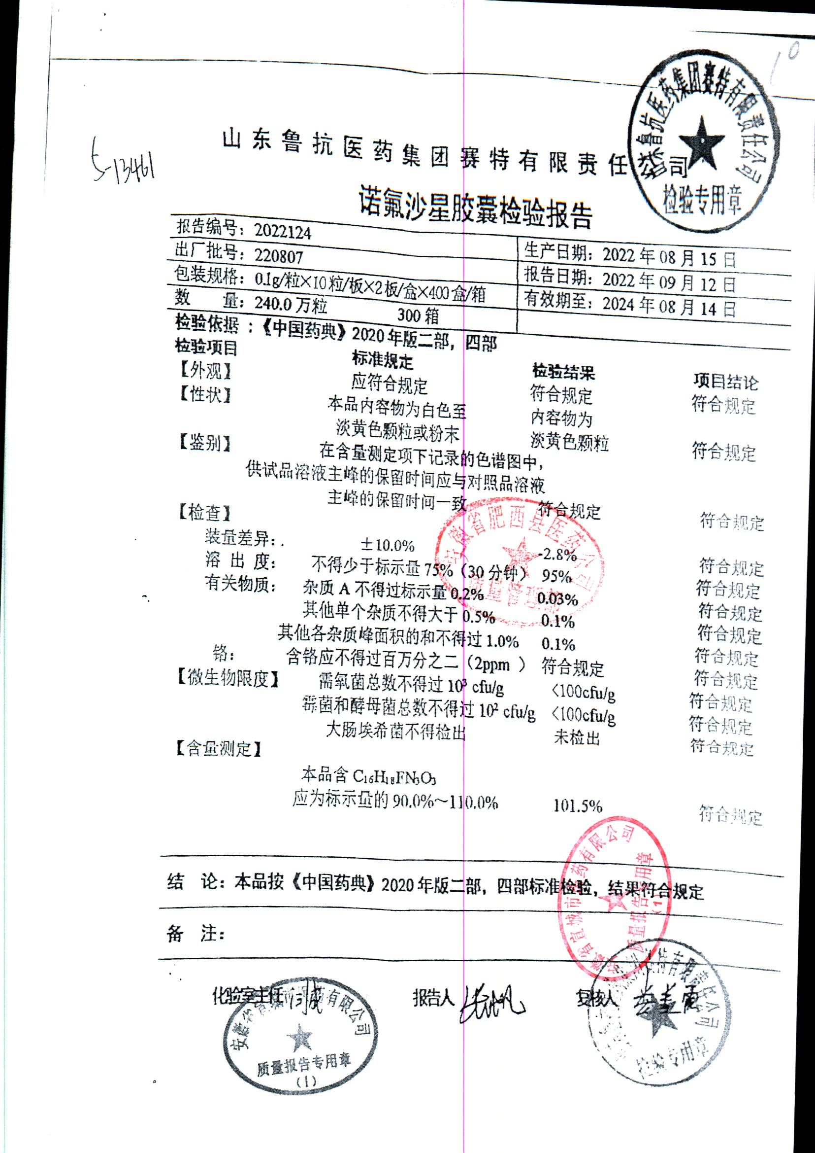 诺氟沙星胶囊 | 0.1g*20粒 | 220807 | 查看详情 |