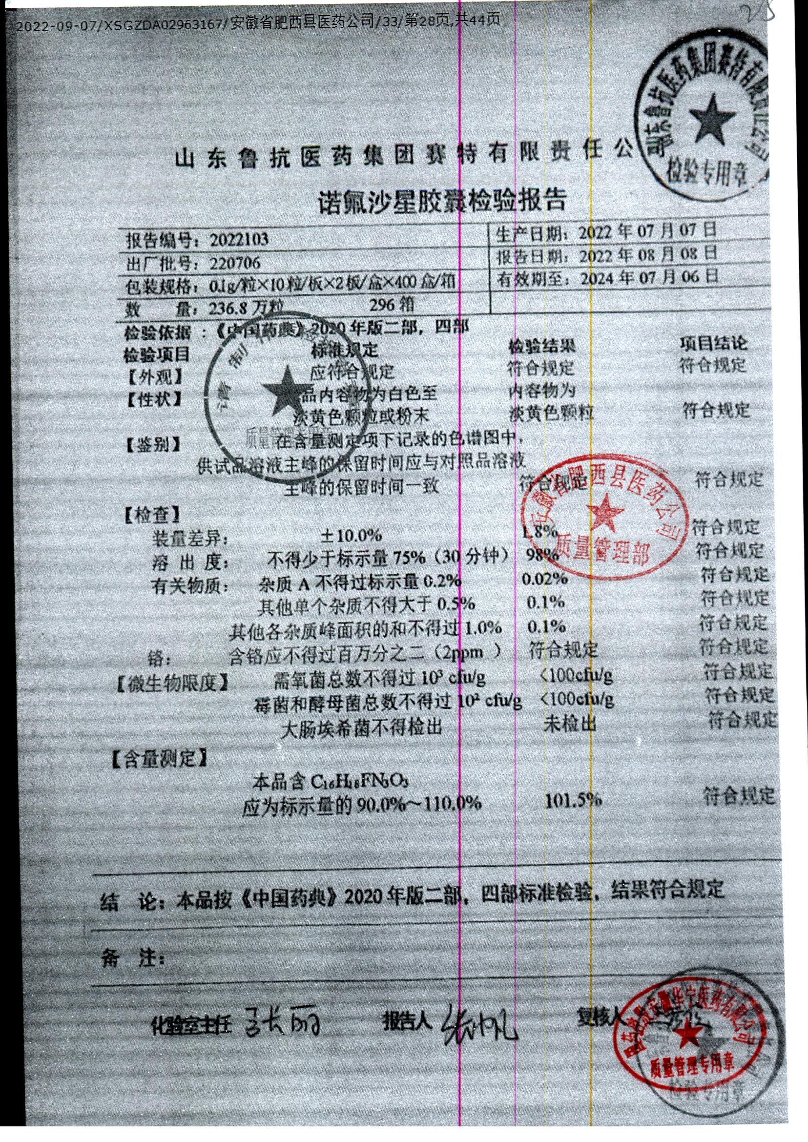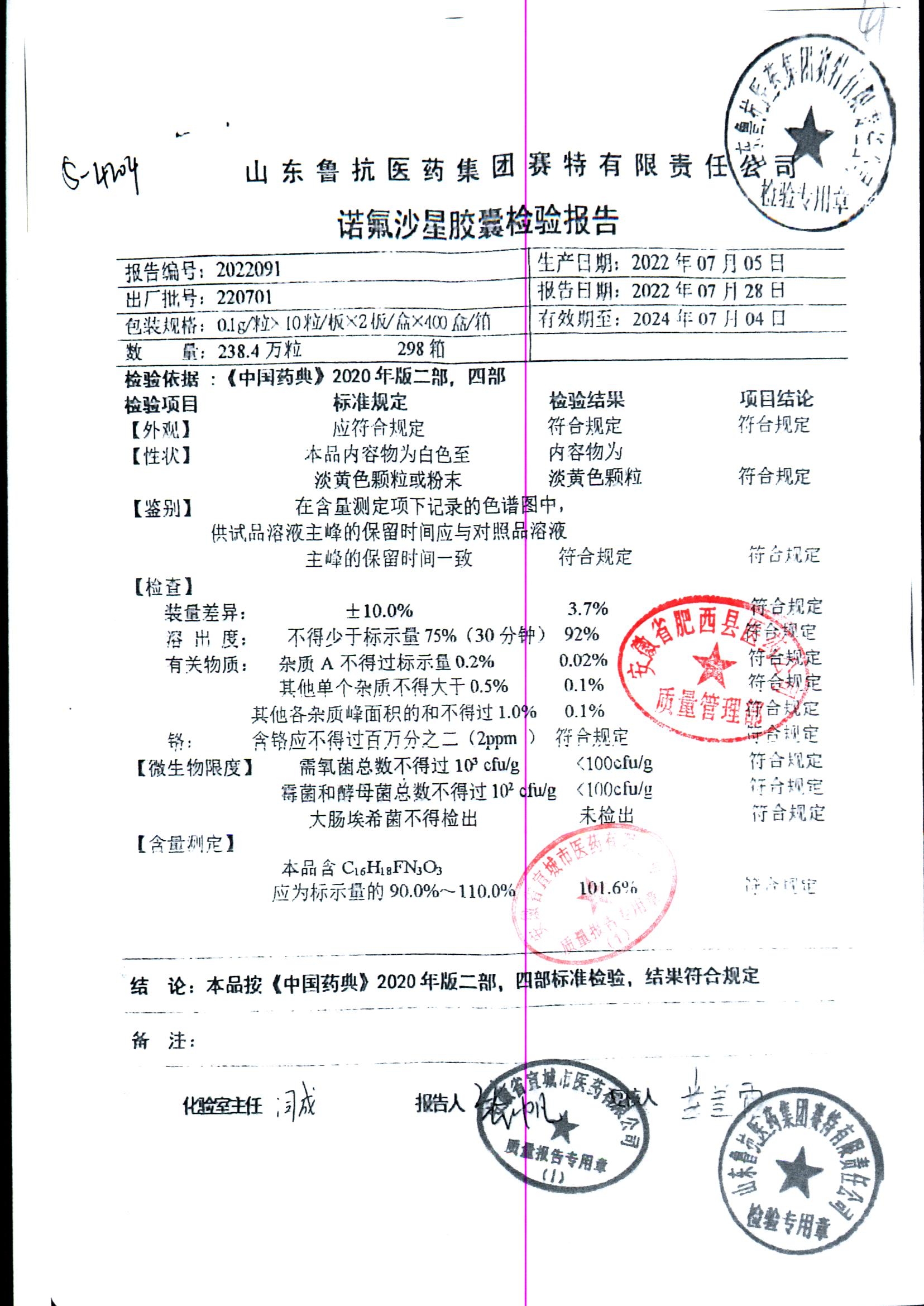 诺氟沙星胶囊 | 0.1g*20粒 | 220706 | 查看详情 |