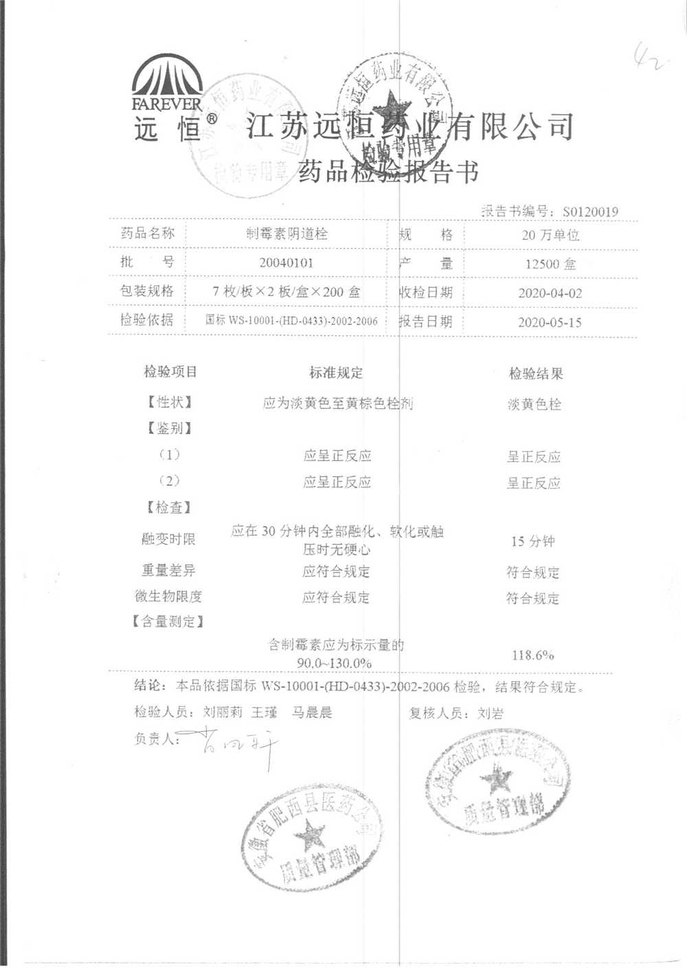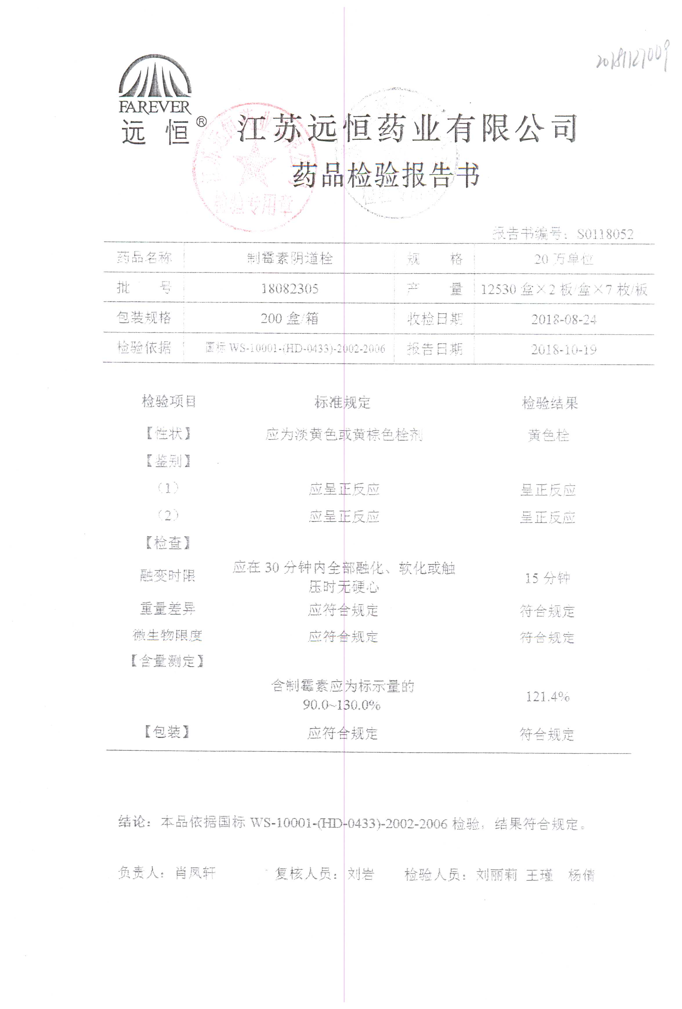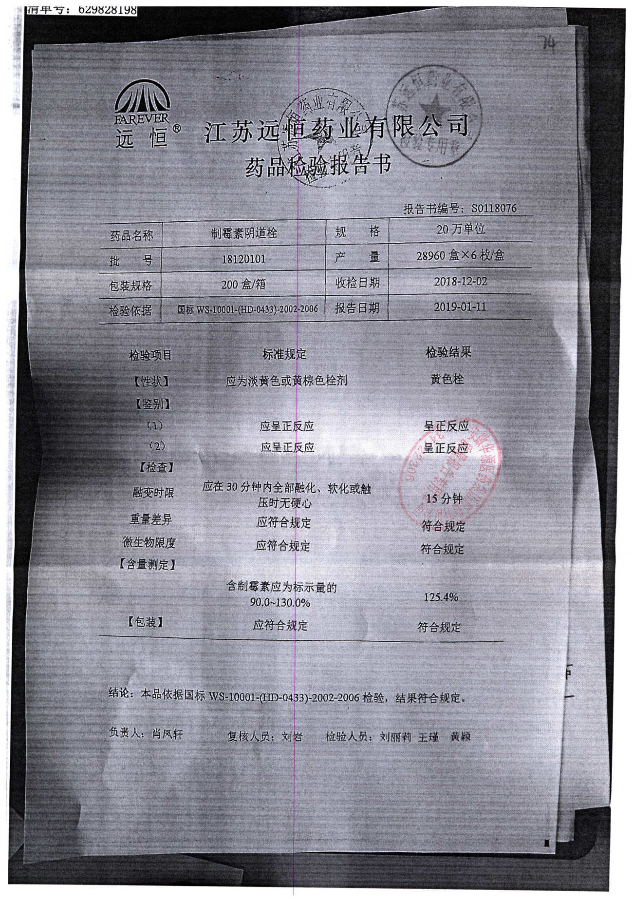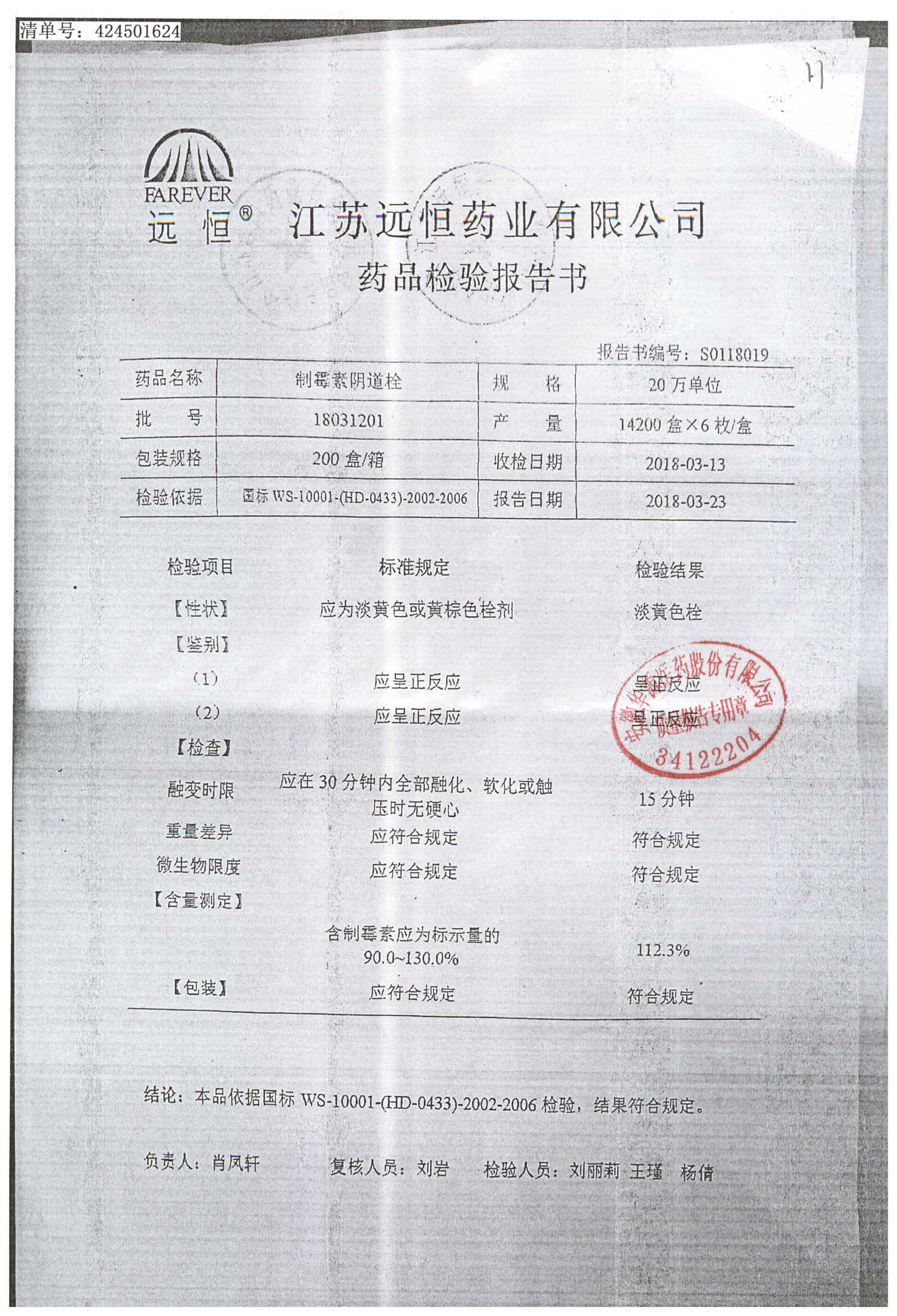 制霉素阴道栓 | 20万单位 | 18120101 | 查看详情 |